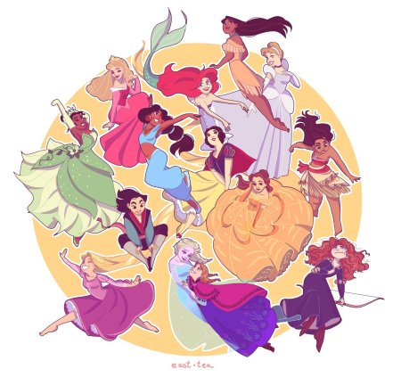 Волшебный мир Уолта Диснея оживает в ярких иллюстрациях, где каждый герой несет частичку детской мечты и безграничного оптимизма. Эти арты показывают эволюцию диснеевских персонажей от классических принцесс вроде Белоснежки и Золушки до современных героинь типа Моаны и Эльзы. Художники мастерски передают уникальный стиль студии: выразительные глаза, динамичные позы, насыщенные цвета и ту особую магию, которая делает диснеевских героев незабываемыми. Тематические иллюстрации варьируются от портретов в полный рост до сцен ключевых моментов из фильмов. Каждая картинка рассказывает свою историю о смелости, дружбе и преодолении трудностей, вдохновляя поколения зрителей на собственные приключения.