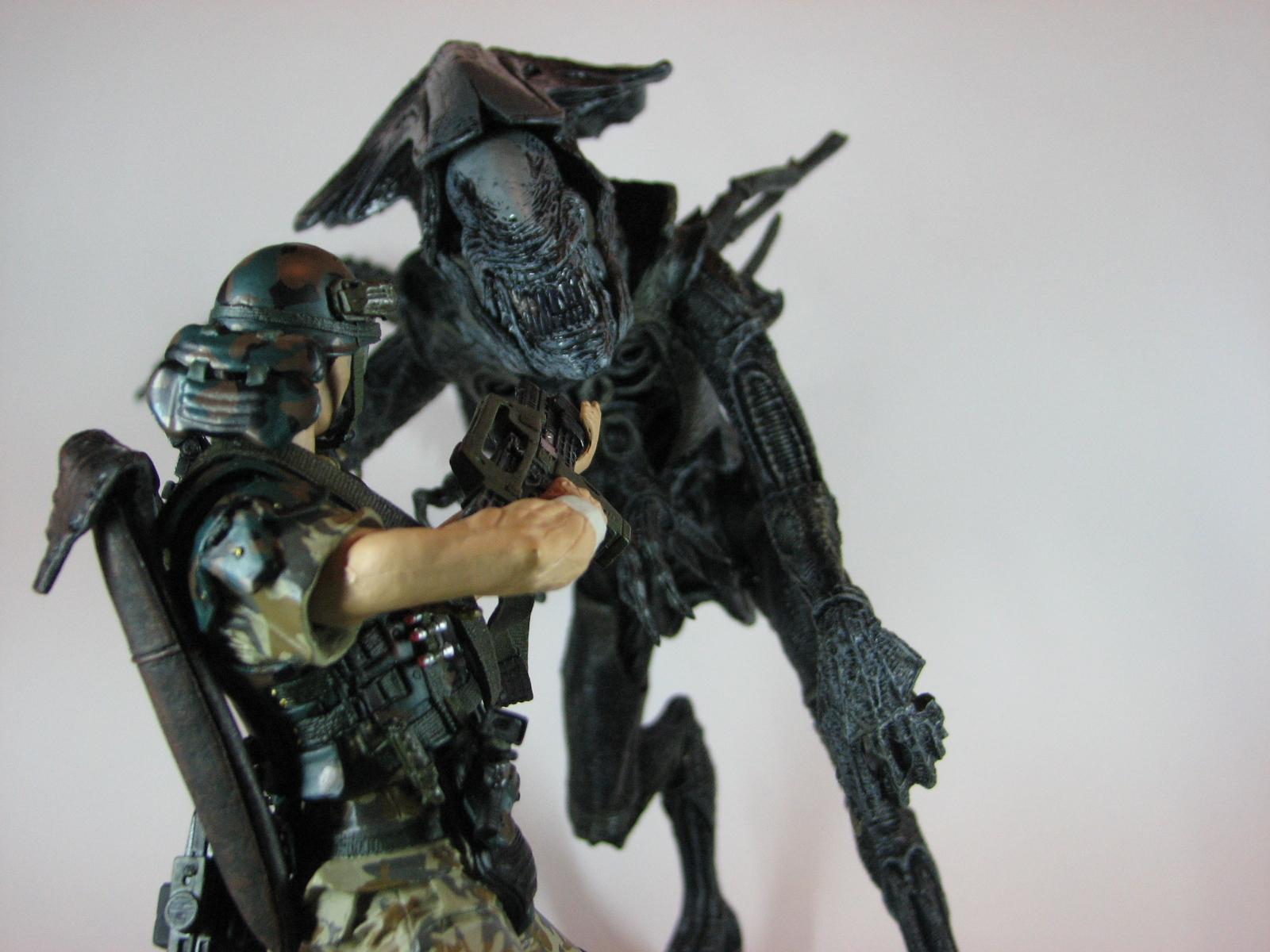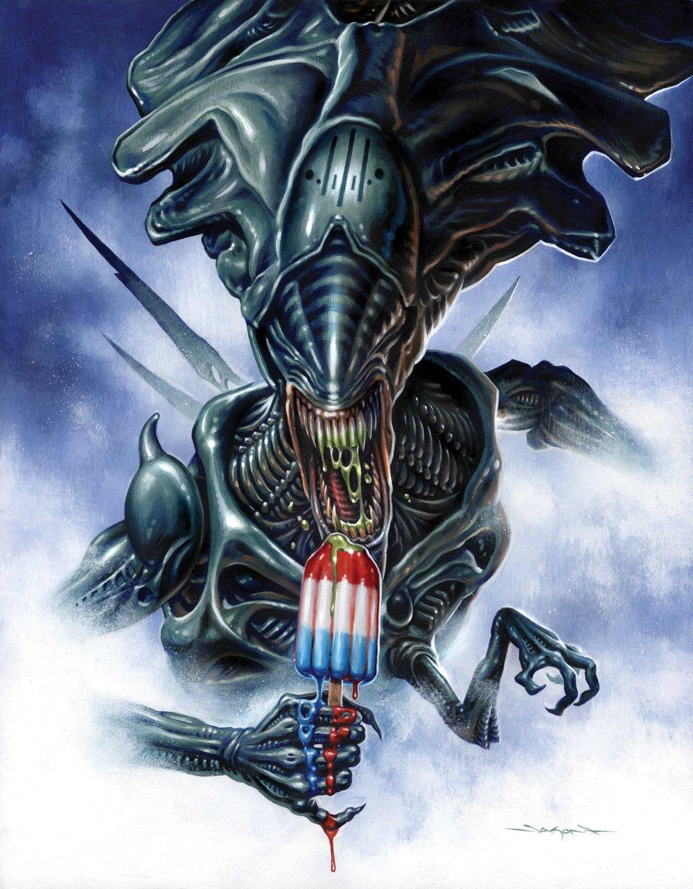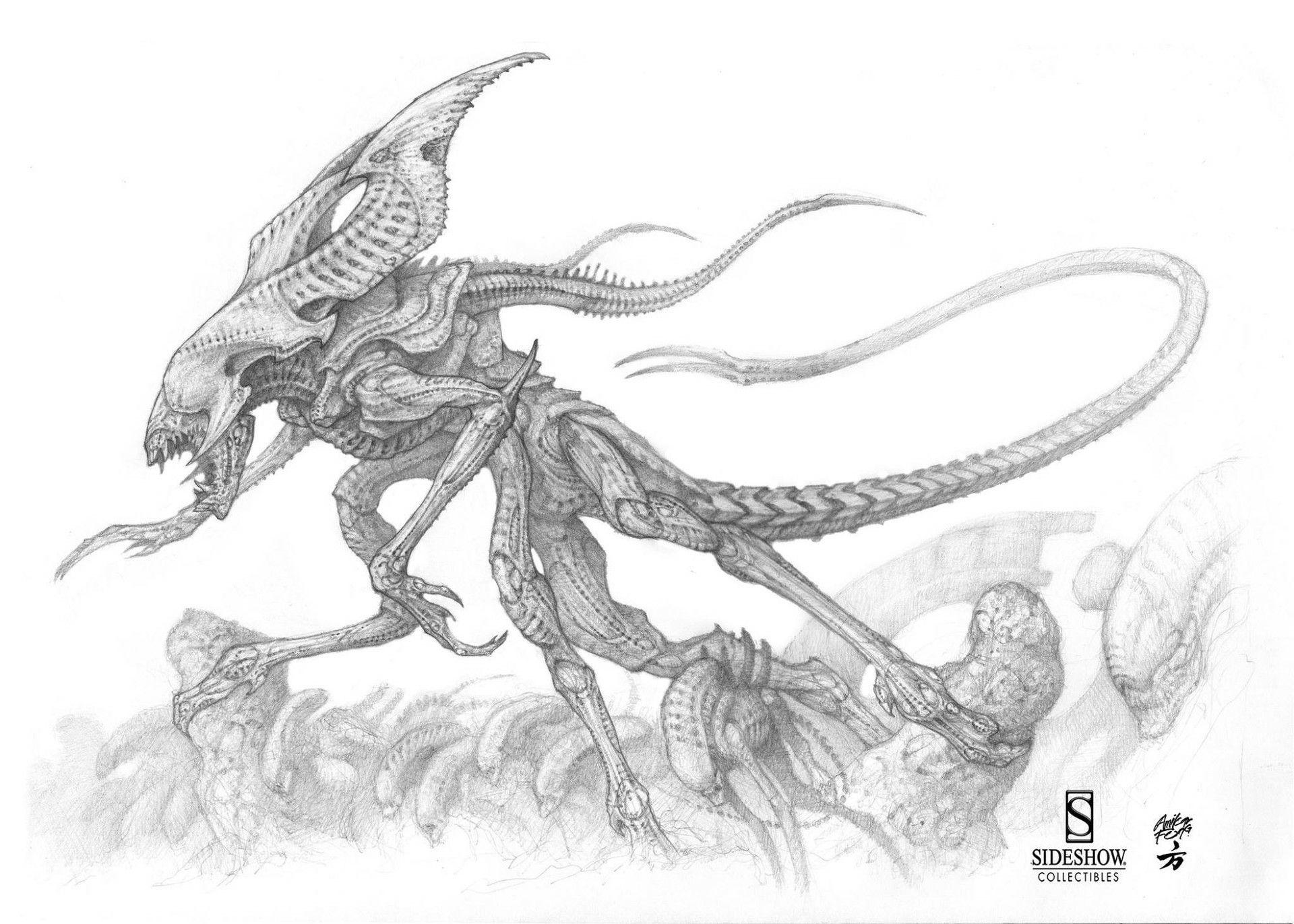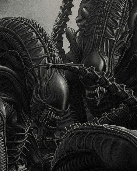 Королева Чужих воплощает первобытный ужас и материнский инстинкт в мрачной саге ксеноморфов, где ее размеры и сила внушают трепет. Эти фото демонстрируют королеву в различных проявлениях: от статных портретов с мандибулами до динамичных сцен с выводком. Тематические изображения акцентируют внимание на ее анатомии - хитиноый панцирь, внутренние челюсти, королевский гребень. Каждая картинка наполнена атмосферой космического ужаса, где черные и белые тона создают ощущение неизбежности. Эти снимки рассказывают о хрупкости человечества перед лицом инопланетной угрозы.