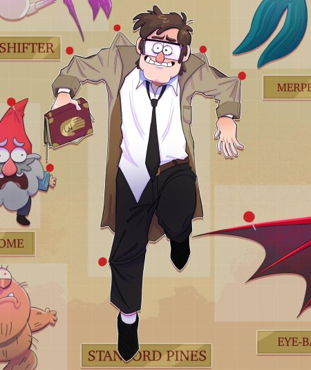 Форд Пайнс предстает как архетип ученого-авантюриста в мире Гравити Фолз, где его исследования паранормального приводят к открытиям, меняющим реальность. Эти иллюстрации демонстрируют персонажа в различных ситуациях: от сосредоточенных портретов с картами до динамичных сцен с загадочными артефактами. Тематические арты акцентируют внимание на его внешности - шестиугольные очки, плащ с символами, записные книжки. Каждая картинка наполнена атмосферой тайны, где обыденность граничит с сверхъестественным. Эти изображения идеально отражают суть персонажа: любопытство, которое может открыть двери в другие миры, но требует осторожности.