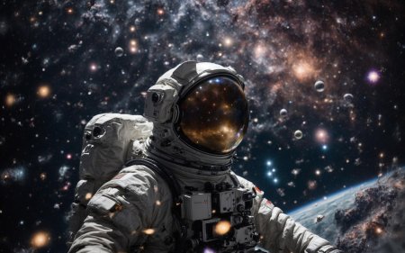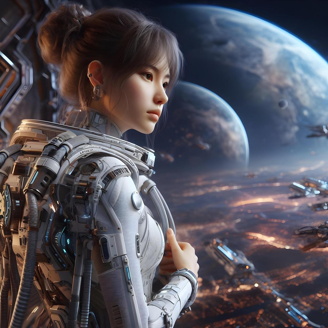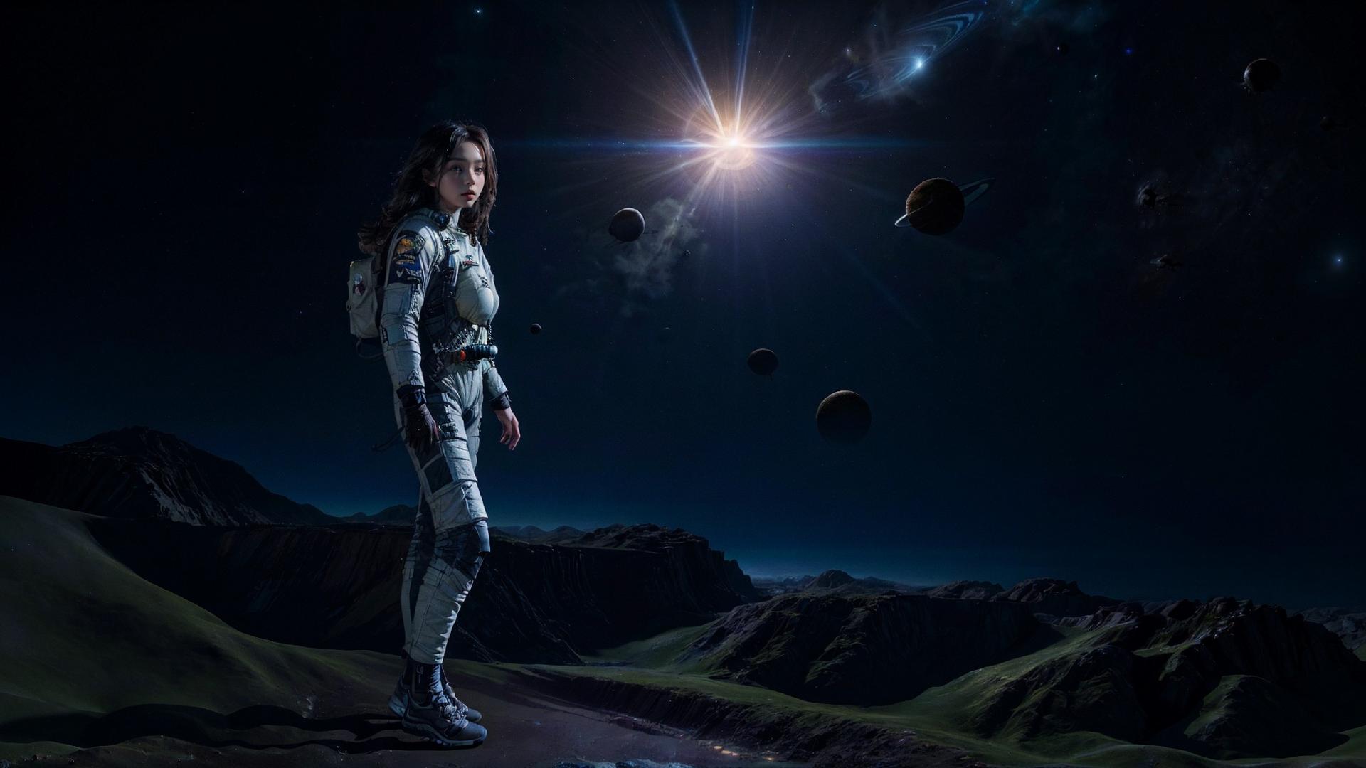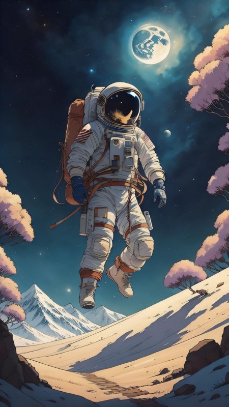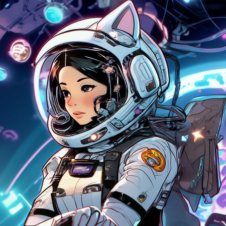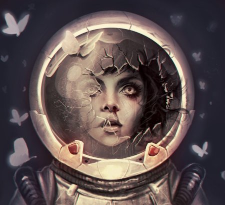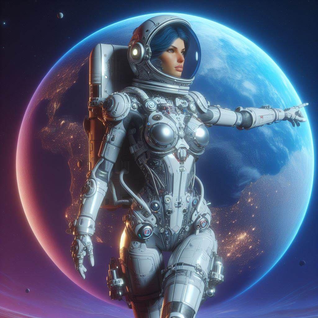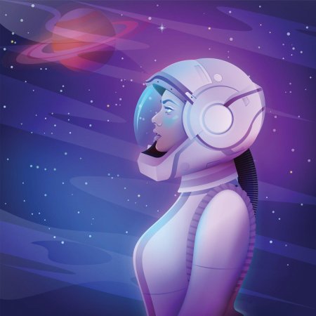 В этой захватывающей иллюстрации девушка предстает в образе смелой астронавтки, готовой покорить необъятные просторы Вселенной. Ее скафандр блестит в лучах далеких звезд, а взгляд полон решимости и любопытства. Художник мастерски передал атмосферу космических приключений, добавив детали вроде мерцающих планет на фоне и технических элементов космического корабля. Такая композиция идеально подходит для любителей научной фантастики и тех, кто интересуется темами космоса, технологий и человеческого духа. Иллюстрация выполнена в ярком и динамичном стиле, где сочетаются реалистичные элементы с художественными приемами. Девушка-астронавт символизирует прогресс науки и неукротимое стремление человека к новым открытиям. Эта работа вдохновляет на размышления о будущем человечества и роли женщин в освоении космоса.