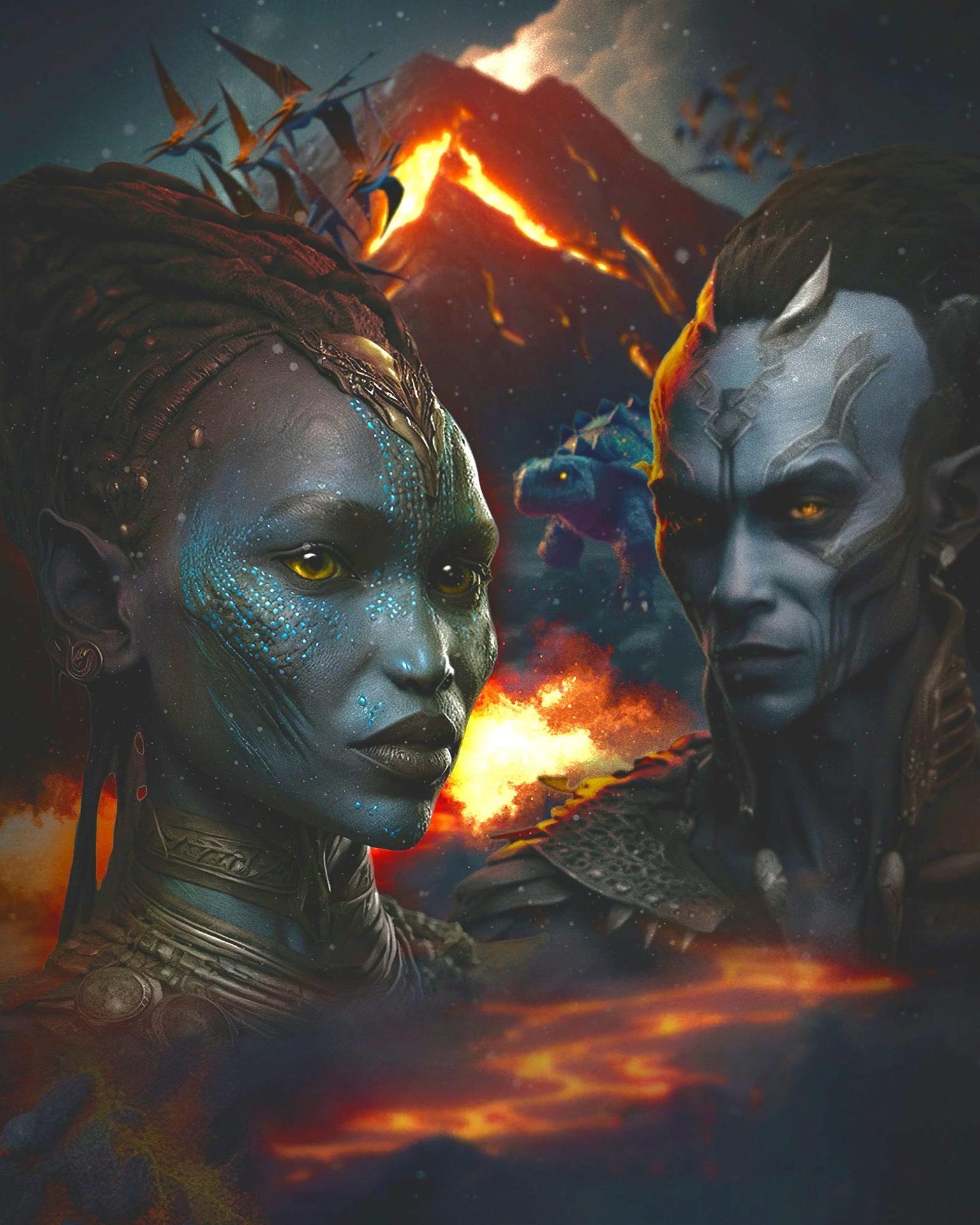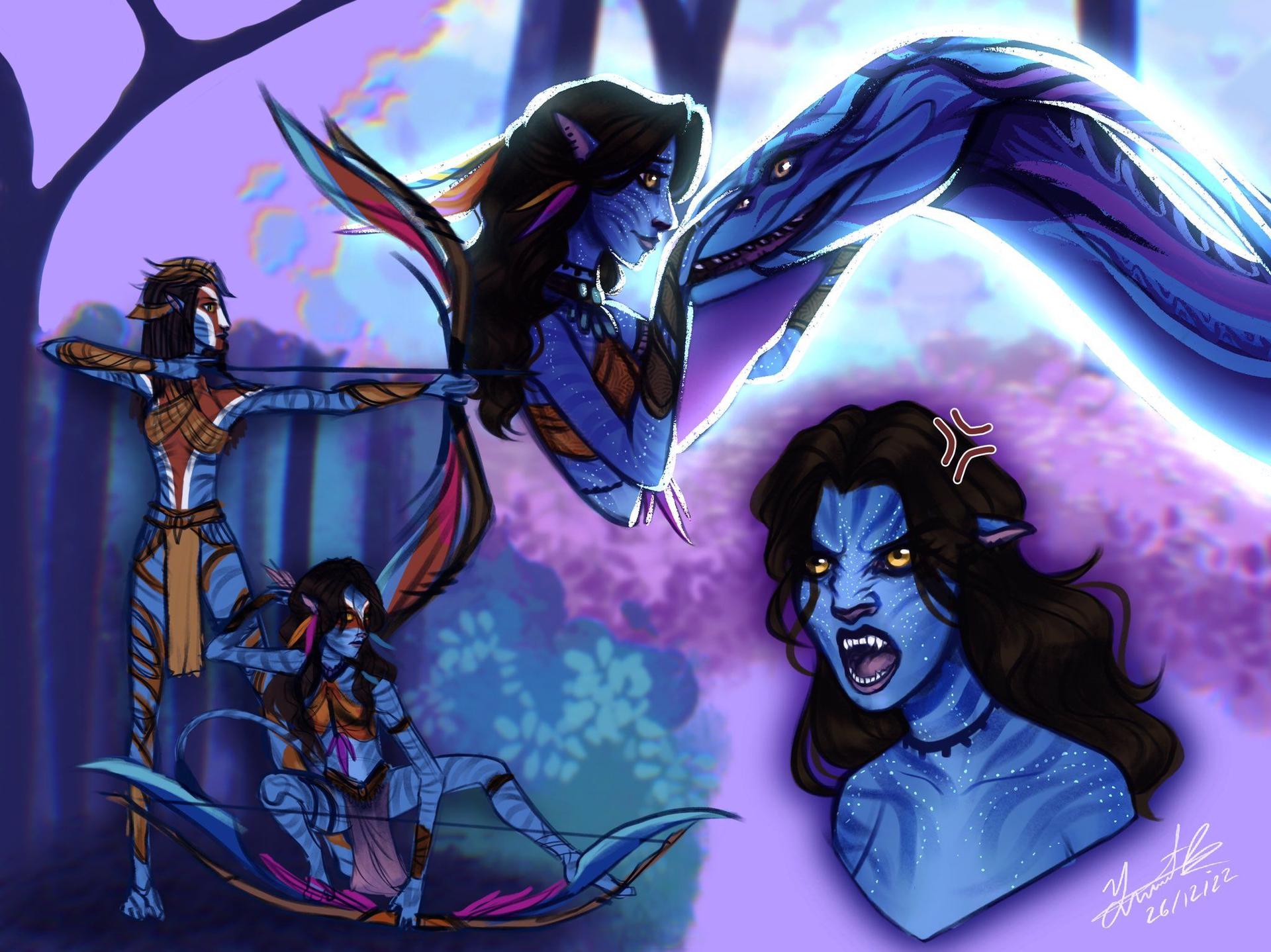 На'ви из фильма Аватар представляют собой идеал гармонии между разумом и природой, создавая образ, который одновременно чуждый и глубоко привлекательный. Эти высокие синие существа с их кошачьими движениями и связью с живыми существами стали символом экологического сознания. Арты На'ви подчеркивают их уникальную анатомию: вытянутые формы, большие желтые глаза, заостренные уши и хвосты, соединенные с нервной системой Икран. Иллюстрации показывают различные аспекты их культуры: от охоты на Икранах до ритуалов связи с Эйвой. Фотографии в разных стилях демонстрируют многогранность образа - от официальных кадров из фильма до фанатских артов и 3D-моделей. Тематические изображения включают сцены их взаимодействия с природой, моменты обучения и символические композиции, отражающие темы единства с миром. Коллекция иллюстраций разнообразна по техникам: от фотореалистичных изображений до стилизованных иллюстраций. Каждый арт подчеркивает красоту иного образа жизни, где технологии уступают место интуитивному пониманию природы.