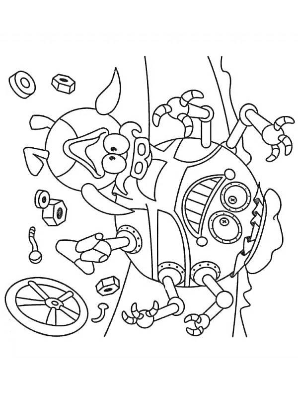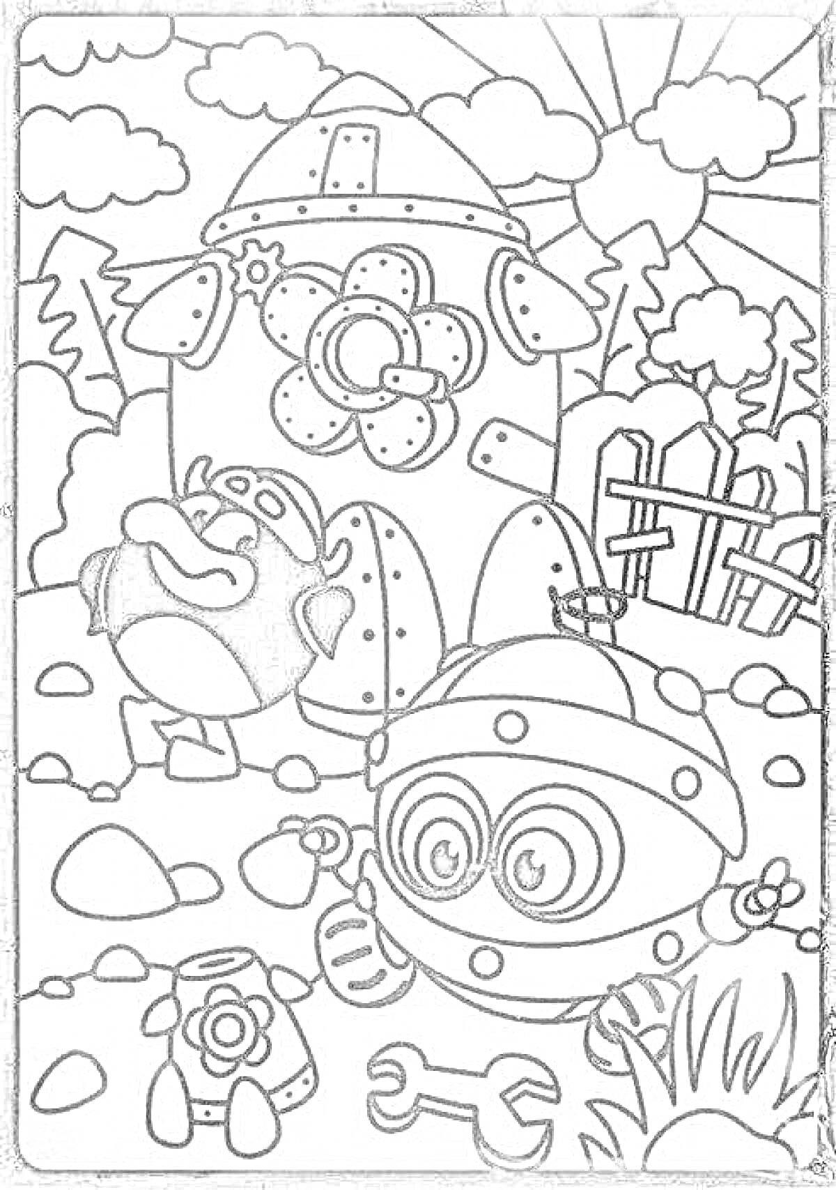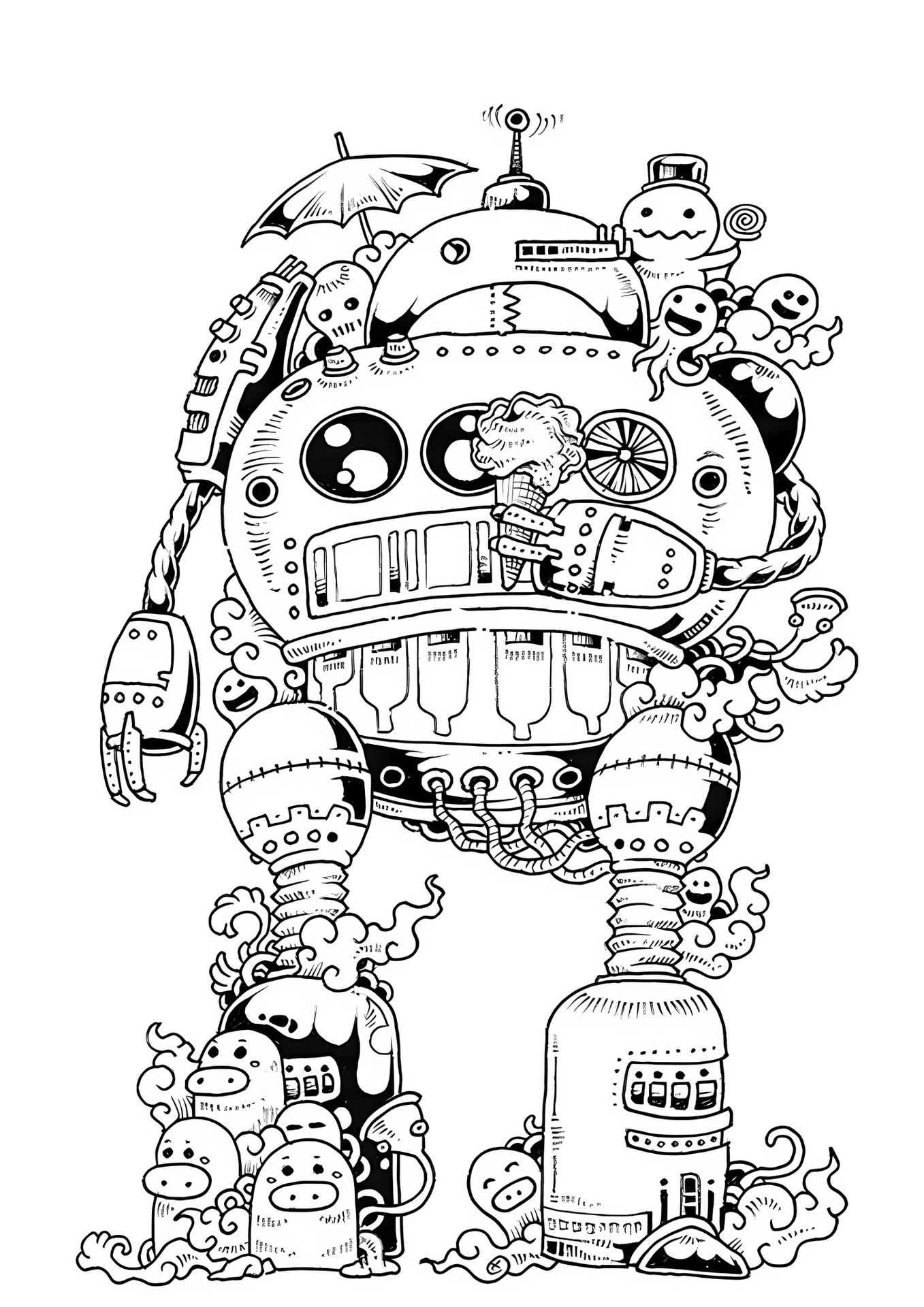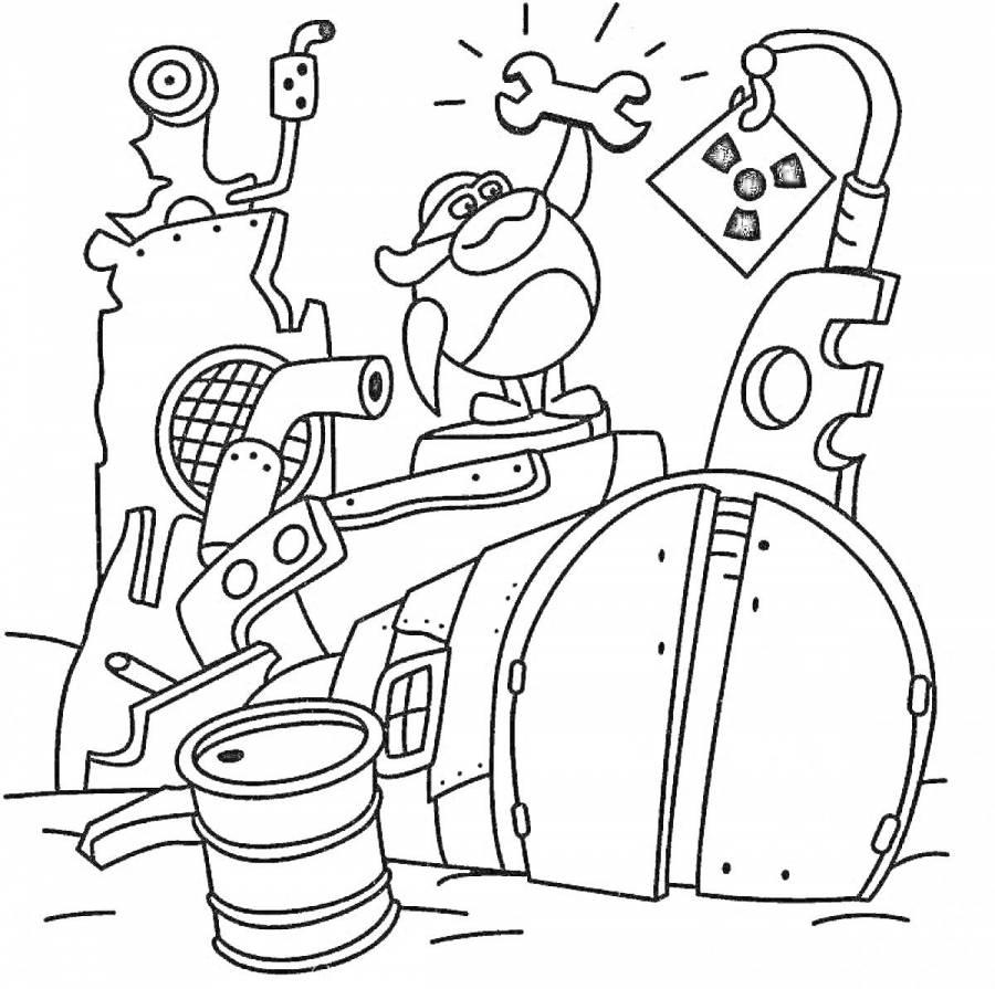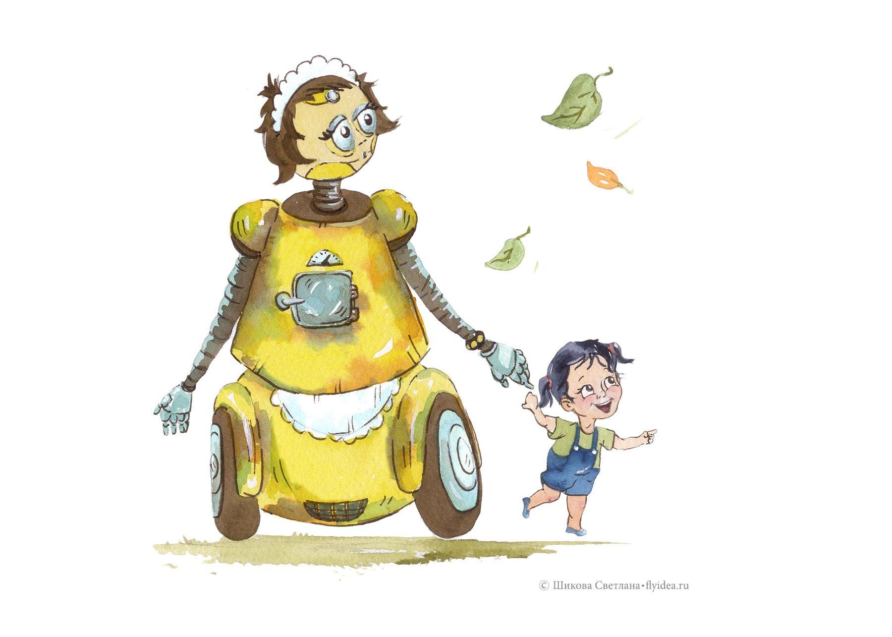 Робот-няня из Смешариков предстает в этой иллюстрации как идеальный помощник для детей. Его дизайн сочетает дружелюбные формы с функциональными элементами, создавая атмосферу безопасности и заботы. Художник добавил милые детали вроде мягких контуров и дружелюбного выражения. Композиция идеальна для тем детства, технологий и семейных ценностей. Арт выполнен в ярком и теплом стиле. Робот-няня символизирует гармонию между технологиями и человеческими эмоциями.