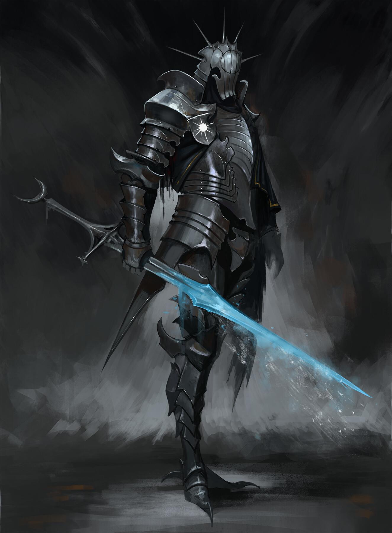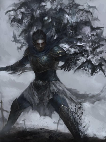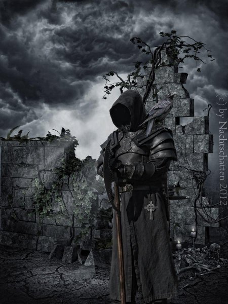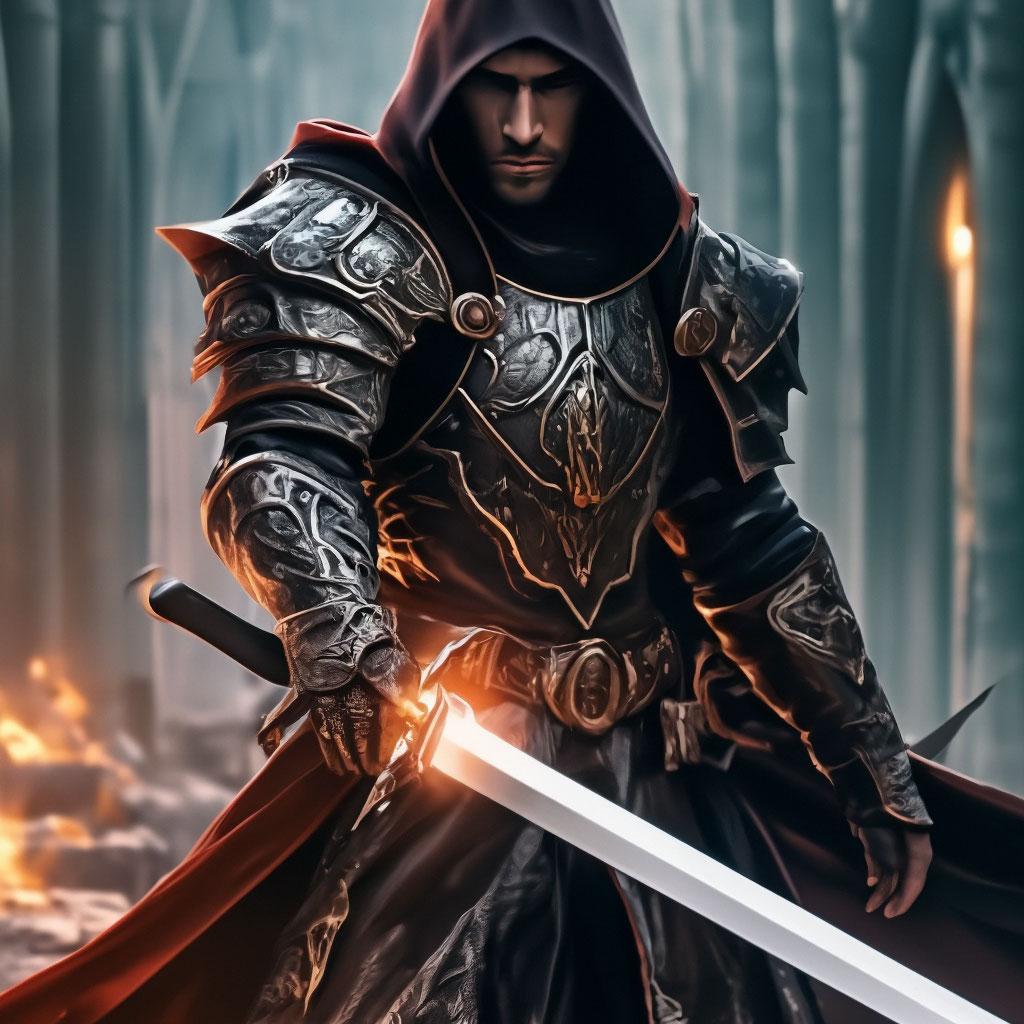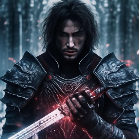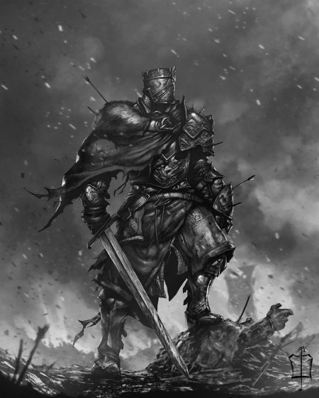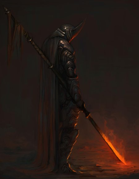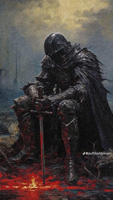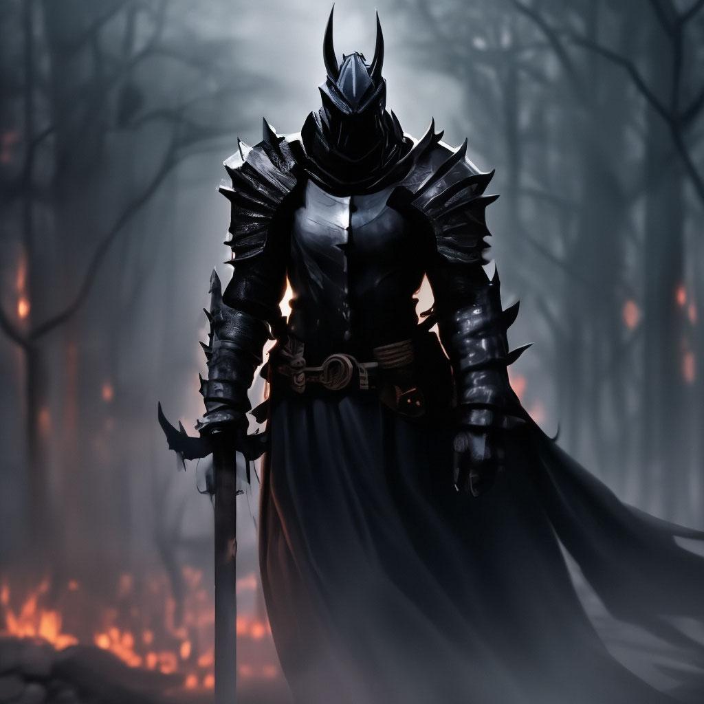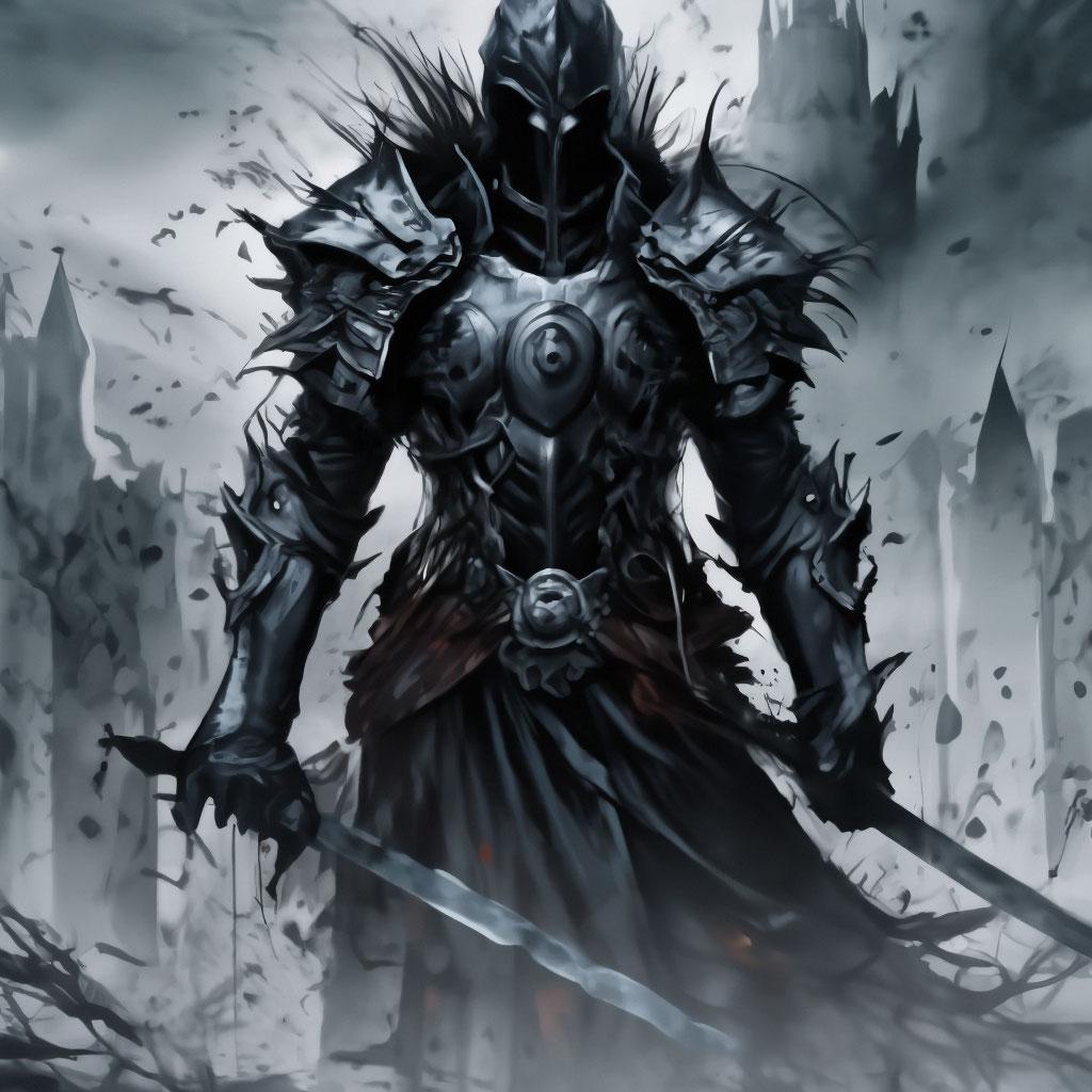 Темный воин предстает в этой иллюстрации как воплощение силы и тайны. Его доспехи и поза создают атмосферу непобедимости и загадочности. Художник использовал темную палитру для передачи характера. Композиция идеальна для тем войны, силы и внутренней борьбы. Арт выполнен в мрачном стиле с драматическими тенями. Воин символизирует сложность человеческой природы.