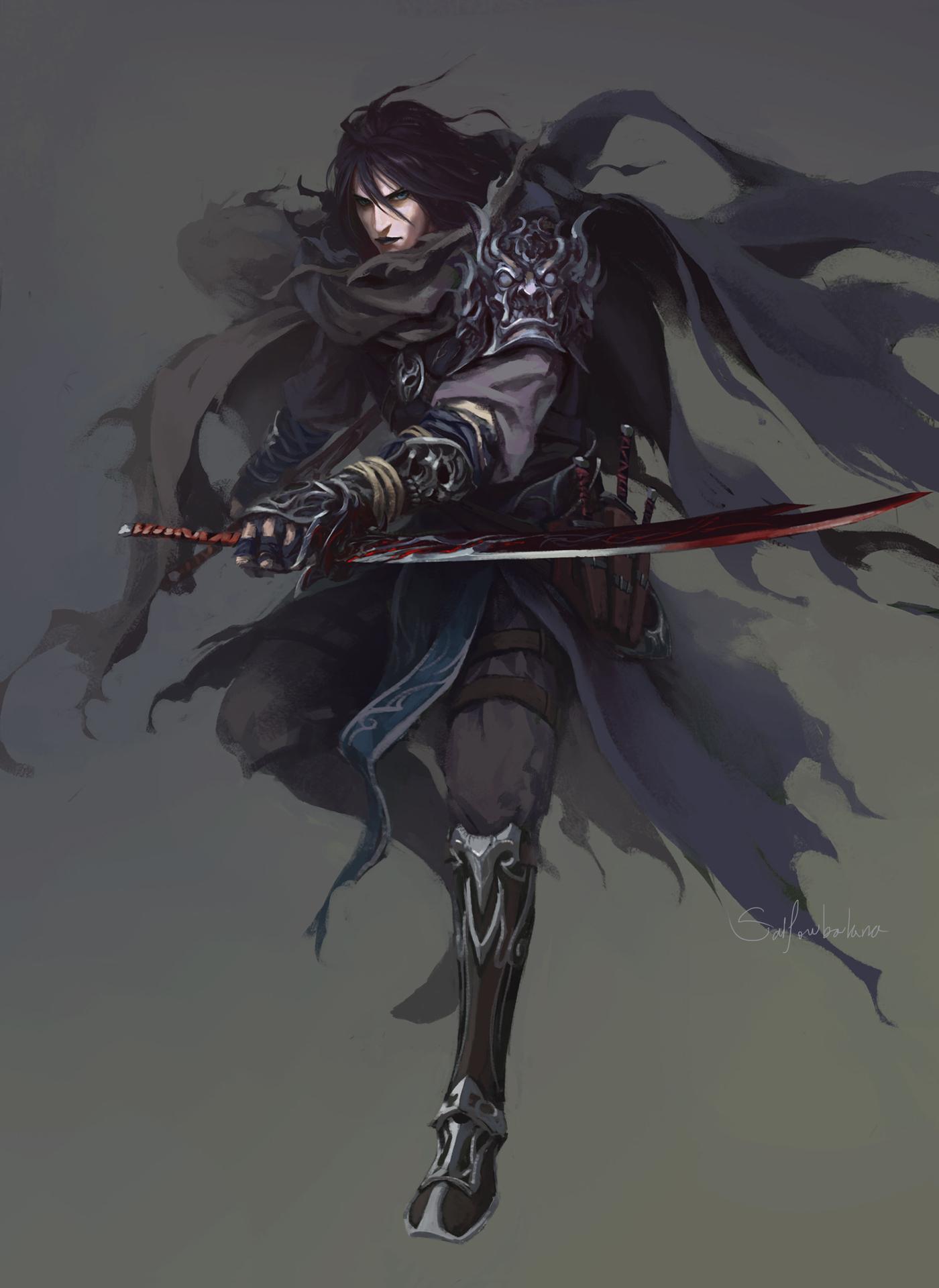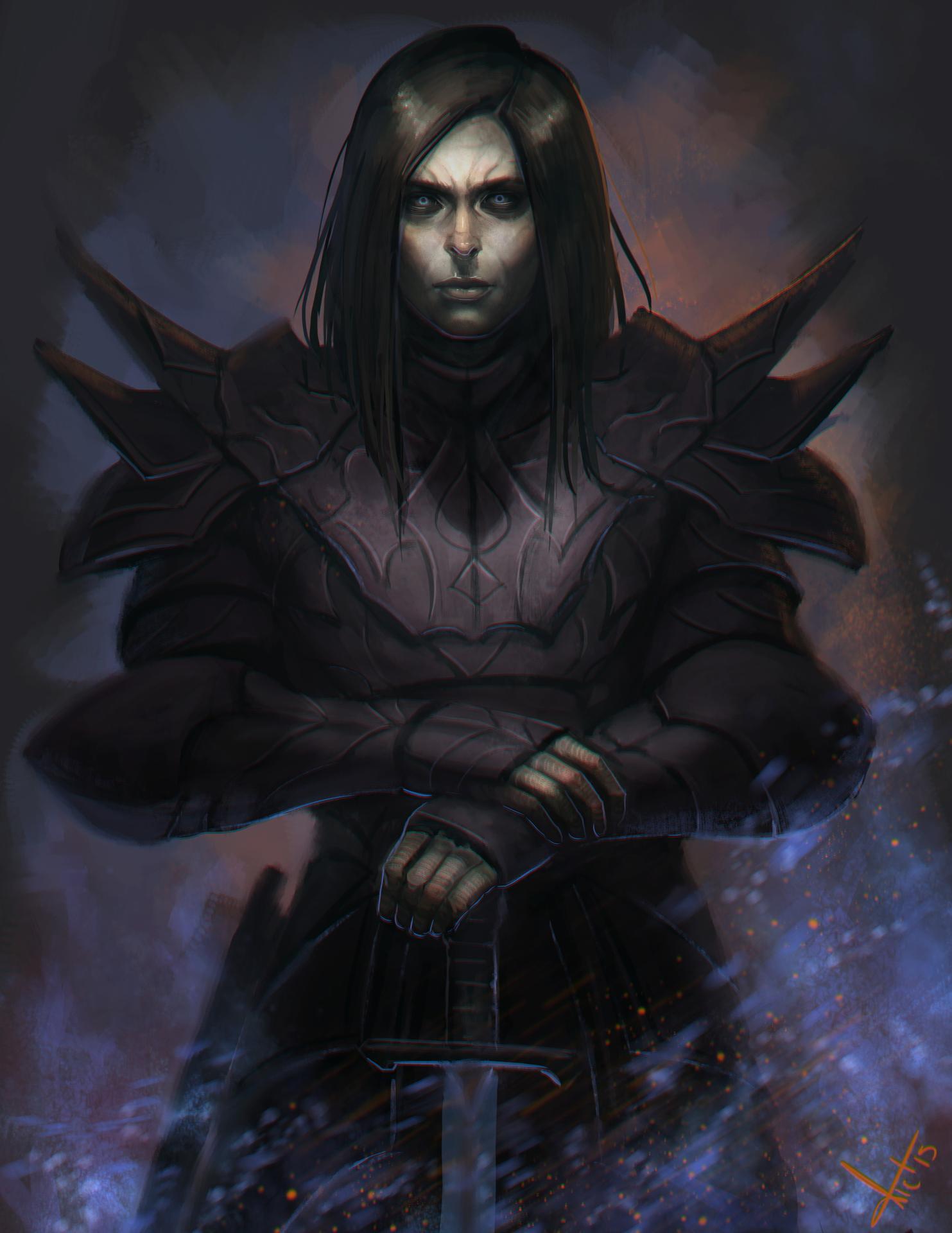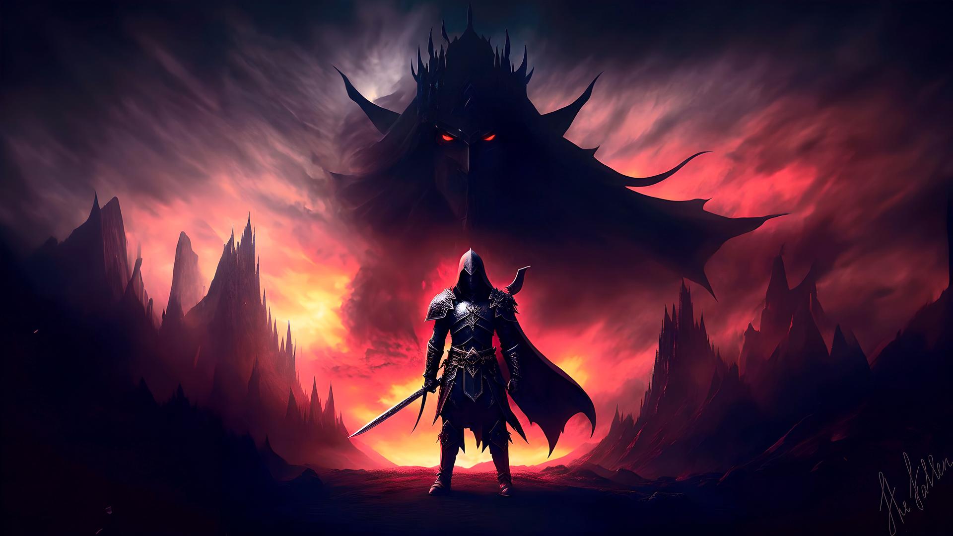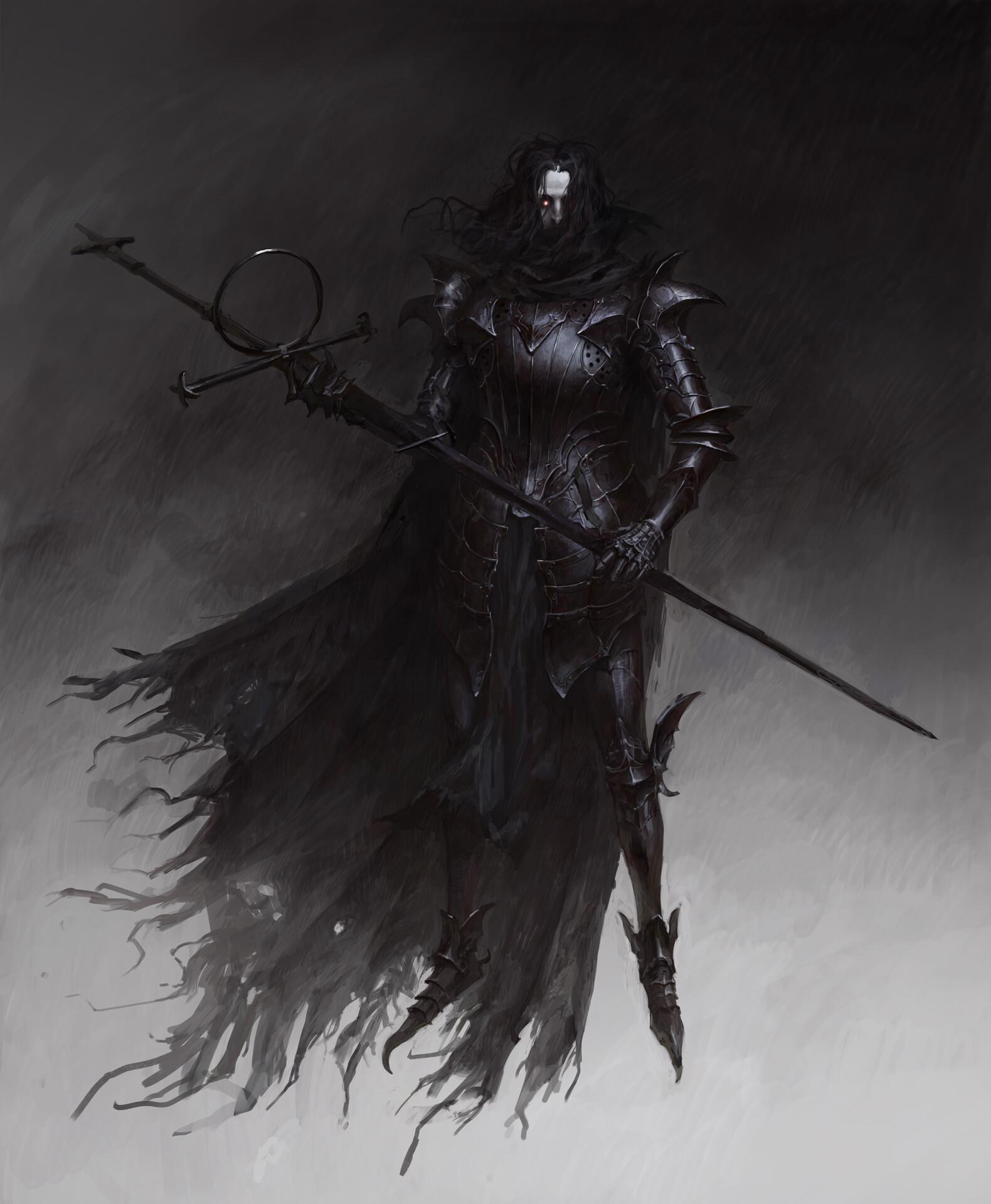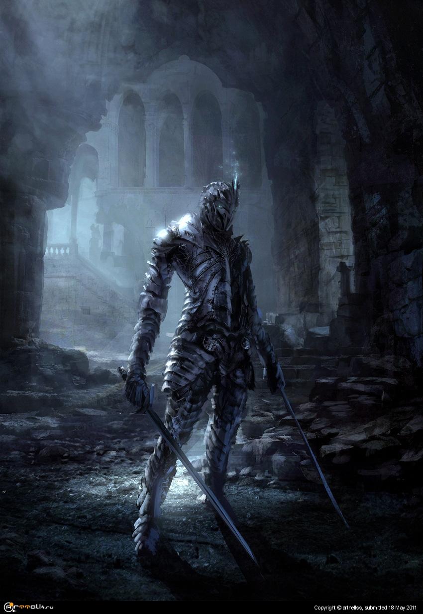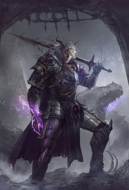 Темный воин предстает в этой иллюстрации как воплощение силы и тайны. Его доспехи и поза создают атмосферу непобедимости и загадочности. Художник использовал темную палитру для передачи характера. Композиция идеальна для тем войны, силы и внутренней борьбы. Арт выполнен в мрачном стиле с драматическими тенями. Воин символизирует сложность человеческой природы.