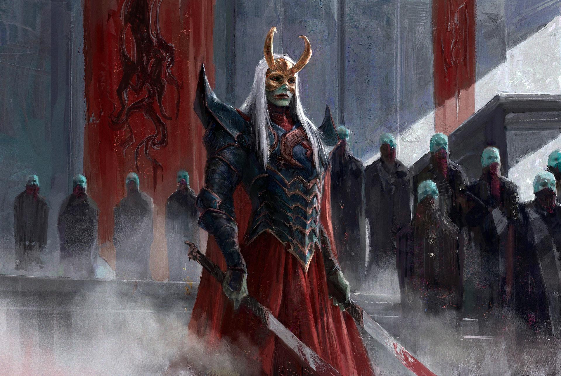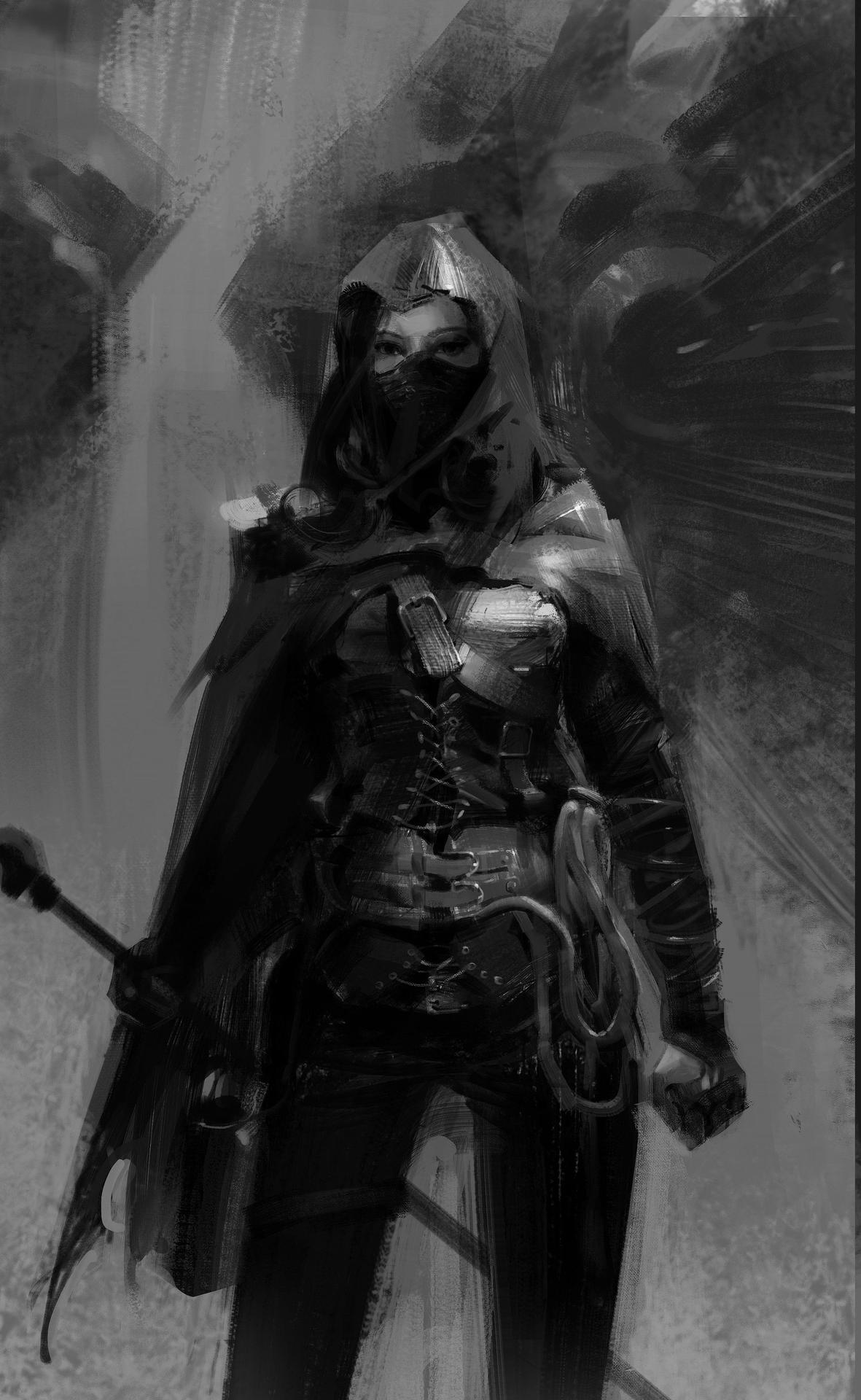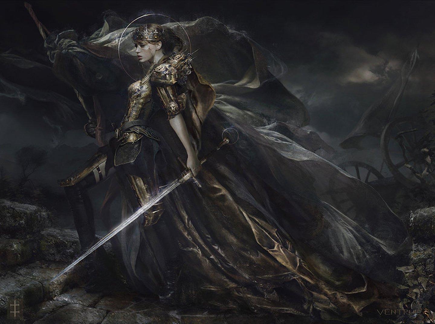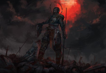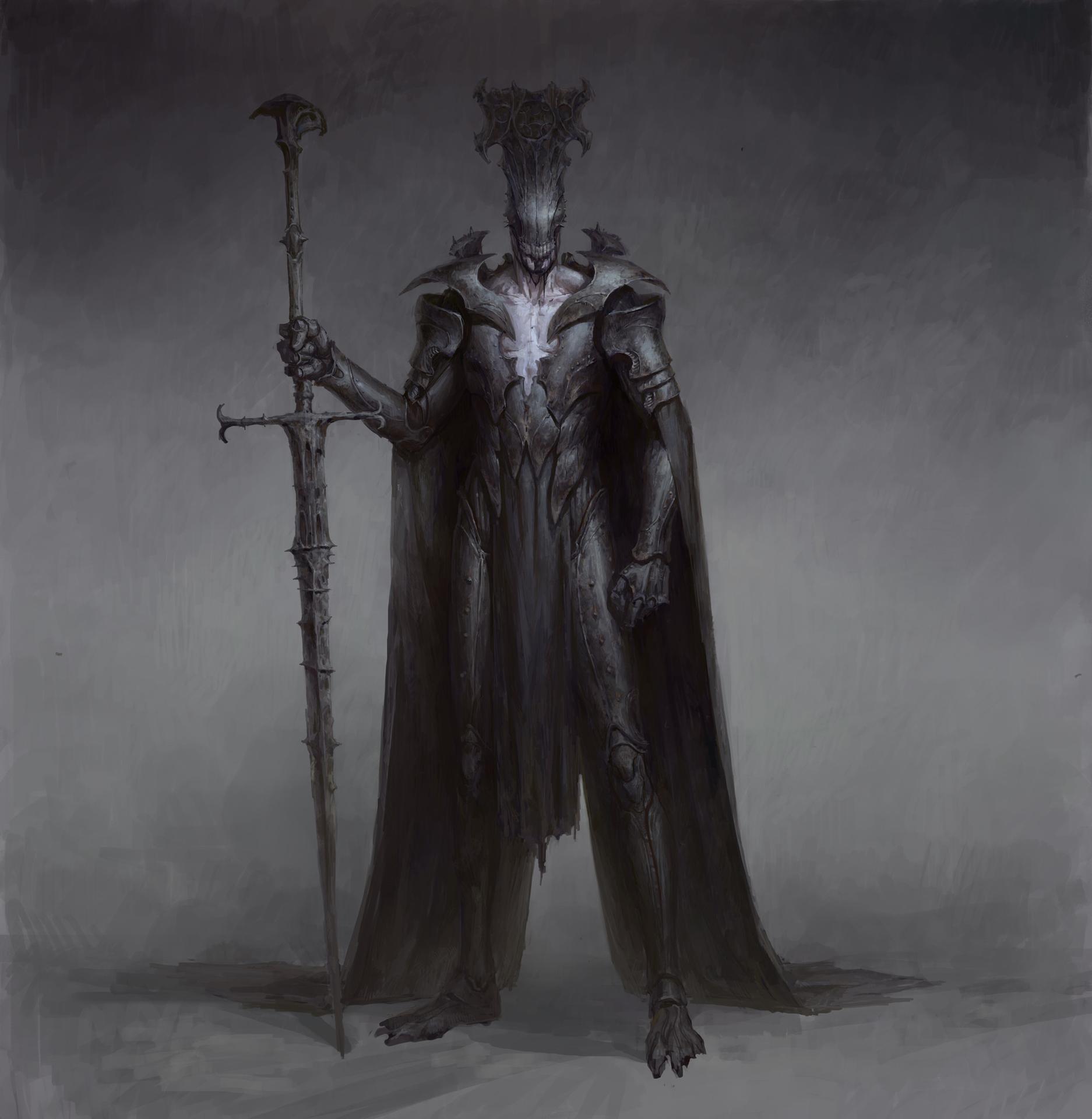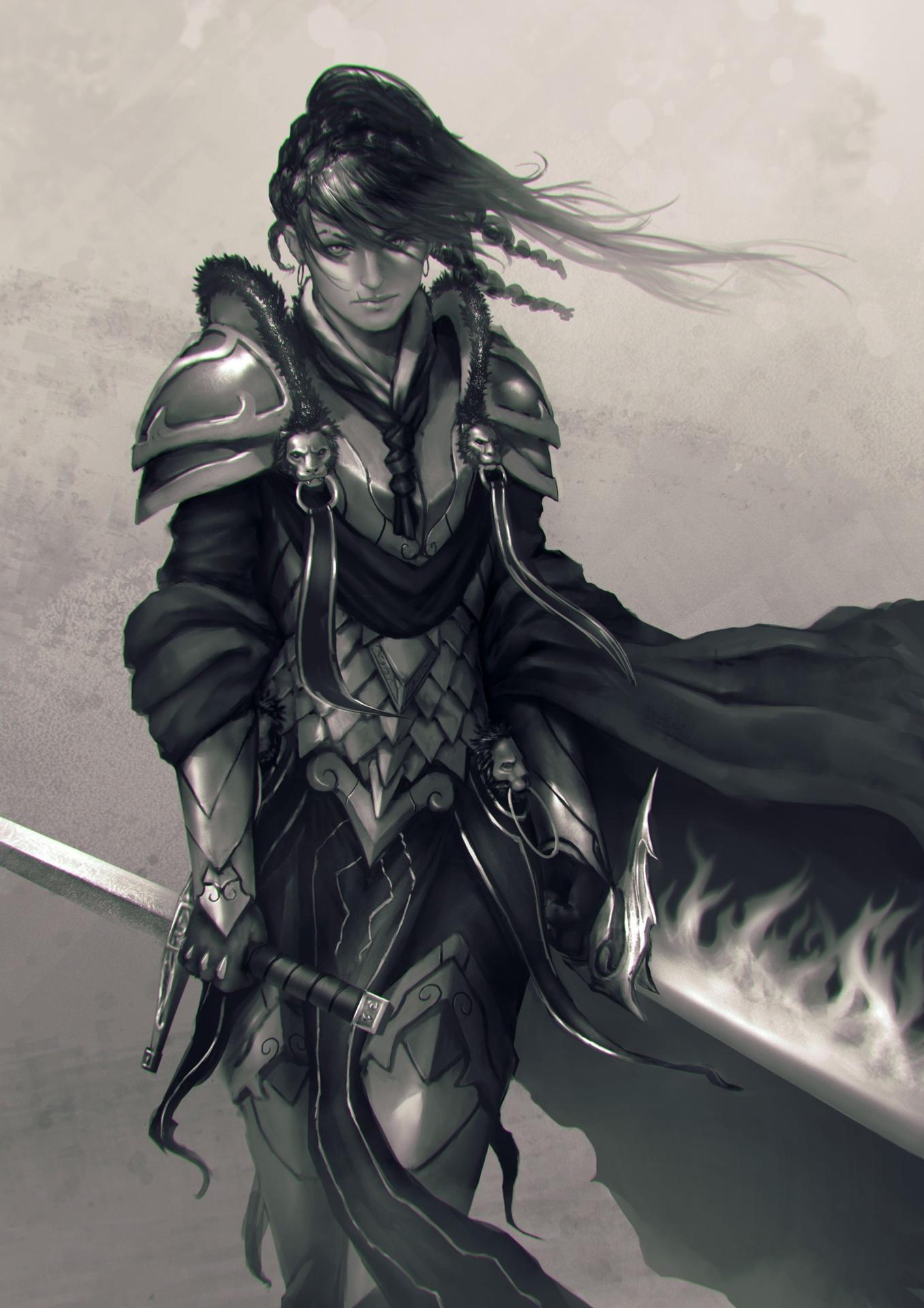 Темный воин предстает в этой иллюстрации как воплощение силы и тайны. Его доспехи и поза создают атмосферу непобедимости и загадочности. Художник использовал темную палитру для передачи характера. Композиция идеальна для тем войны, силы и внутренней борьбы. Арт выполнен в мрачном стиле с драматическими тенями. Воин символизирует сложность человеческой природы.
