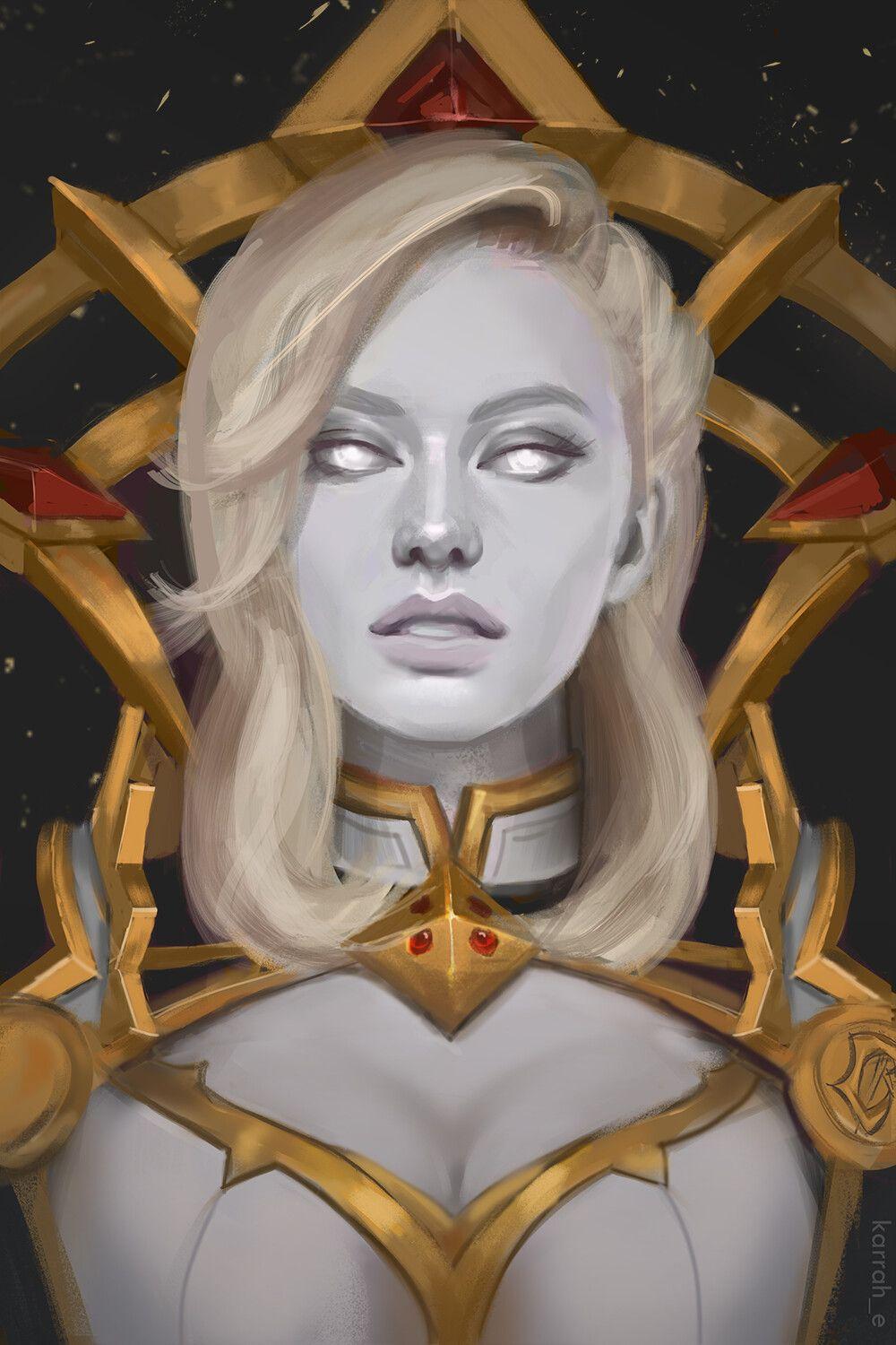 Калия Менетил предстает в этой иллюстрации как воплощение королевского достоинства и элегантности. Ее образ сочетает исторические элементы с современными акцентами, создавая атмосферу благородства. Художник детально проработал одежду, аксессуары и позу, подчеркивая статус персонажа. Композиция идеальна для тем истории, власти и женского лидерства. Арт выполнен в классическом стиле с золотыми акцентами. Калия символизирует гармонию между властью и мудростью.