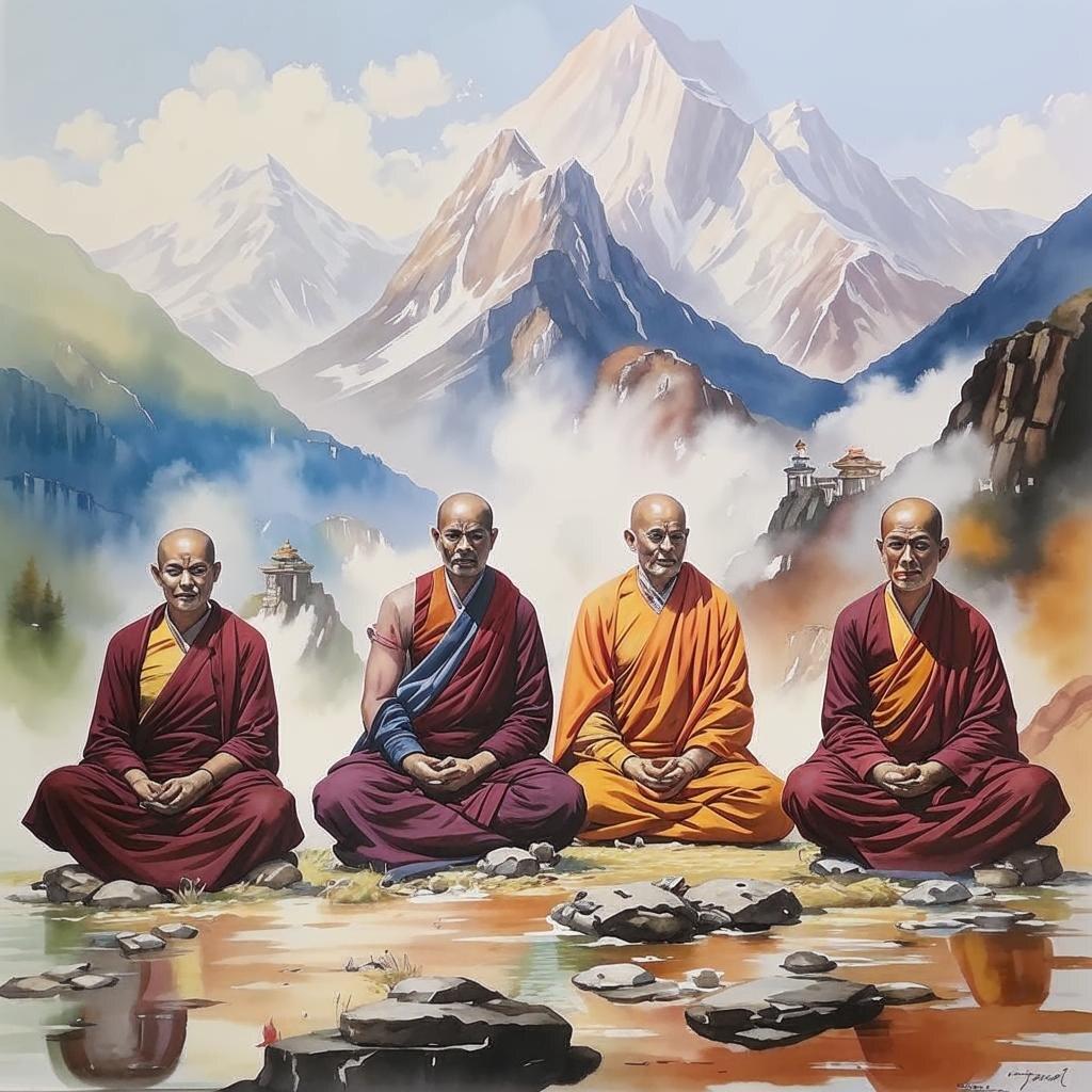 Тибетские монахи представляют собой воплощение духовной дисциплины - людей, посвятивших жизнь поиску просветления и сохранению культурного наследия. Эти образы символизируют темы мира и внутреннего спокойствия. Арты монахов подчеркивают их спокойный облик: оранжевые одежды, бритые головы и сосредоточенные выражения лиц. Иллюстрации показывают различные аспекты их жизни: от утренних молитв до изучения священных текстов. Фотографии в разных стилях демонстрируют многогранность образов - от документальных снимков до художественных композиций. Тематические изображения включают сцены медитации, моменты обучения и символические композиции, отражающие темы духовности. Коллекция иллюстраций разнообразна по техниках: от живописных полотен до цифровых фотографий. Каждый арт рассказывает историю о том, как традиции могут передаваться сквозь века.