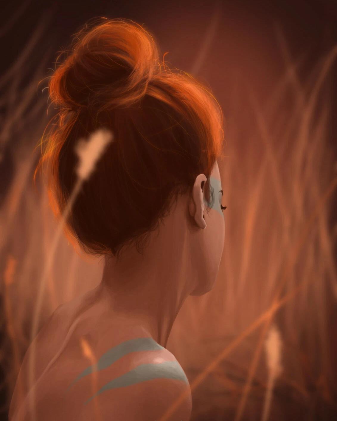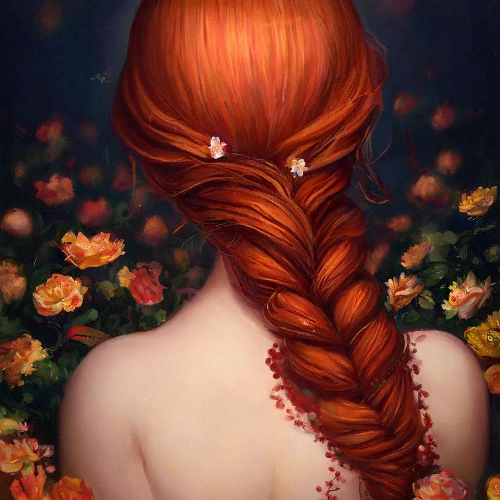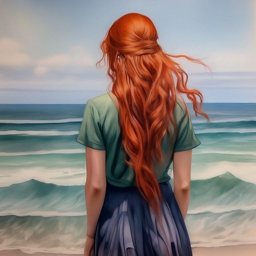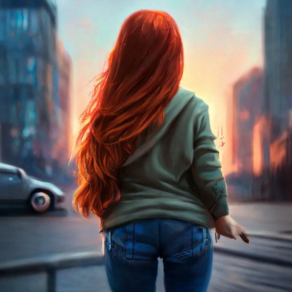 Рыжеволосая девушка со спины