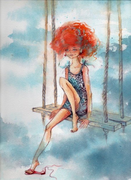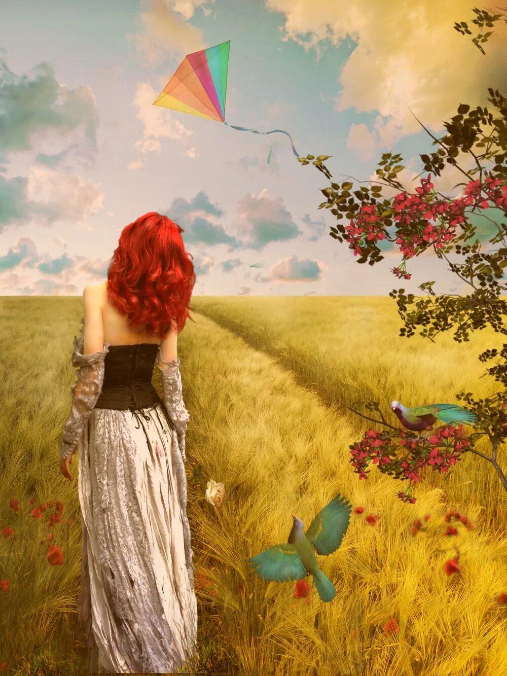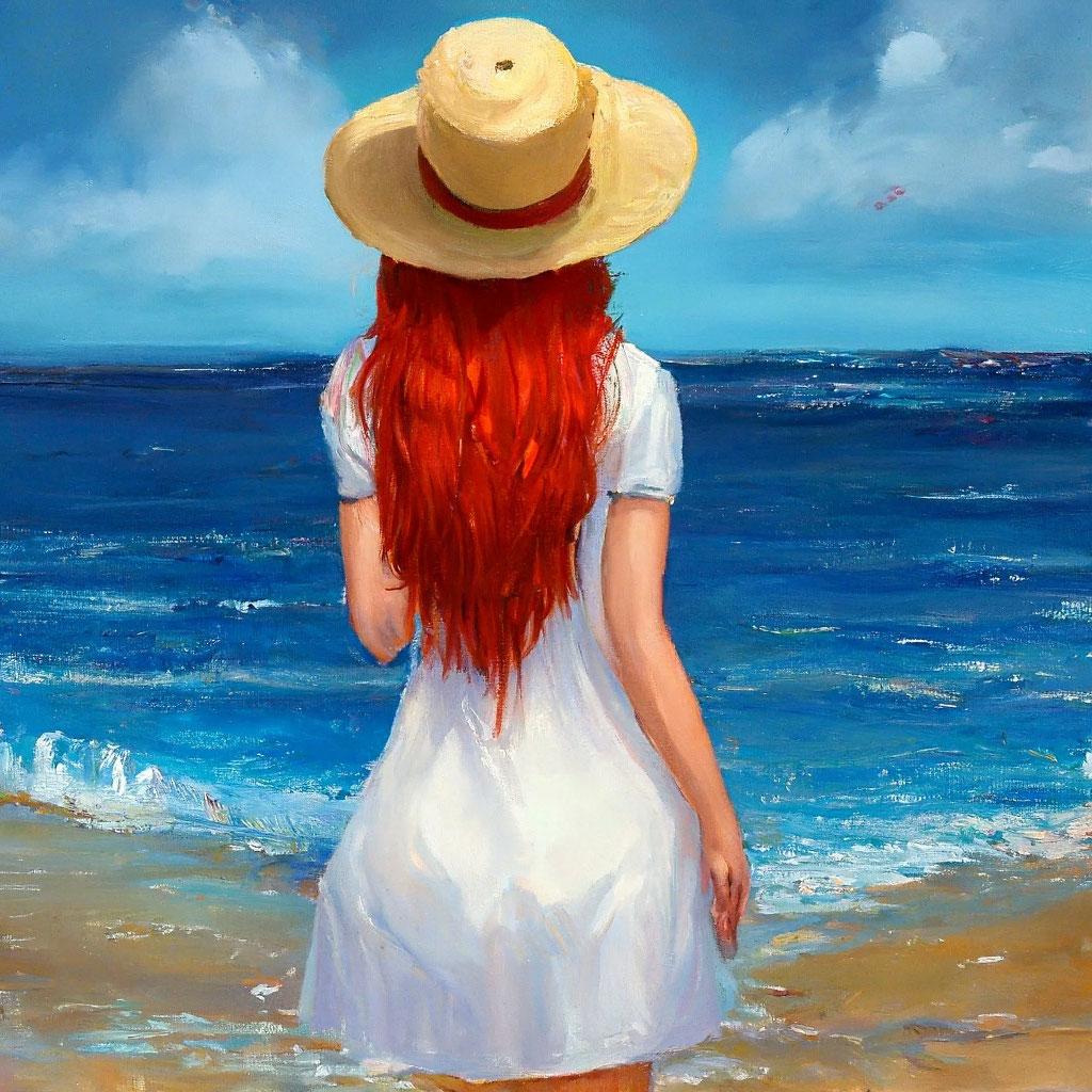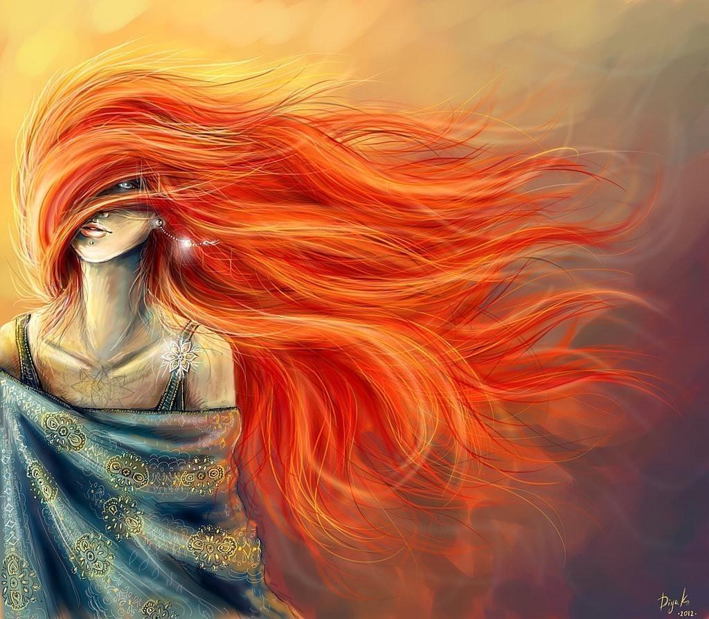 Рыжеволосая девушка со спины