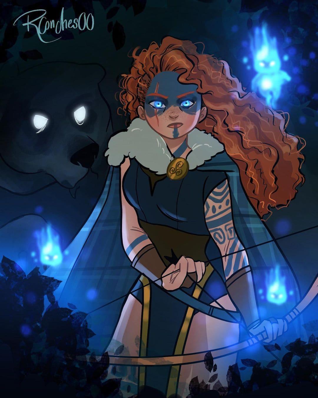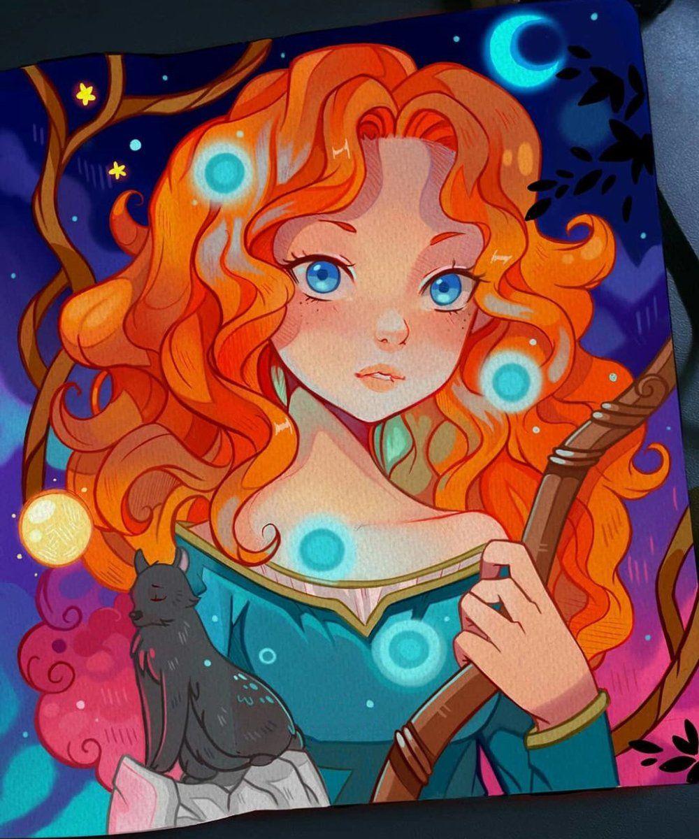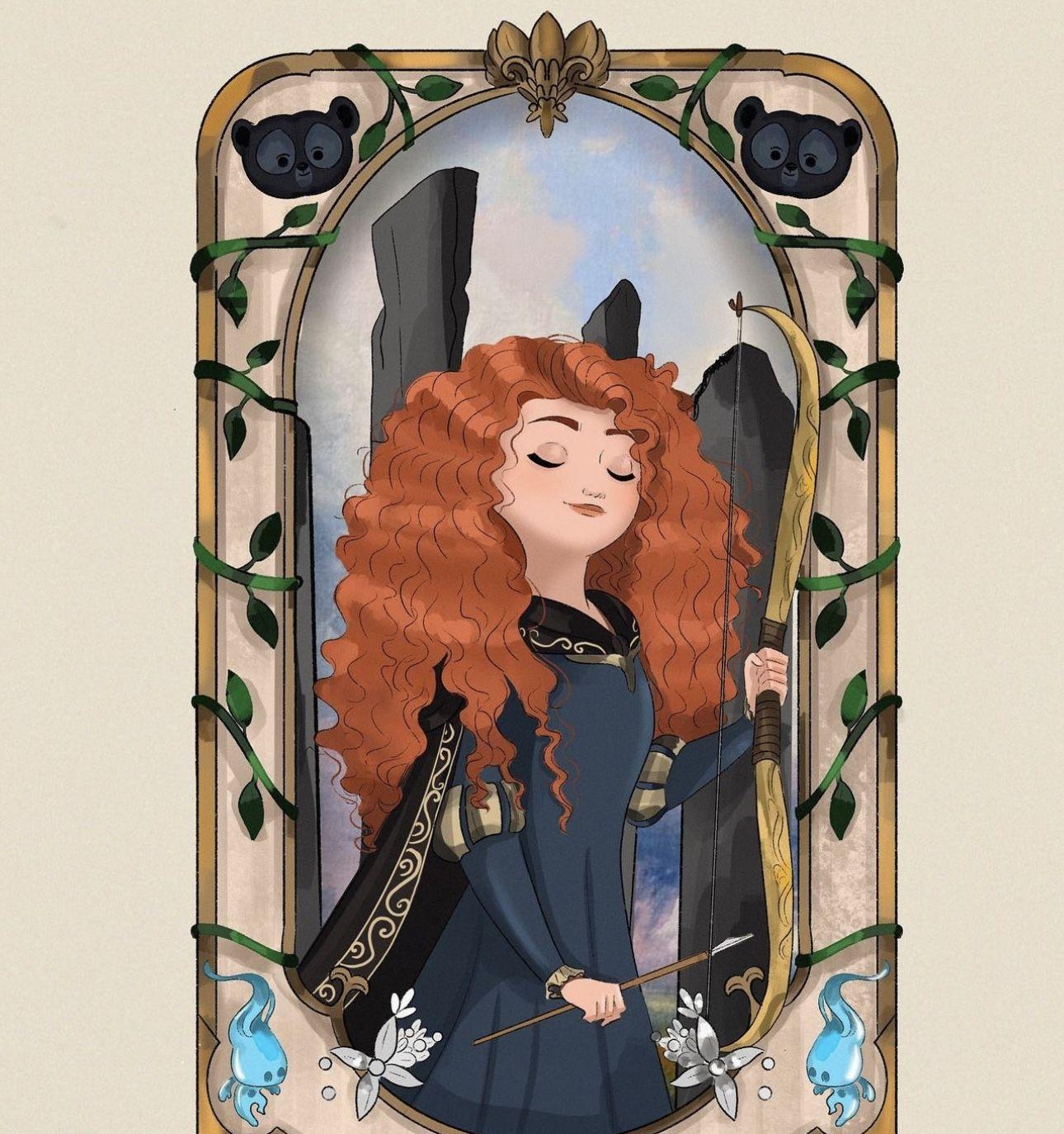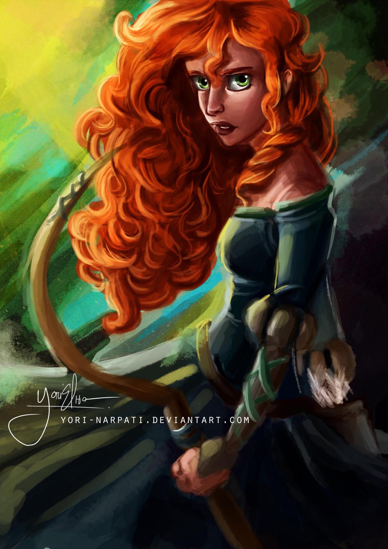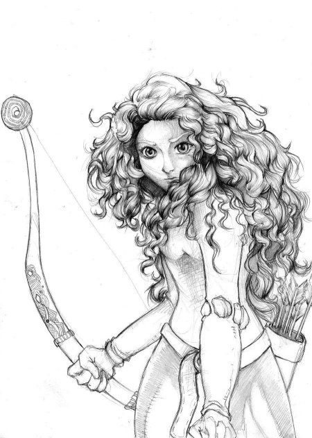 Мерида Храбрая предстает в этой иллюстрации как независимая и отважная принцесса. Ее образ сочетает женскую грацию с воинственным духом, создавая атмосферу приключений. Художник передал движение и решимость через позу и аксессуары. Композиция идеальна для тем феминизма, приключений и самопознания. Арт выполнен в динамичном стиле с природными мотивами. Мерида символизирует силу женской воли.