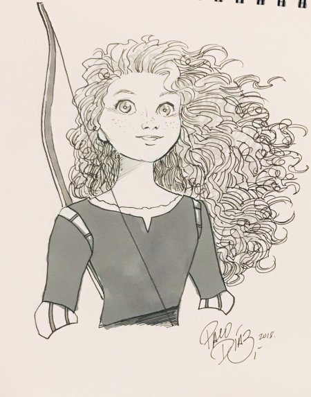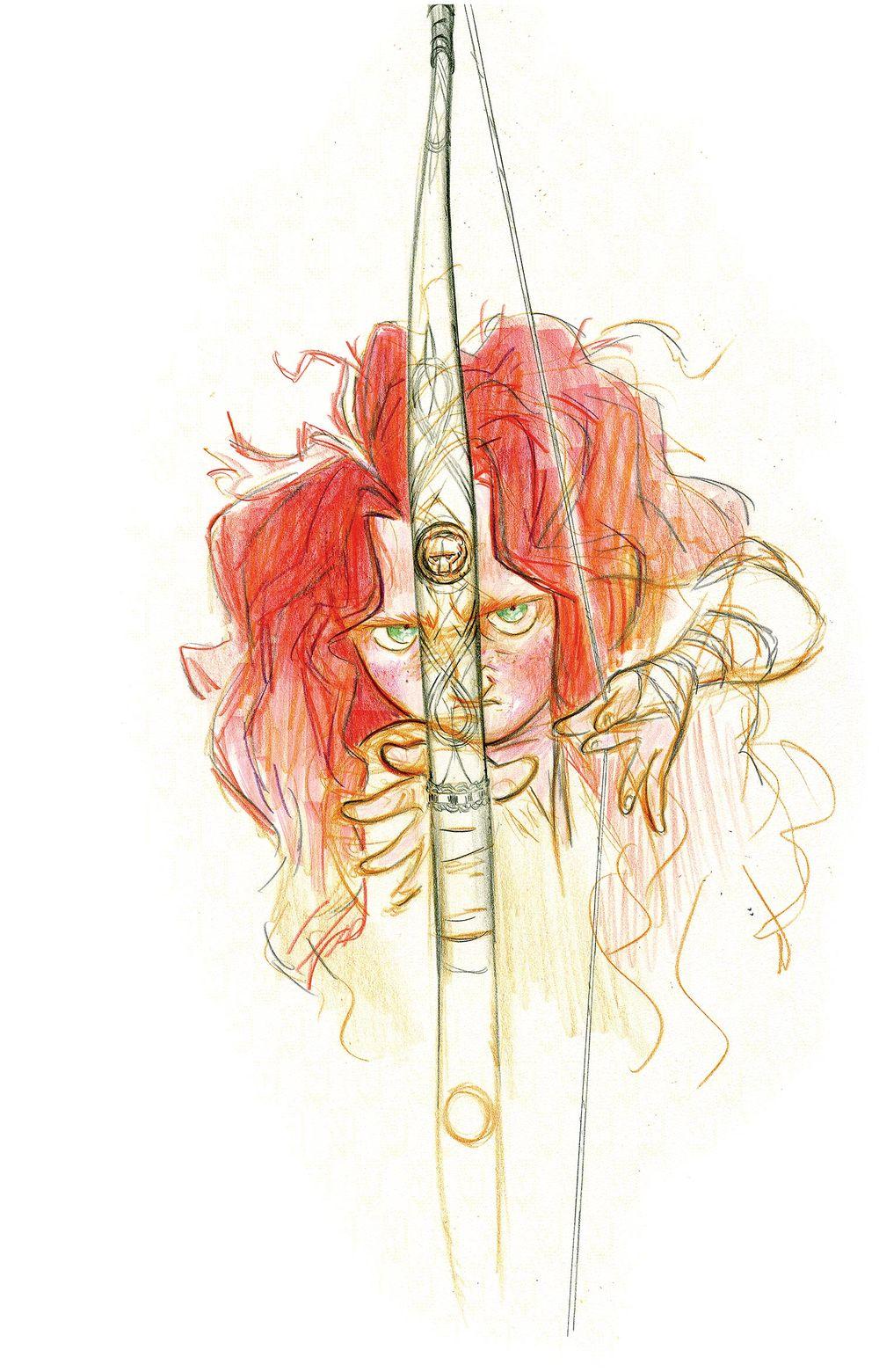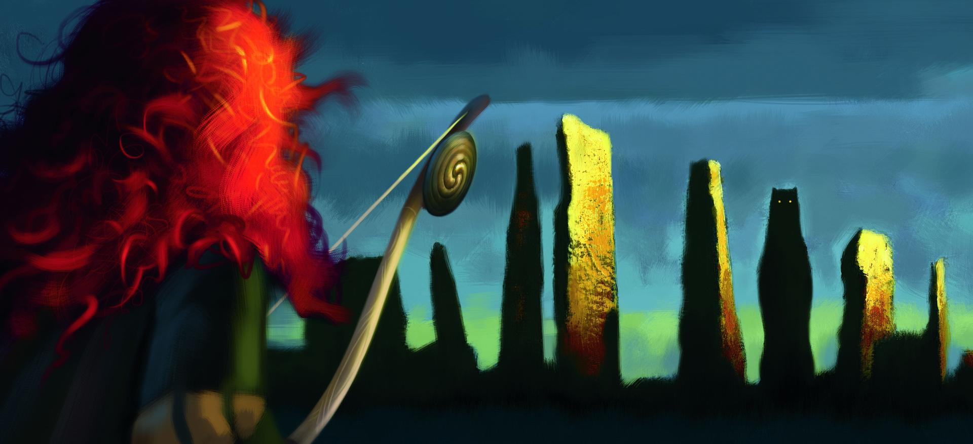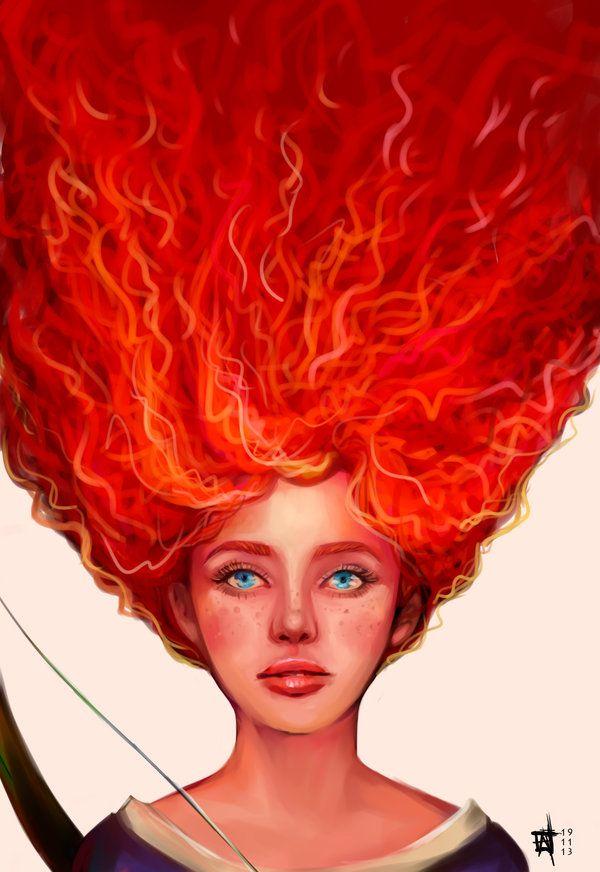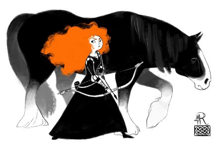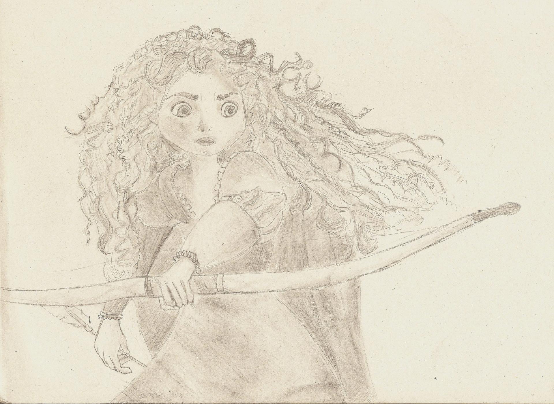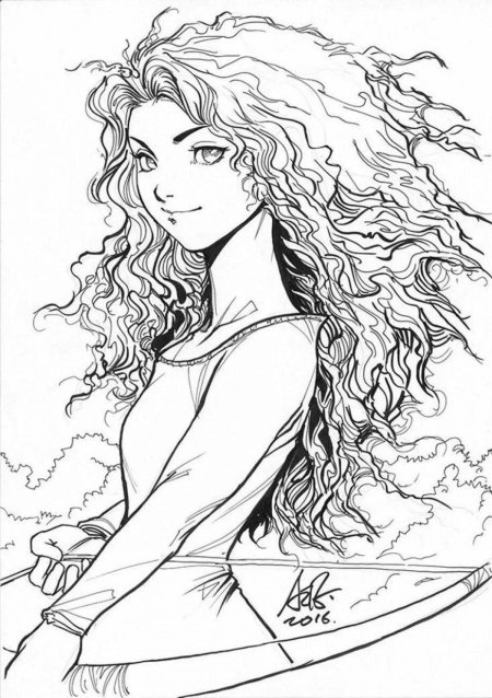 Мерида Храбрая предстает в этой иллюстрации как независимая и отважная принцесса. Ее образ сочетает женскую грацию с воинственным духом, создавая атмосферу приключений. Художник передал движение и решимость через позу и аксессуары. Композиция идеальна для тем феминизма, приключений и самопознания. Арт выполнен в динамичном стиле с природными мотивами. Мерида символизирует силу женской воли.