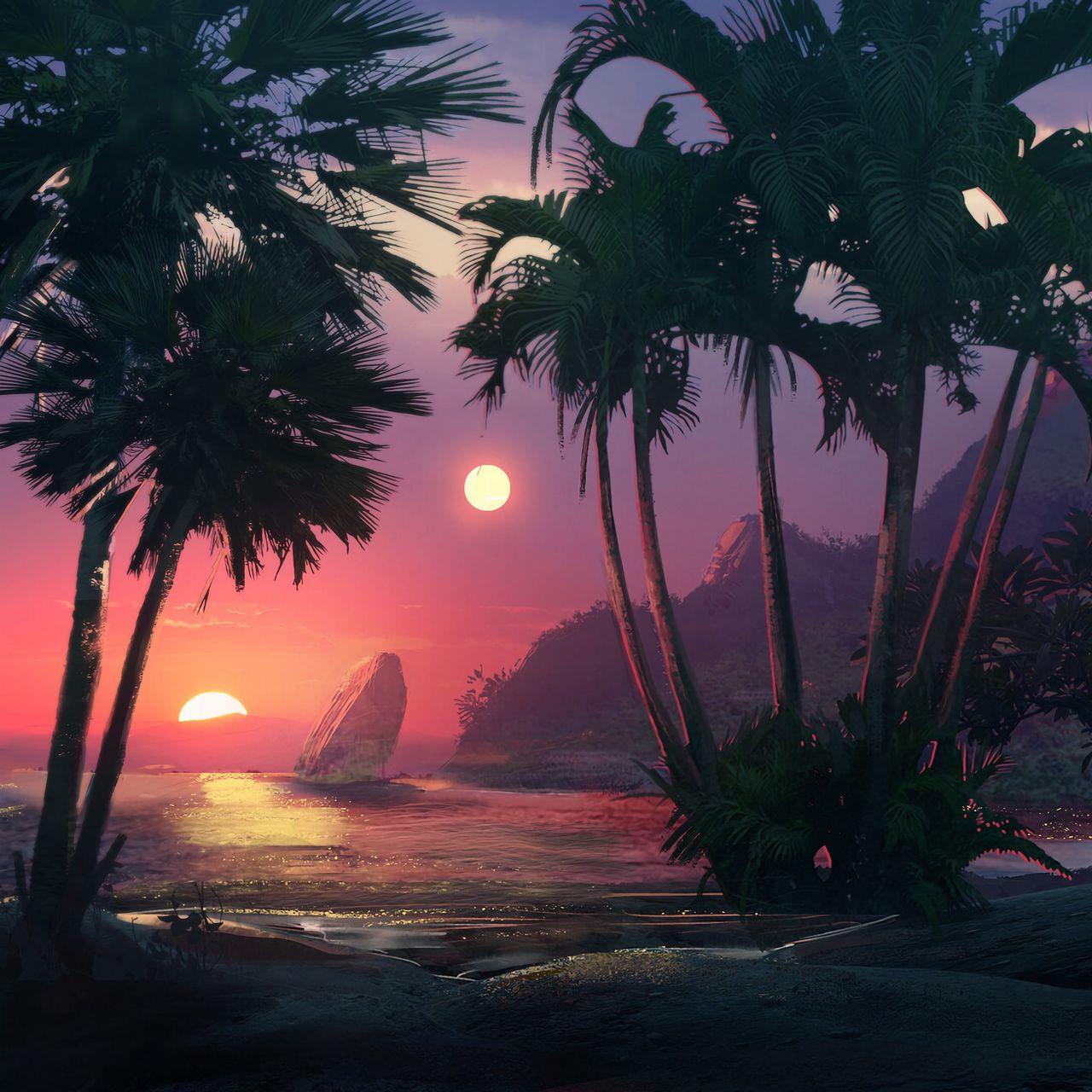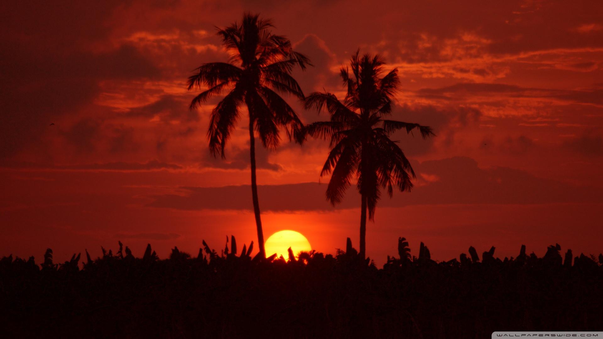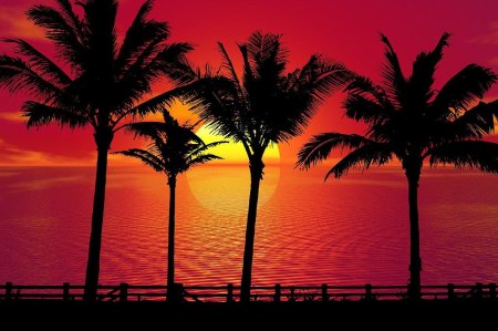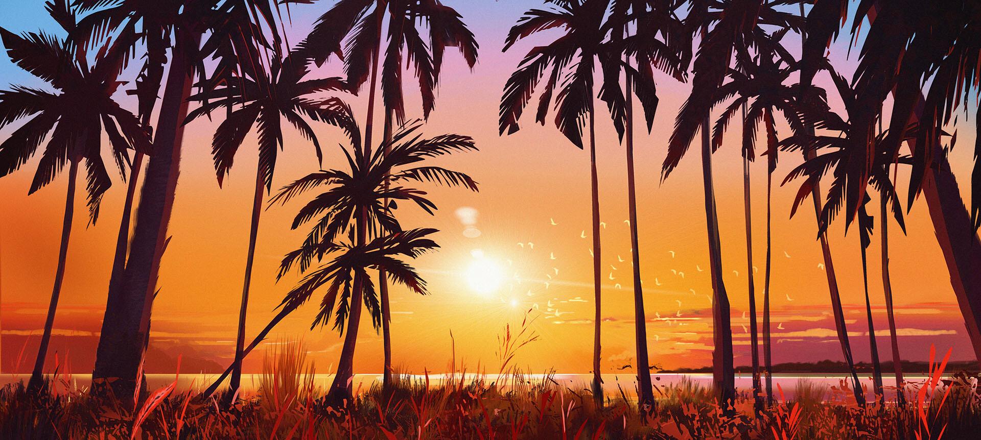Пальмы и закат