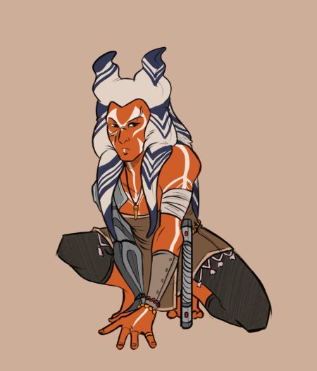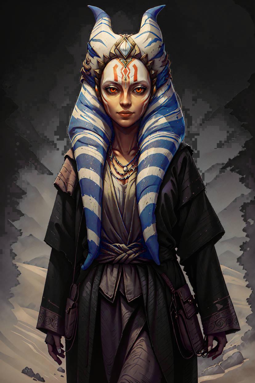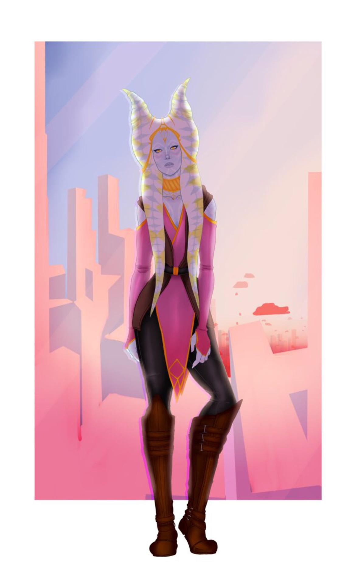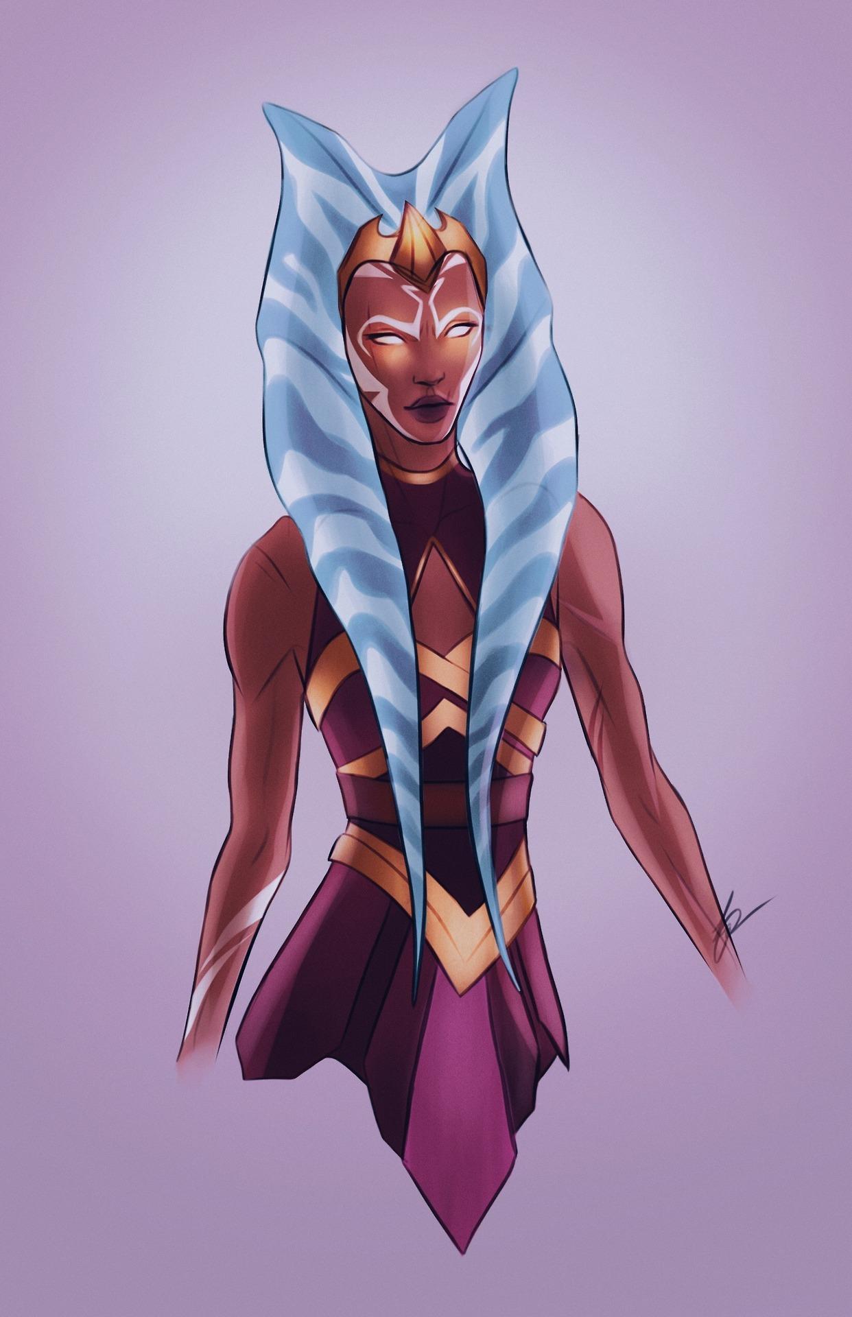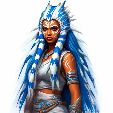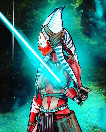 Тогрута предстает в этой иллюстрации как сильная и мудрая представительница инопланетной расы. Ее рога и раскраска создают атмосферу древней культуры и боевого духа. Художник передал характер через позу и аксессуары. Композиция идеальна для тем космоса, разнообразия и силы. Арт выполнен в фантастическом стиле с яркими цветами. Тогрута символизирует единство разных культур.