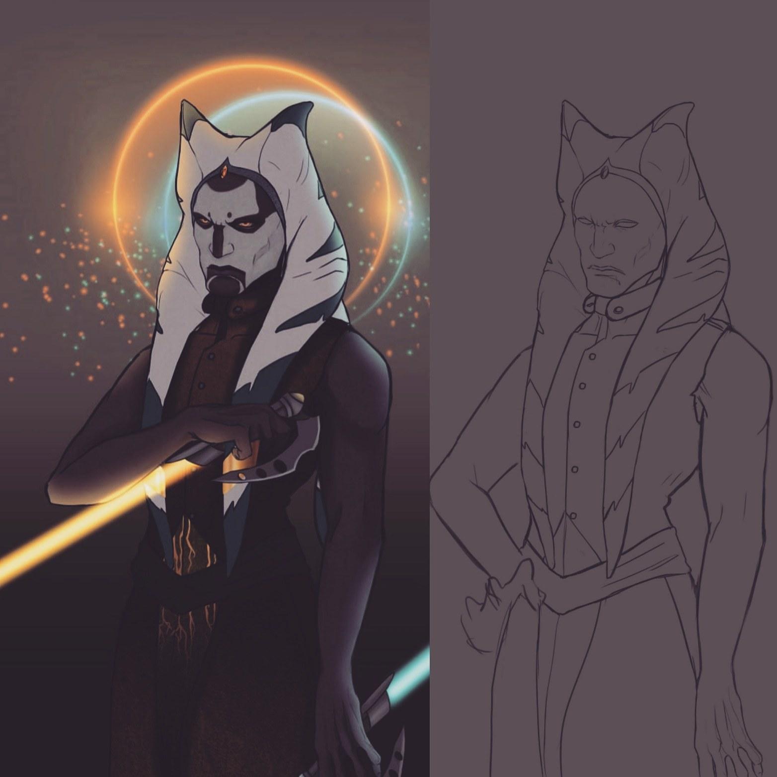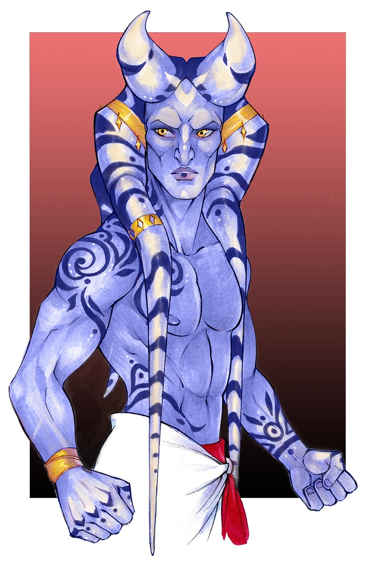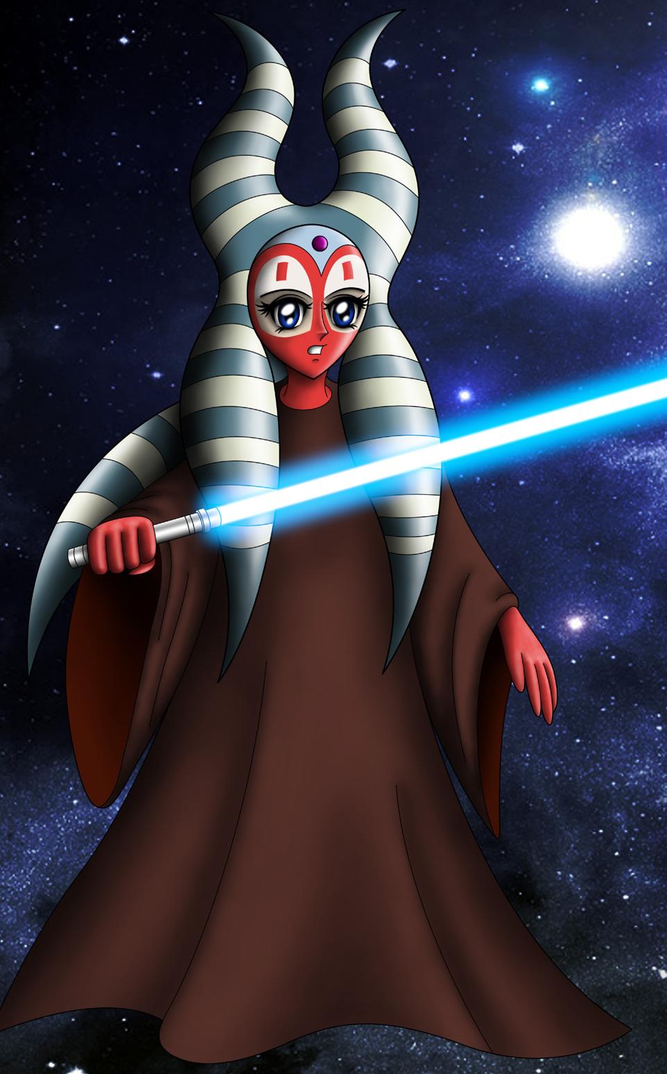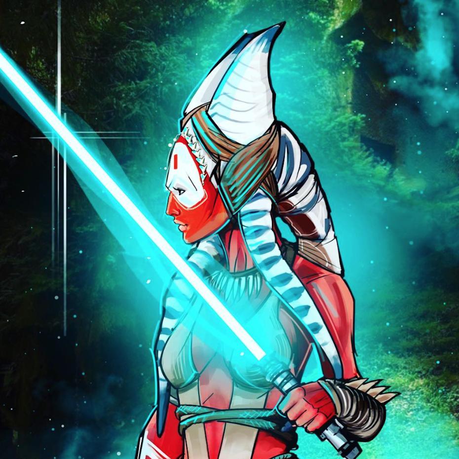 Тогрута предстает в этой иллюстрации как сильная и мудрая представительница инопланетной расы. Ее рога и раскраска создают атмосферу древней культуры и боевого духа. Художник передал характер через позу и аксессуары. Композиция идеальна для тем космоса, разнообразия и силы. Арт выполнен в фантастическом стиле с яркими цветами. Тогрута символизирует единство разных культур.