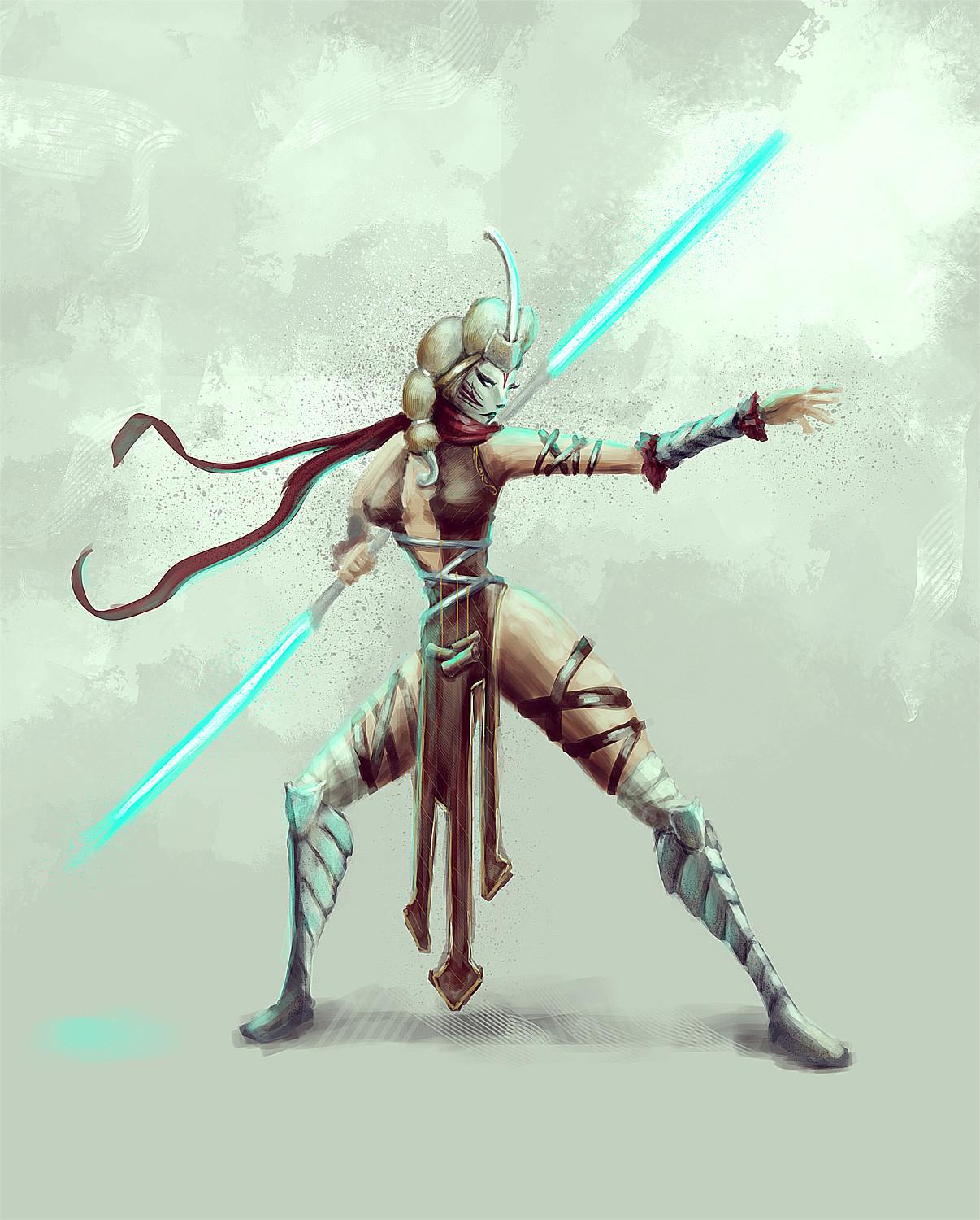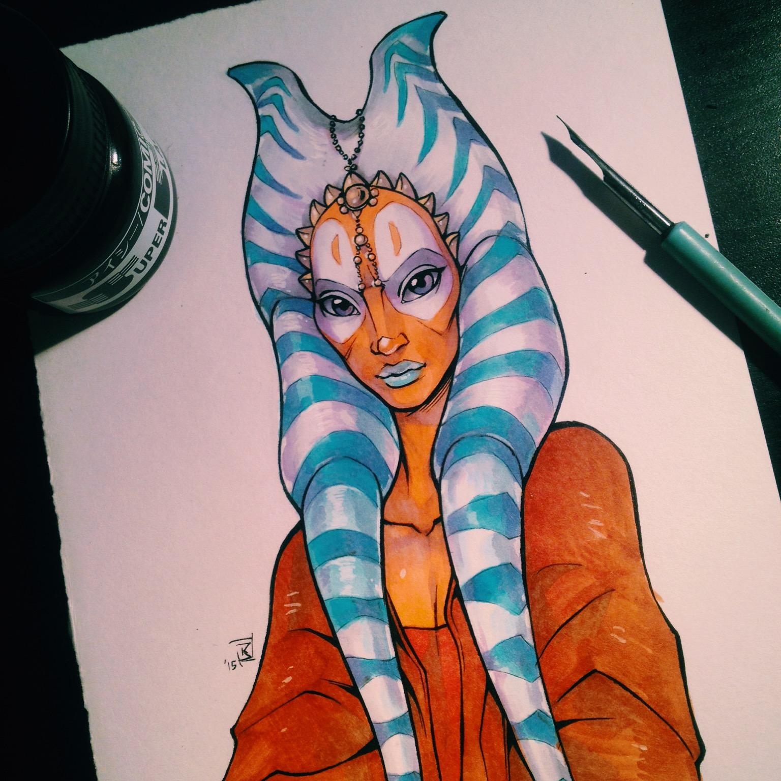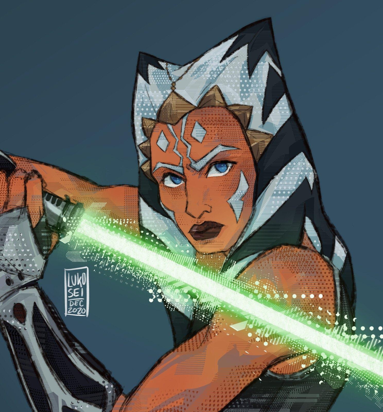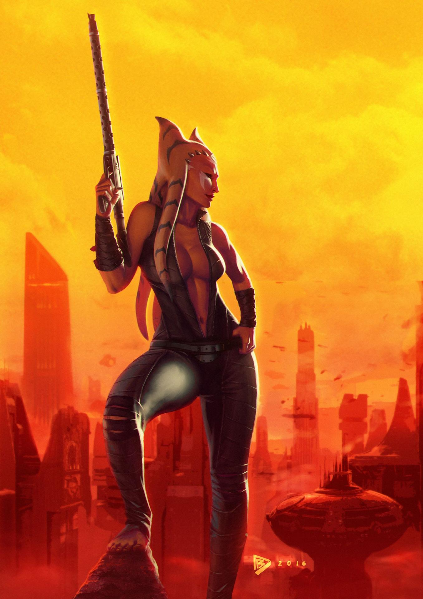 Тогрута предстает в этой иллюстрации как сильная и мудрая представительница инопланетной расы. Ее рога и раскраска создают атмосферу древней культуры и боевого духа. Художник передал характер через позу и аксессуары. Композиция идеальна для тем космоса, разнообразия и силы. Арт выполнен в фантастическом стиле с яркими цветами. Тогрута символизирует единство разных культур.