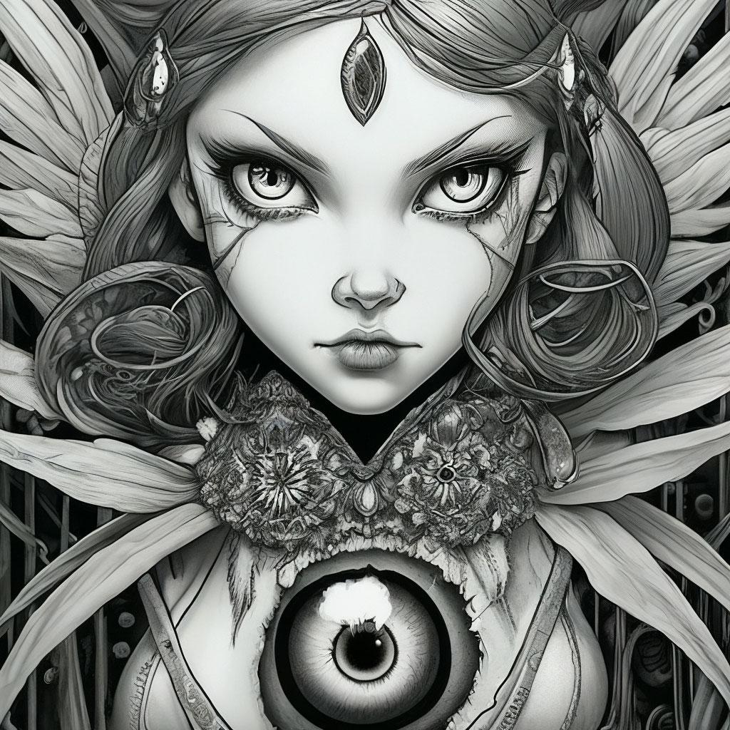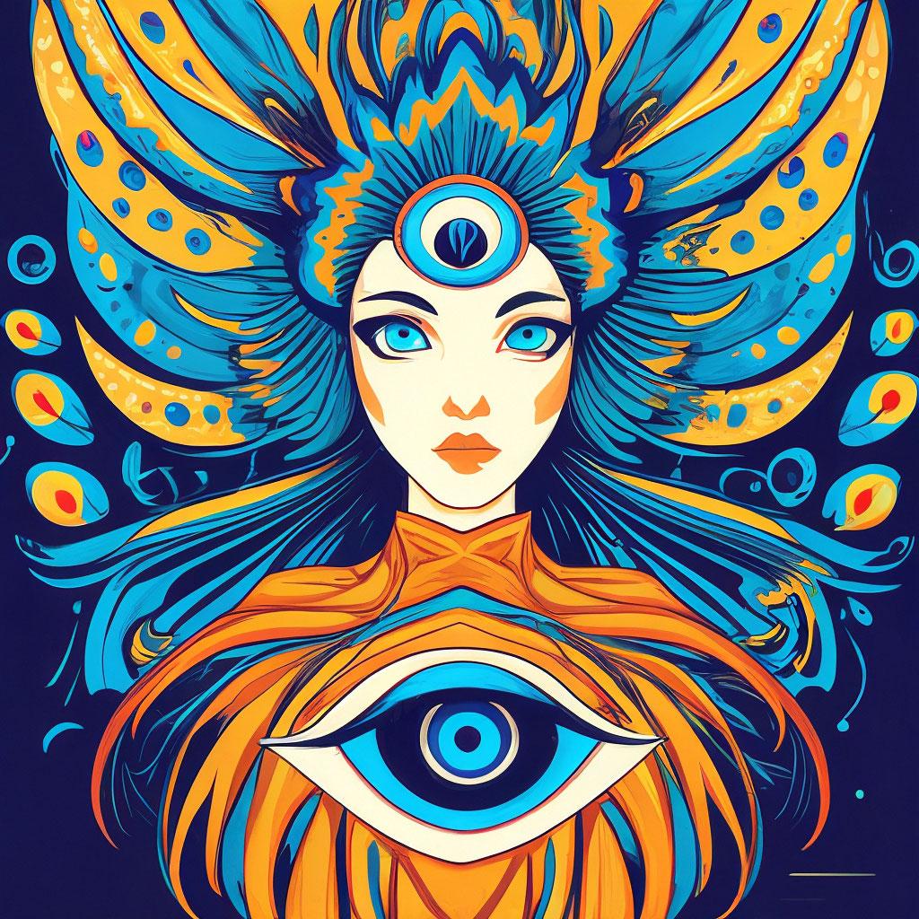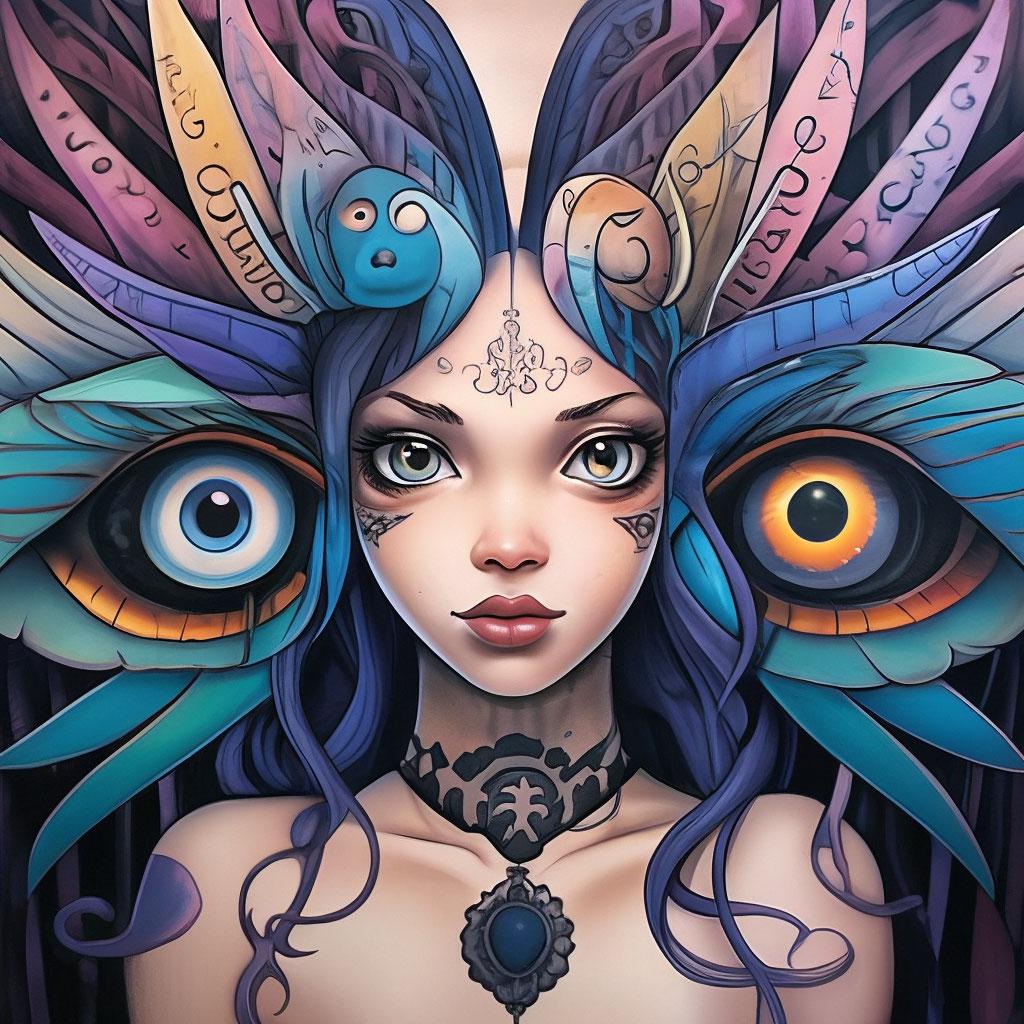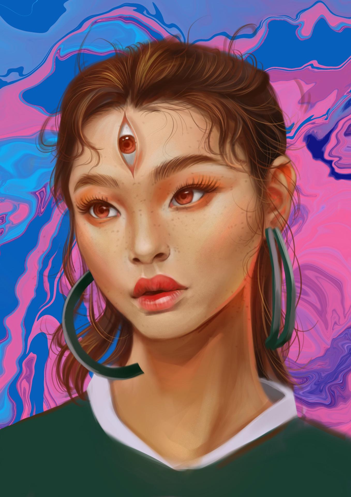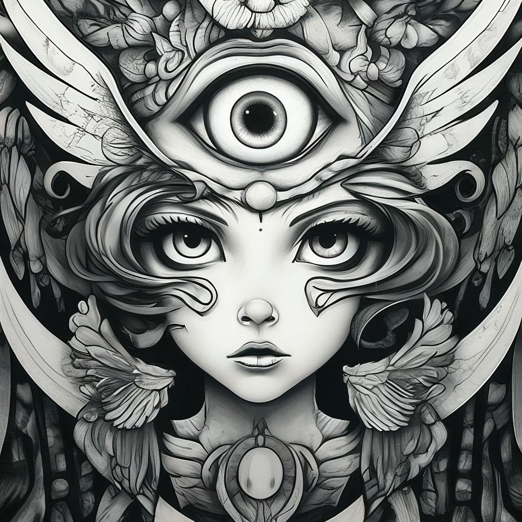 Девушка с тремя глазами в этой иллюстрации воплощает темы ясновидения и внутренней силы. Ее образ сочетает красоту с мистичностью, создавая атмосферу тайны. Художник акцентировал внимание на третьем глазе как символе мудрости. Композиция идеальна для тем мистики, самопознания и духовности. Арт выполнен в мистическом стиле с мягкими тонами. Девушка символизирует расширение сознания.
