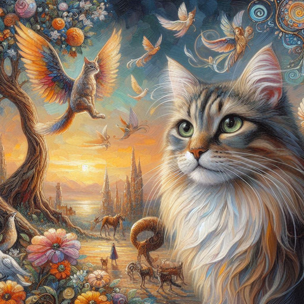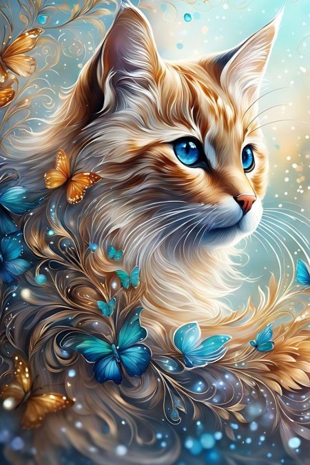 Кошка с крыльями бабочки предстает как очаровательное сочетание кошачьей грации и нежности бабочки в волшебных художественных воплощениях. Эти иллюстрации показывают милую кошачью мордочку с усиками, большими глазами и разноцветными крыльями бабочки на спине. Арты демонстрируют ее в различных позах - от любопытного исследования цветка до полета над лугом. Фотографии передают атмосферу детской фантазии с ее магией и невинностью. Картинки варьируются от нежных акварельных работ до ярких цифровых иллюстраций. Тематические элементы включают мотивы трансформации, нежности, природы и детского восторга. Каждый арт раскрывает уникальную грань этого гибрида - от игривого создания до волшебного компаньона. Эти изображения вдохновляют на размышления о красоте разнообразия, силе воображения и том, как простые вещи могут стать волшебными.