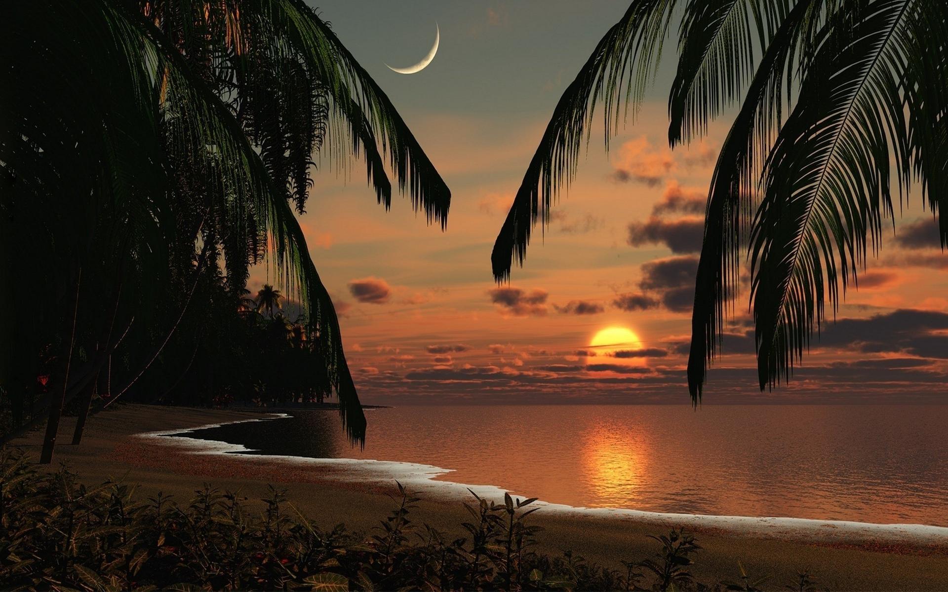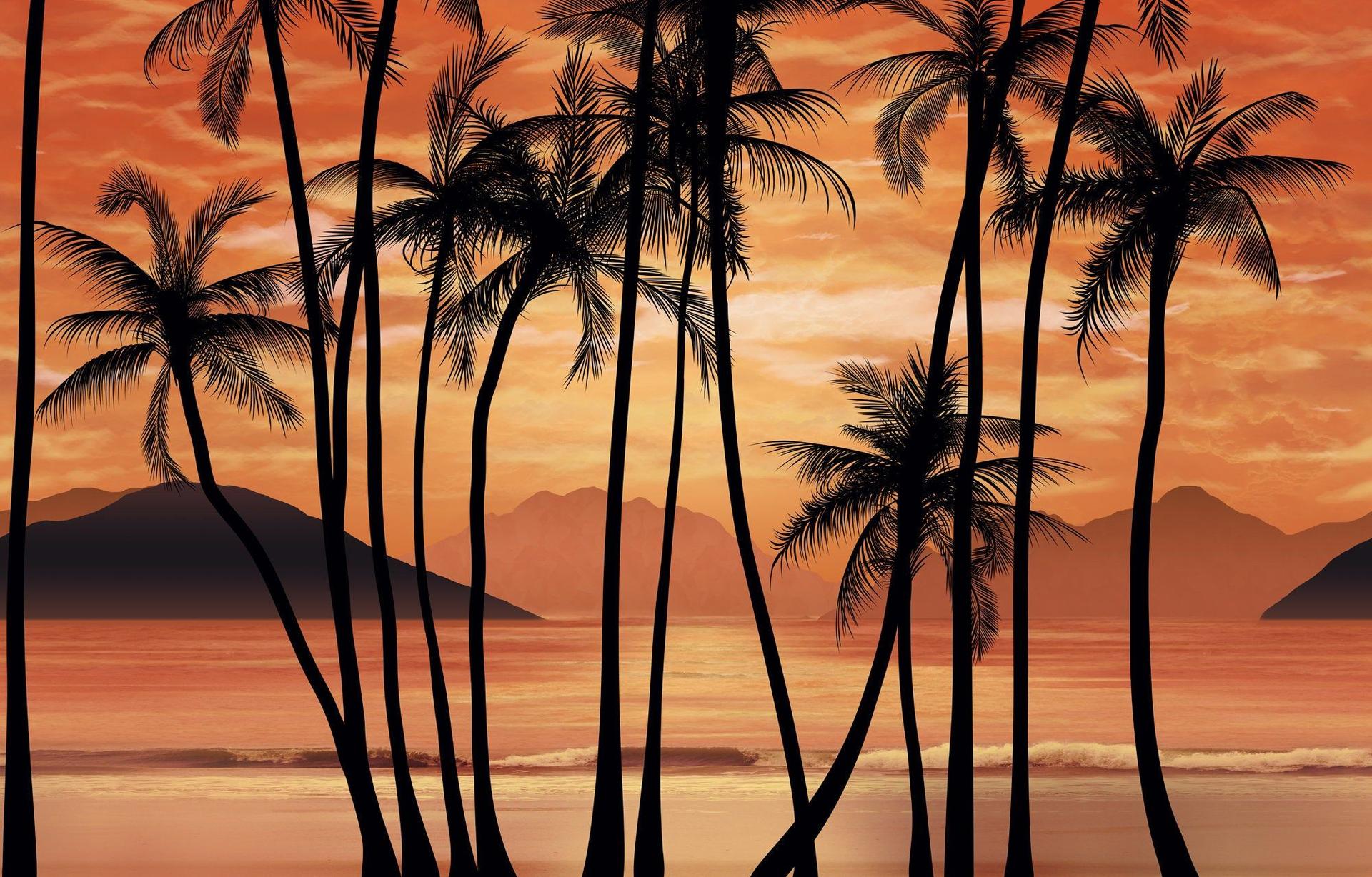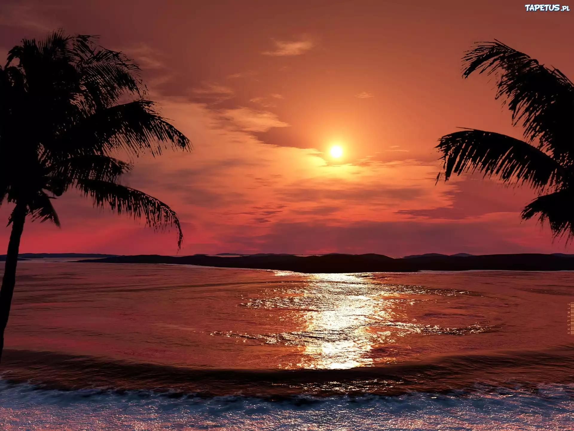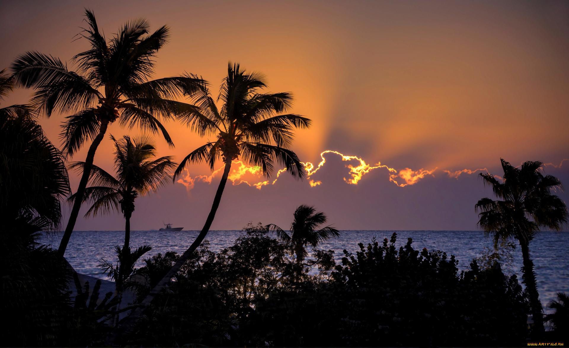Море пальмы закат