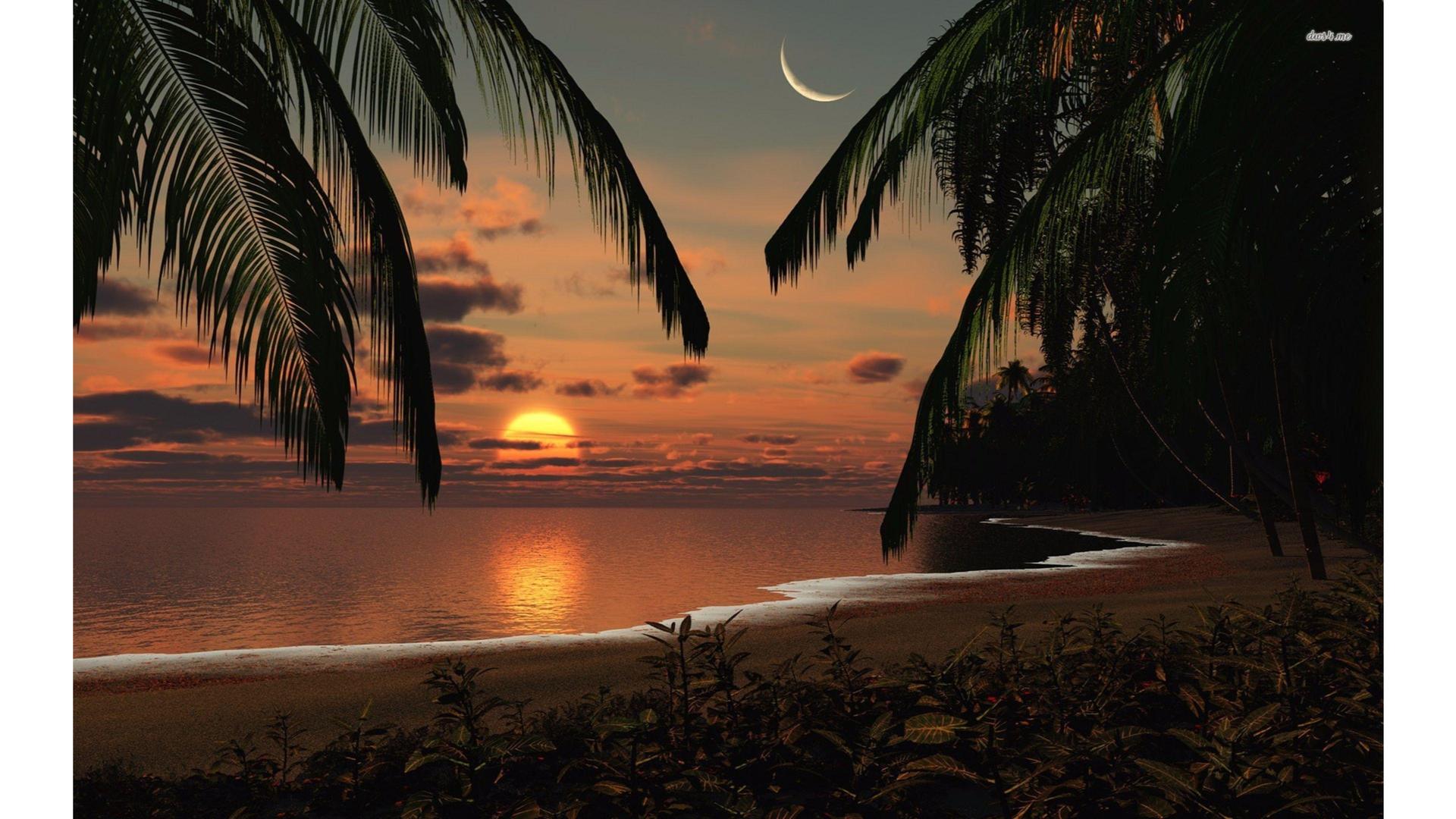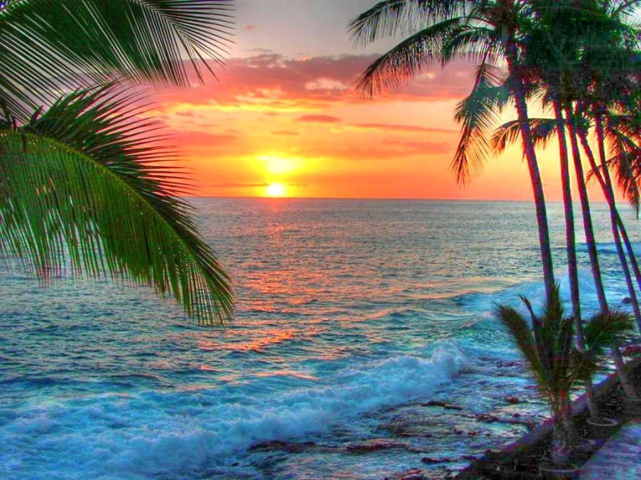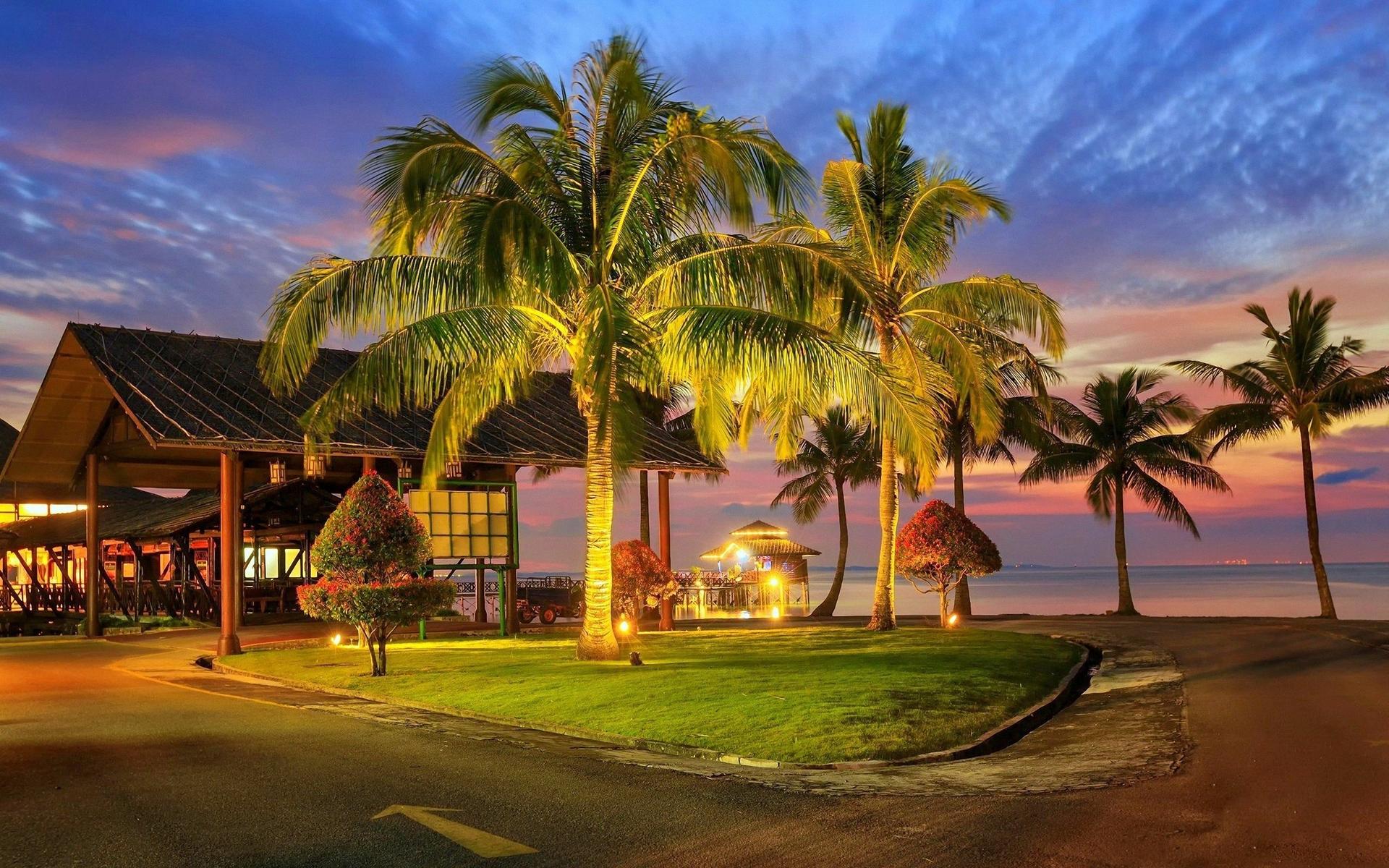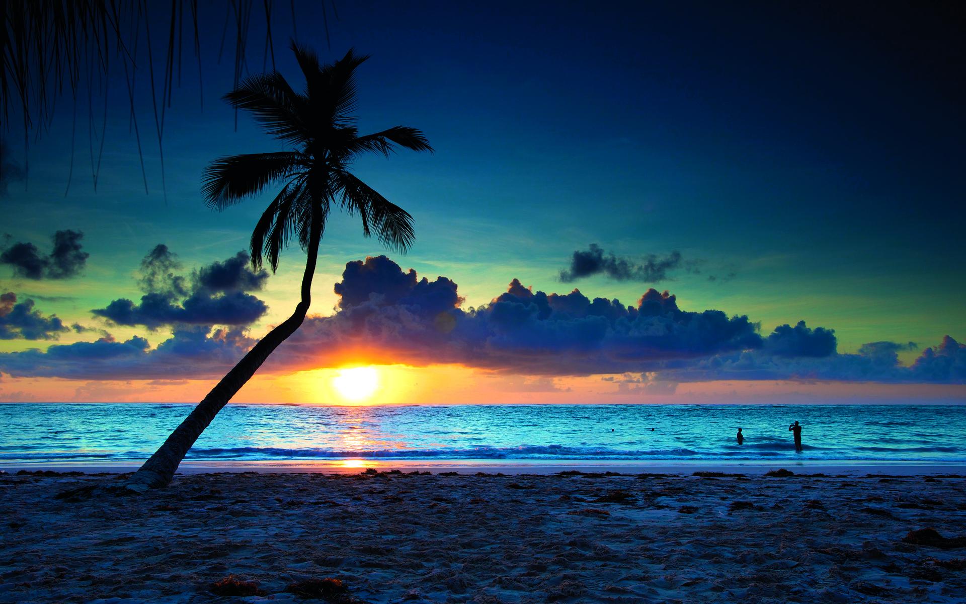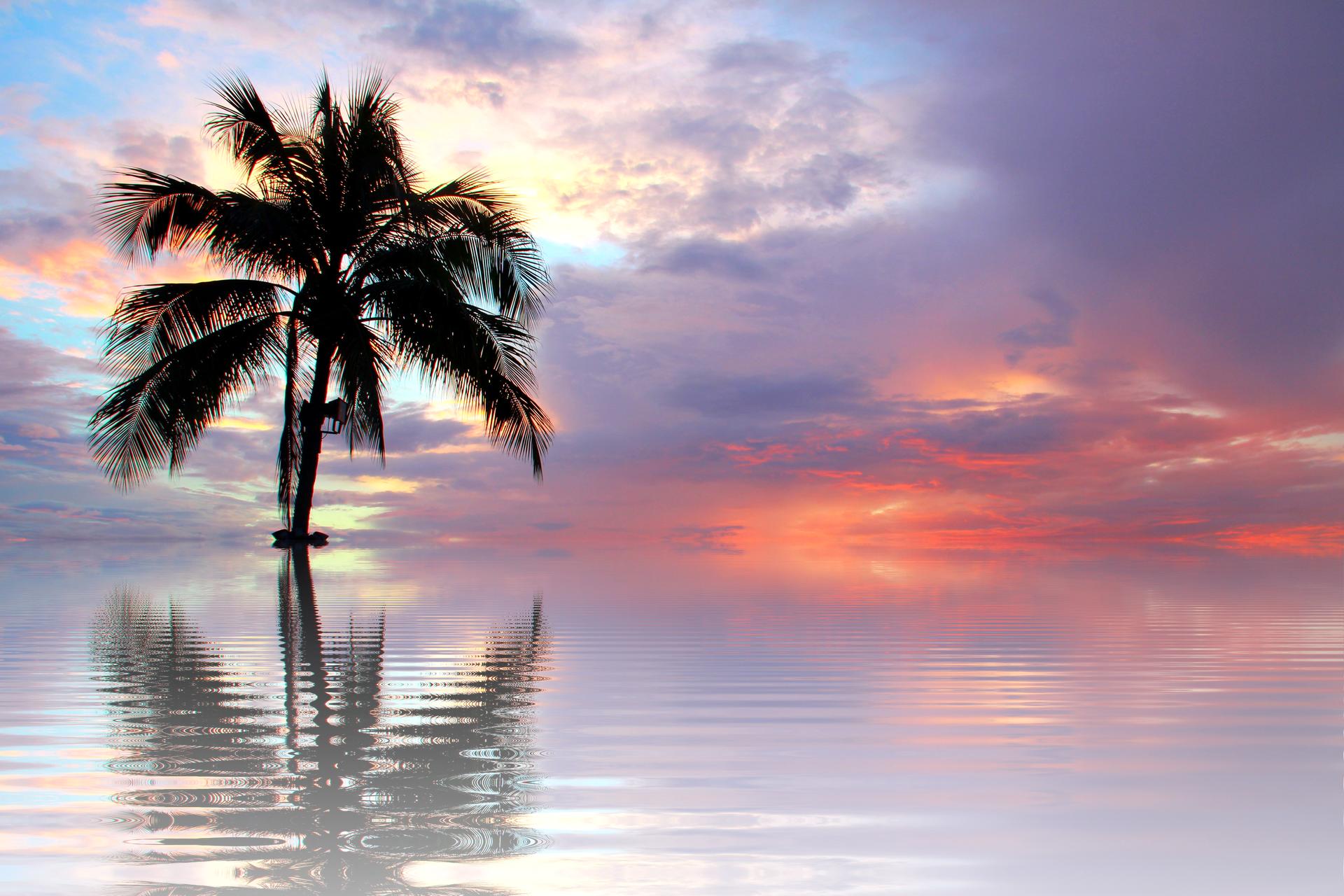 Море пальмы закат