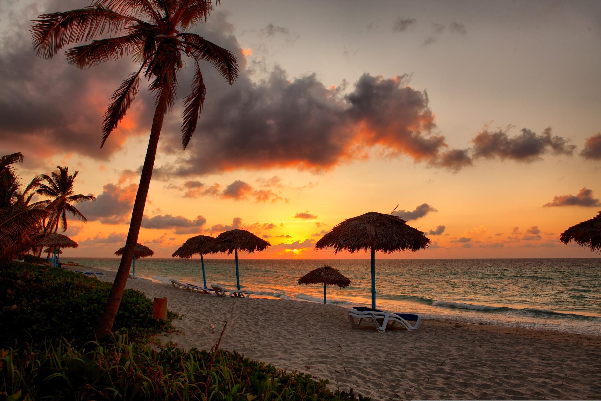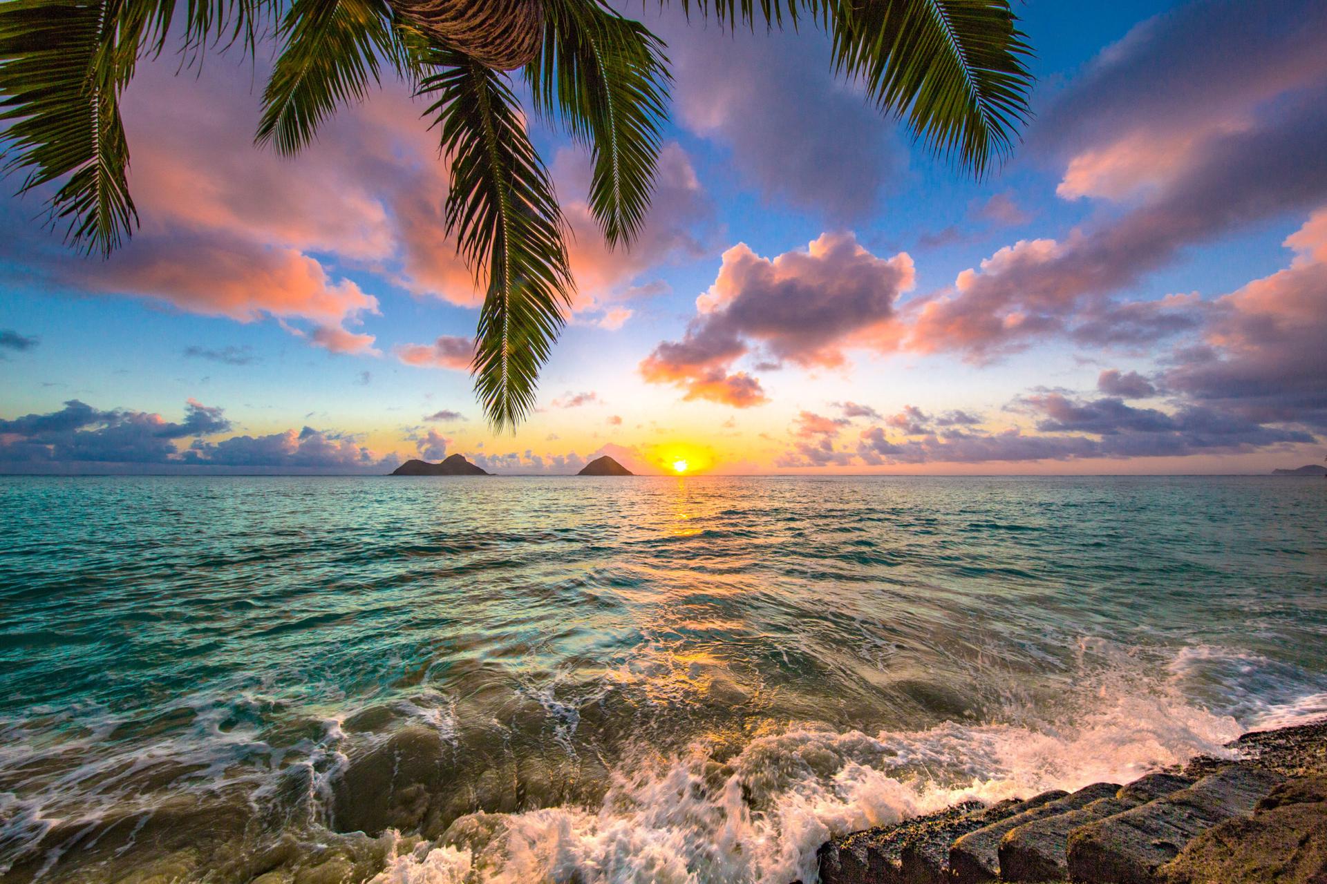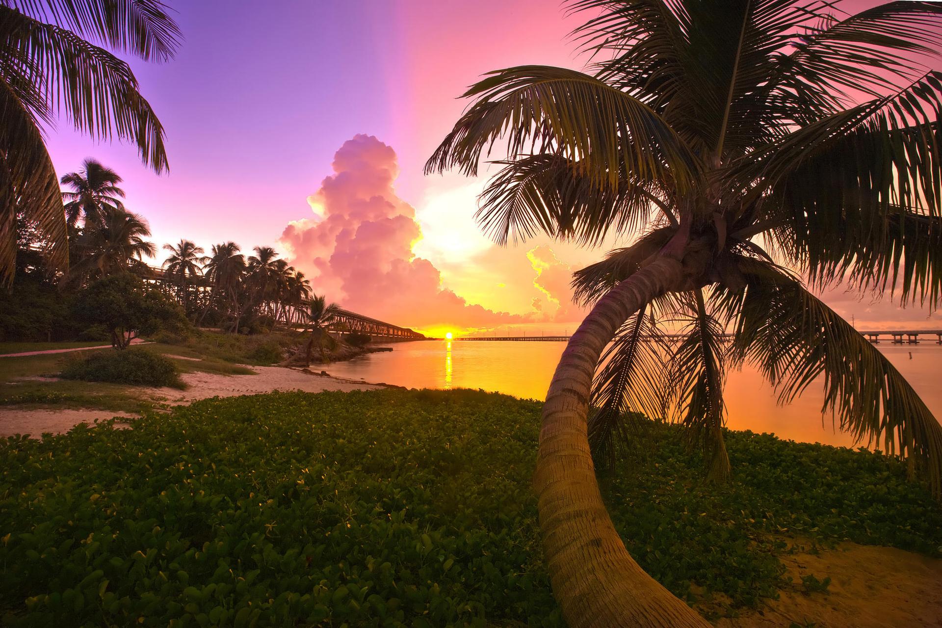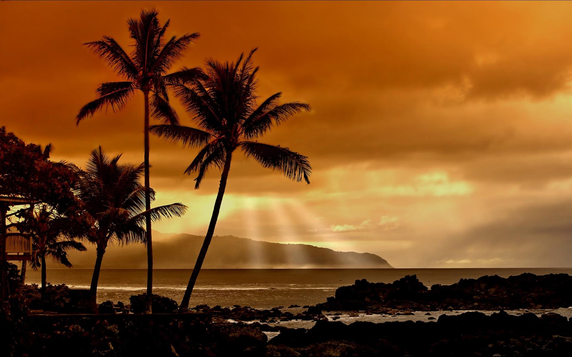 Море пальмы закат