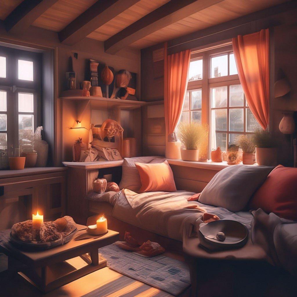 Уютный декор предстает как искусство создания атмосферы домашнего тепла и психологического комфорта в разнообразных художественных воплощениях. Эти иллюстрации показывают различные элементы интерьера - мягкие пледы, горящие камины, удобные кресла и теплый свет ламп, создающие ощущение защищенности и покоя. Арты демонстрируют гармоничное сочетание текстур, цветов и форм, способствующих расслаблению и восстановлению сил. Фотографии передают атмосферу семейного счастья, тихих вечеров и моментов отдыха после тяжелого дня. Картинки варьируются от минималистичных композиций до детализированных интерьерных сцен. Тематические элементы включают мотивы комфорта, безопасности, восстановления и семейных ценностей. Каждый арт раскрывает уникальную грань домашнего уюта - от уединенного чтения до семейных посиделок. Эти изображения вдохновляют на размышления о важности личного пространства, искусстве создания атмосферы и том, как окружение влияет на наше эмоциональное состояние.
