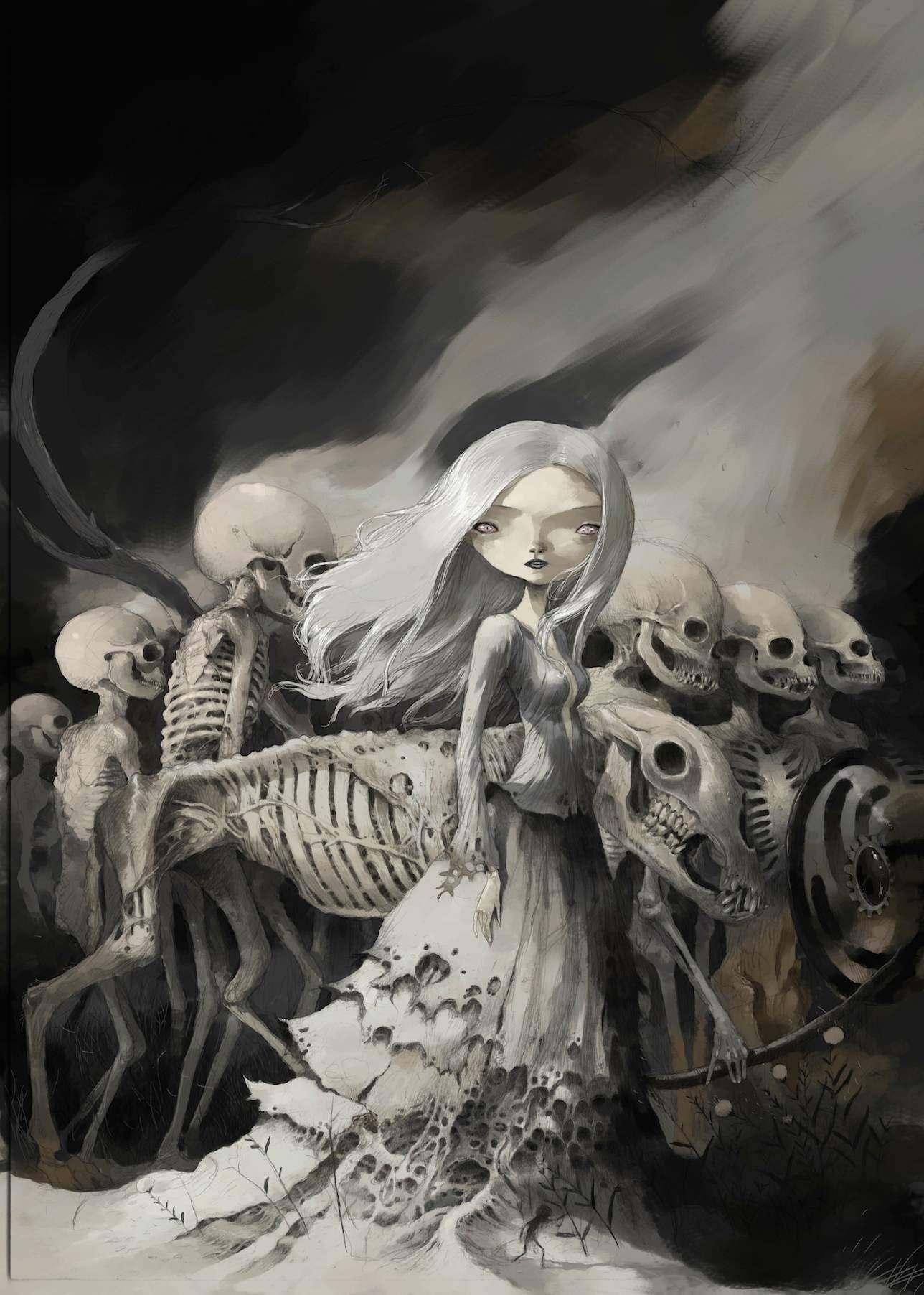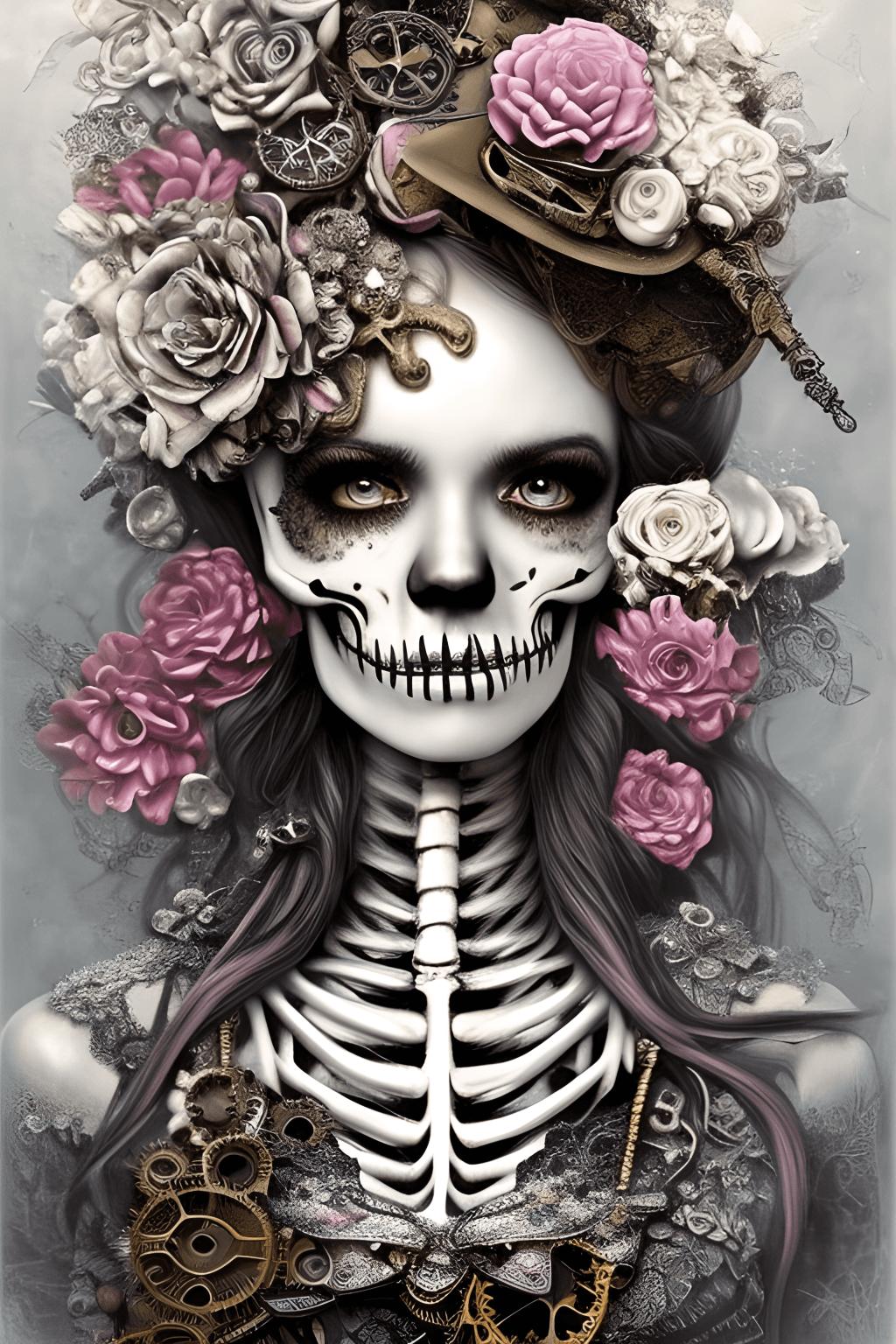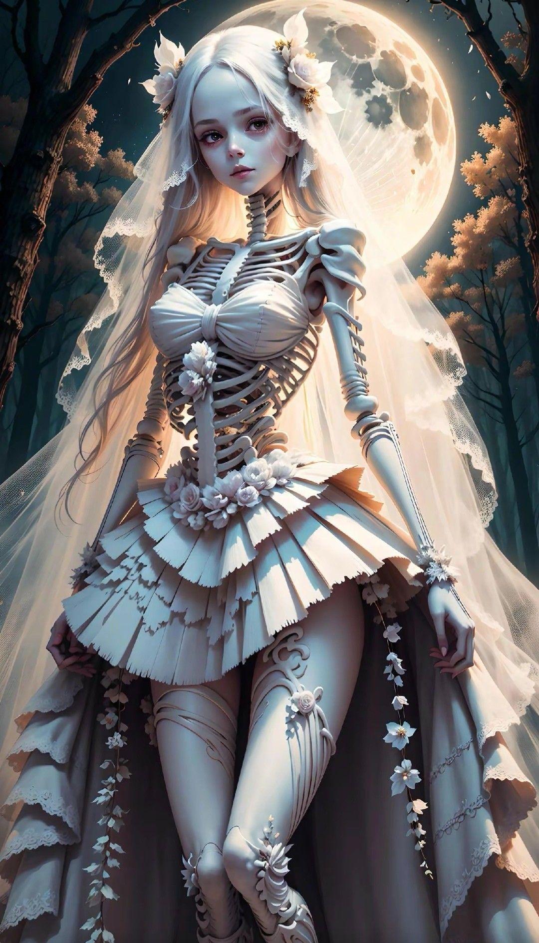 Образ девушки-скелета воплощает в себе вечную тему слияния жизни и смерти, красоты и тления. В этих иллюстрациях мы видим нежные женские черты, переплетенные с мотивами смерти - черепами, цветами и символами бренности. Арты выполнены в различных стилях: от романтических портретов в стиле викторианской эпохи до современных концептуальных работ в жанре dark art. Фотографии передают хрупкость человеческого бытия, где нежная кожа соседствует с белыми костями, а живые цветы растут из пустых глазниц. Картинки часто включают символы времени - песочные часы, увядшие розы и паутину, подчеркивая неизбежность перехода. Тематические элементы варьируются от готических мотивов до сюрреалистических композиций, где девушка-скелет взаимодействует с живыми существами. Эти изображения вдохновляют на философские размышления о цикле жизни, вечной молодости и неизбежности конца.
