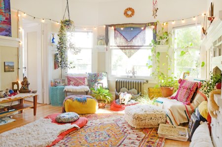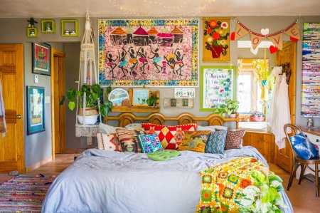 Яркая коллекция фотографий комнаты в стиле хиппи, где каждый элемент интерьера дышит атмосферой 60-70-х годов. От пестрых ковров и макраме до плакатов с психоделическими узорами - все создает ощущение свободы и креативности. Фотографии сделаны с разных ракурсов: общие планы, детали интерьера, предметы декора. Особое внимание уделено цветовой палитре - яркие, насыщенные тона, характерные для хиппи-культуры. Эти изображения передают дух эпохи мира и любви. Коллекция станет отличным источником вдохновения для дизайнеров и любителей винтажного стиля.