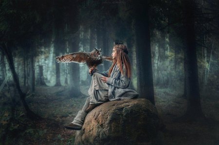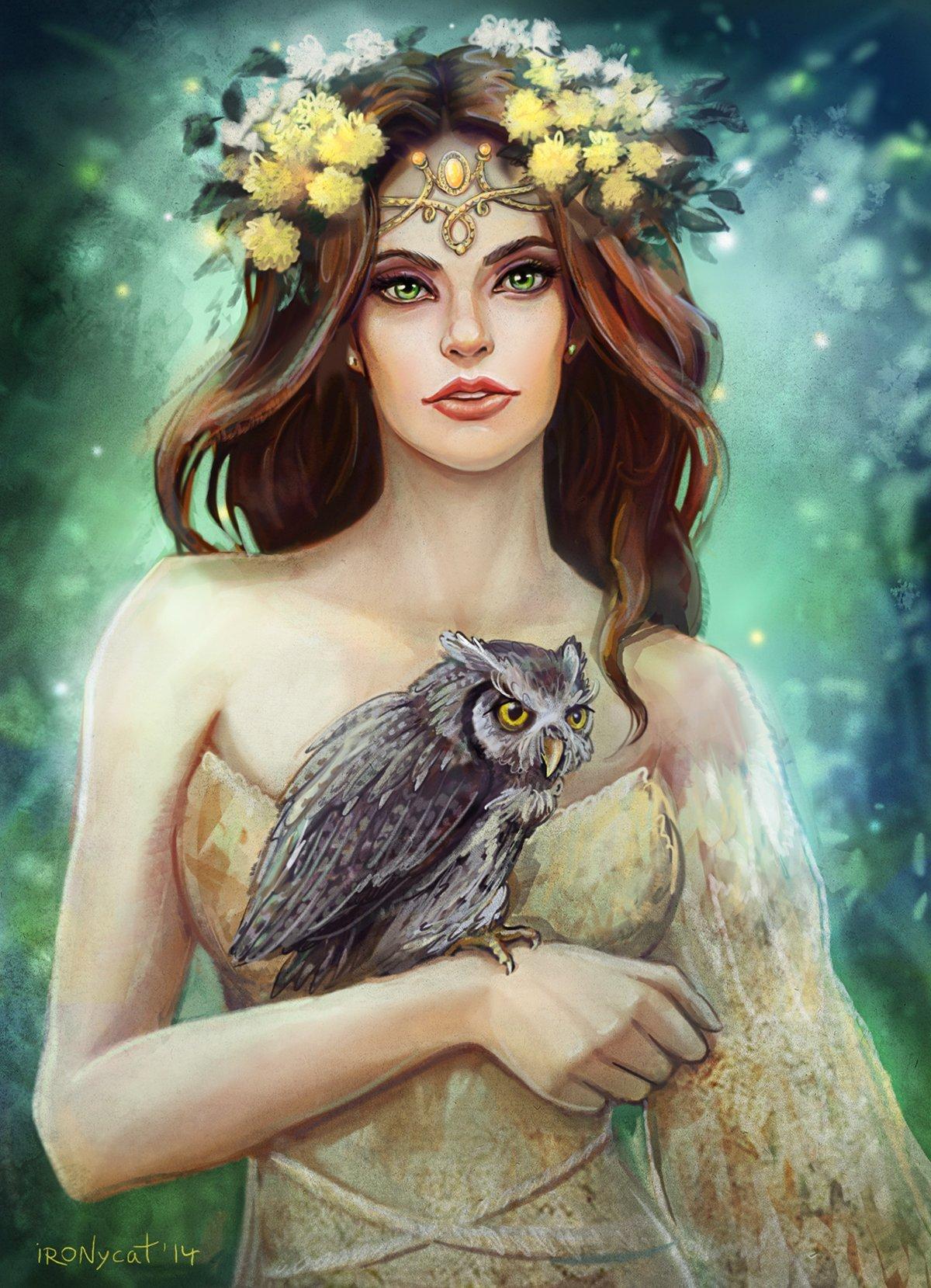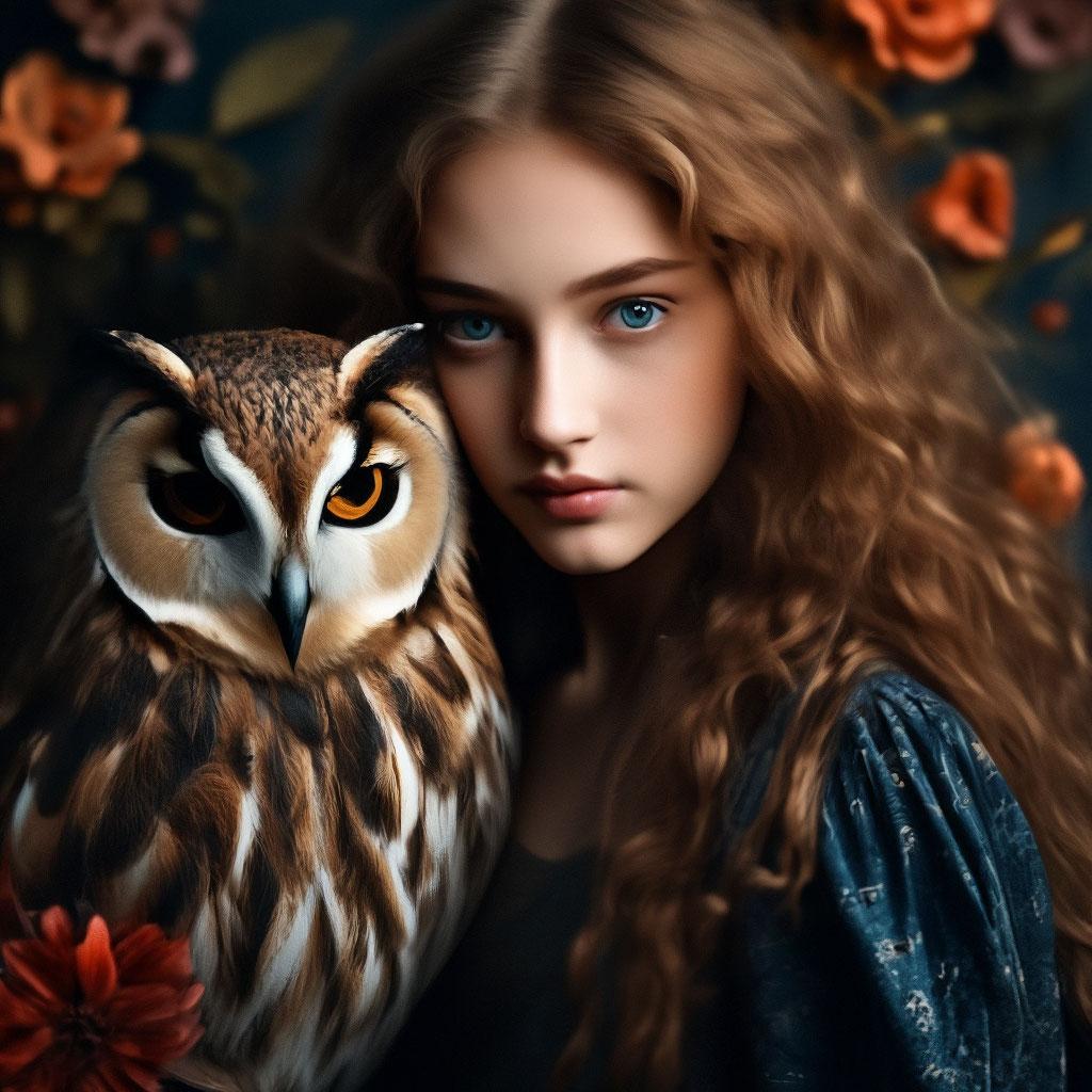 Девушка с совой фэнтези