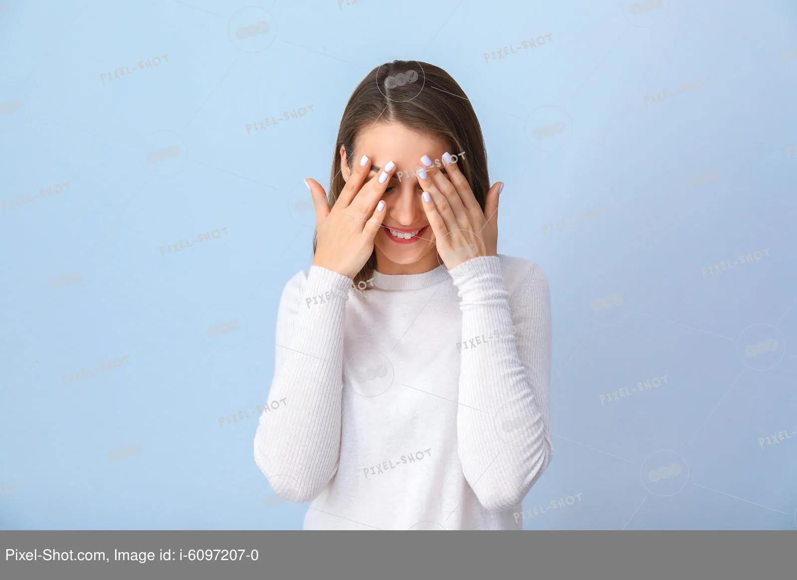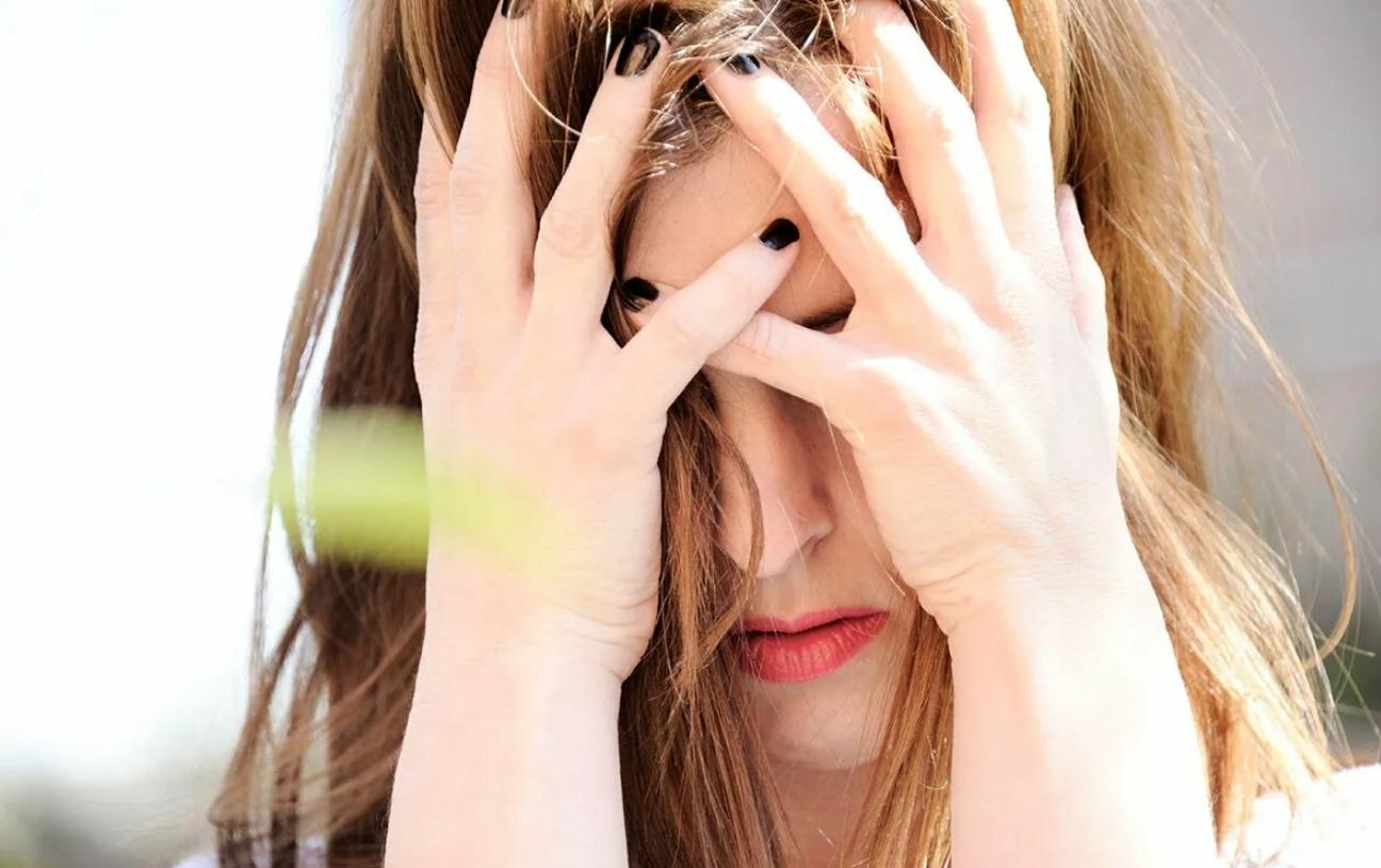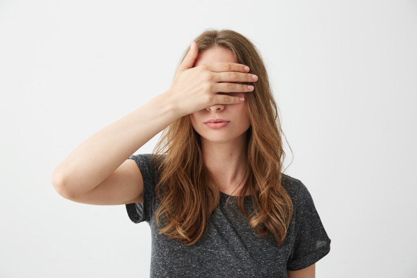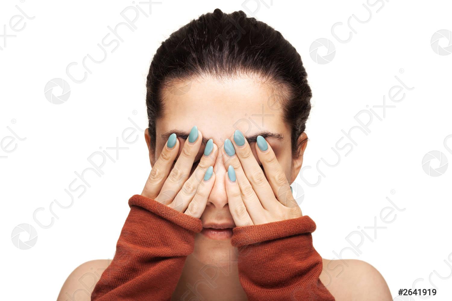 Девушка закрыла глаза Девушка прикрывает лицо Девушка закрыла глаза Закрыть глаза руками Портретная фотография Девушки