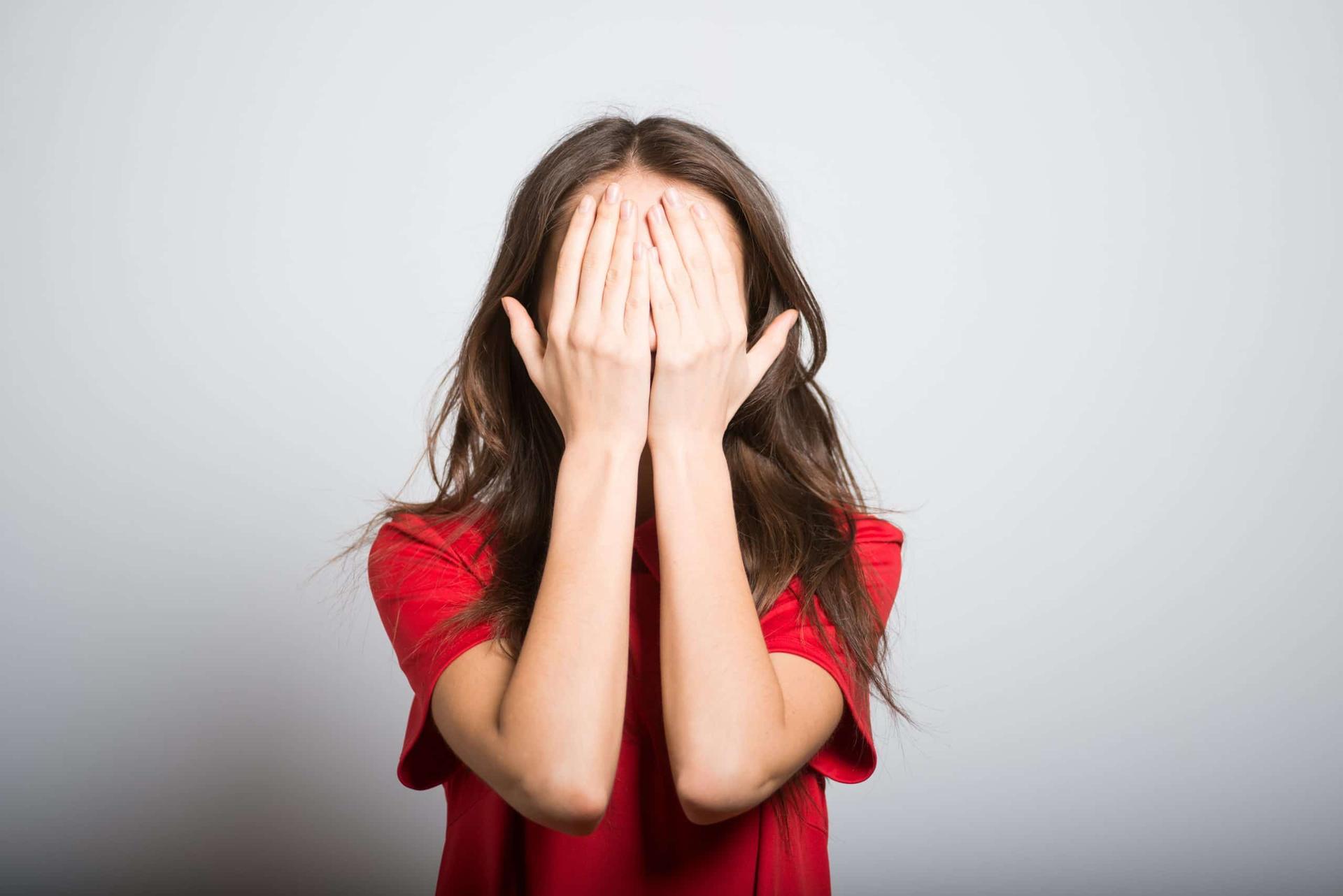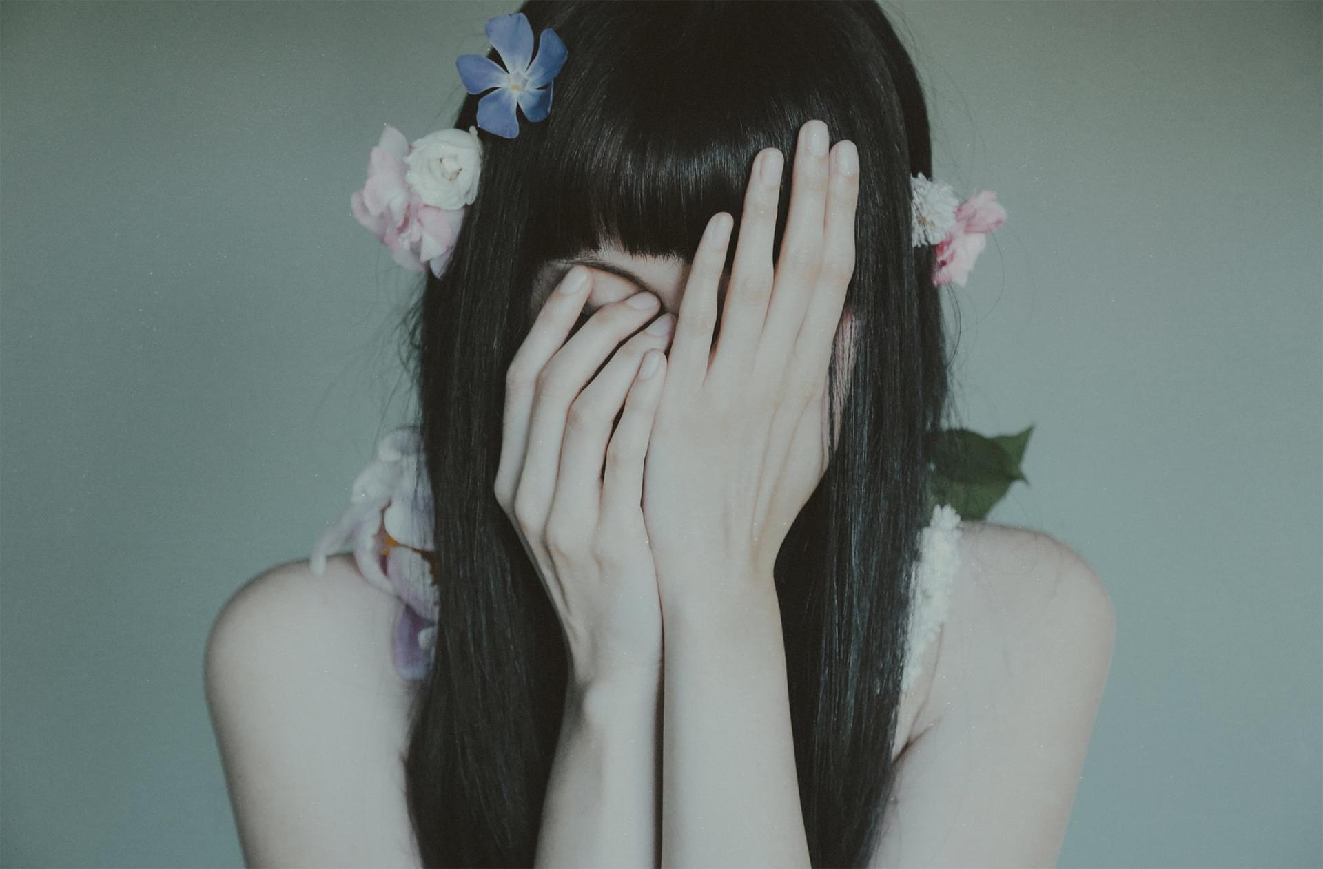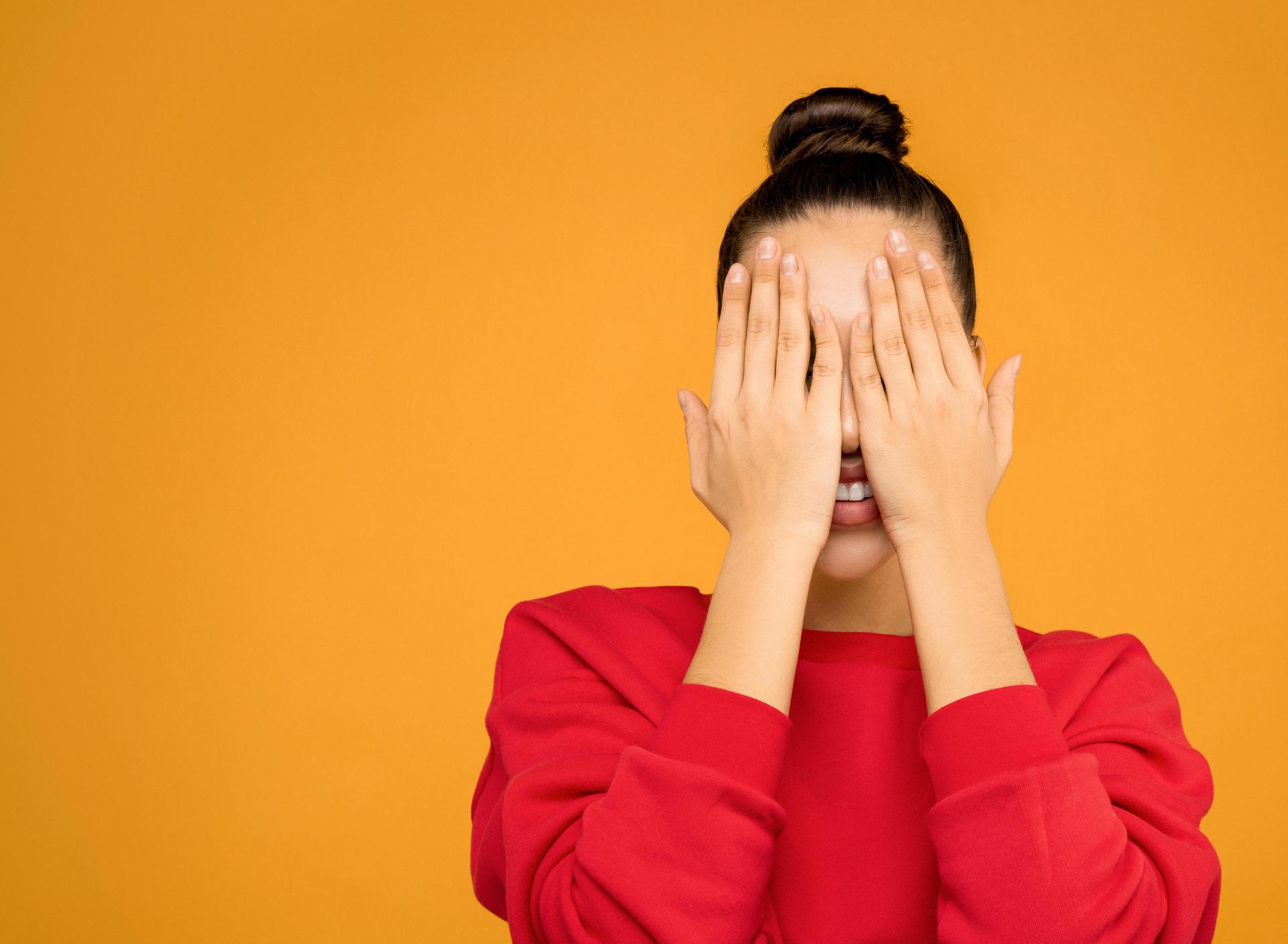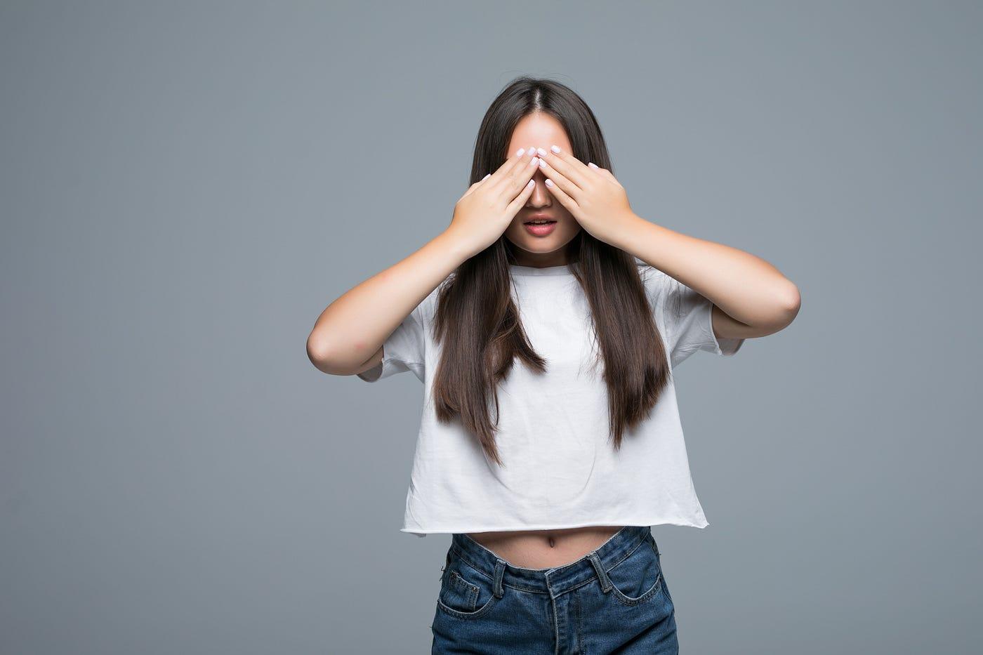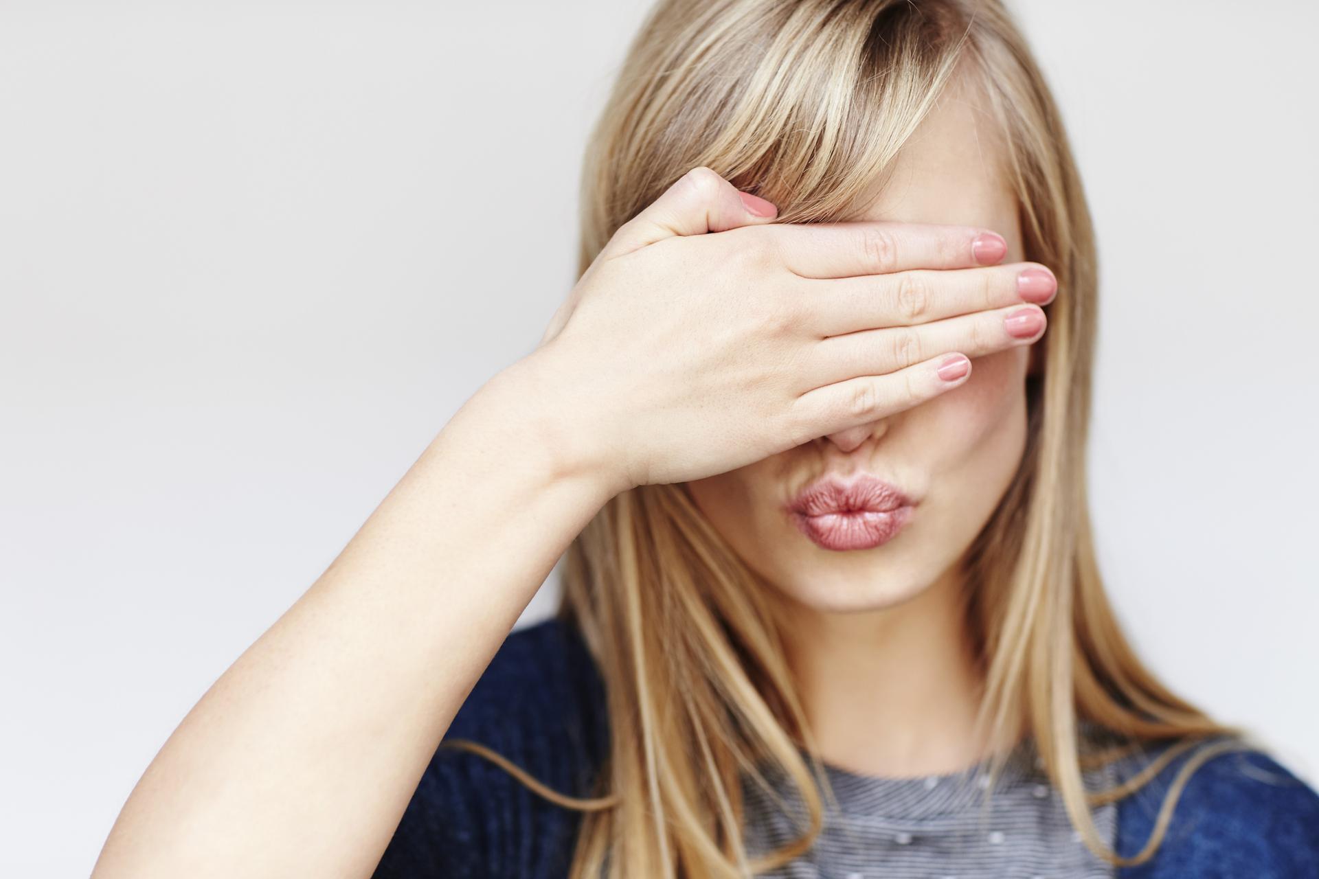 Девушка закрыла глаза Девушка прикрывает лицо Девушка закрыла глаза Закрыть глаза руками Портретная фотография Девушки