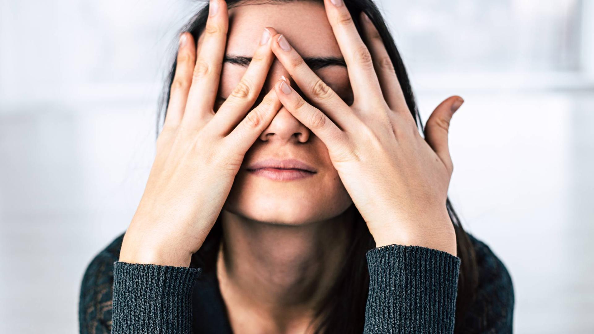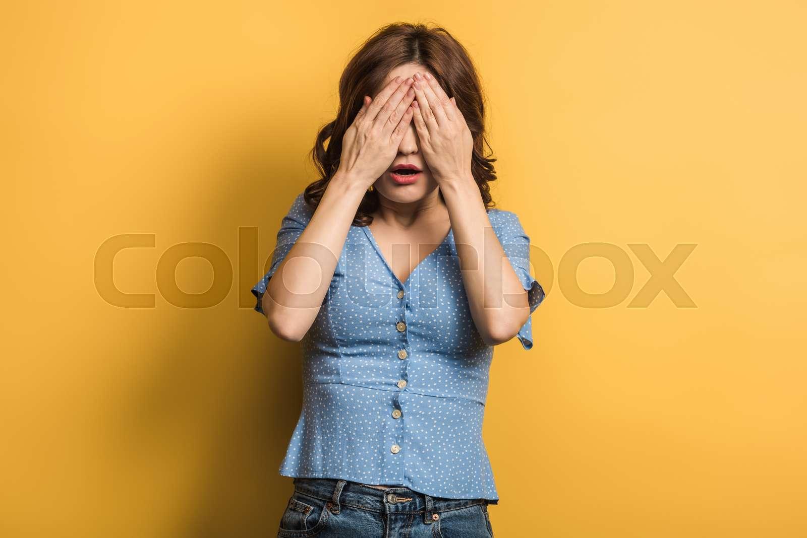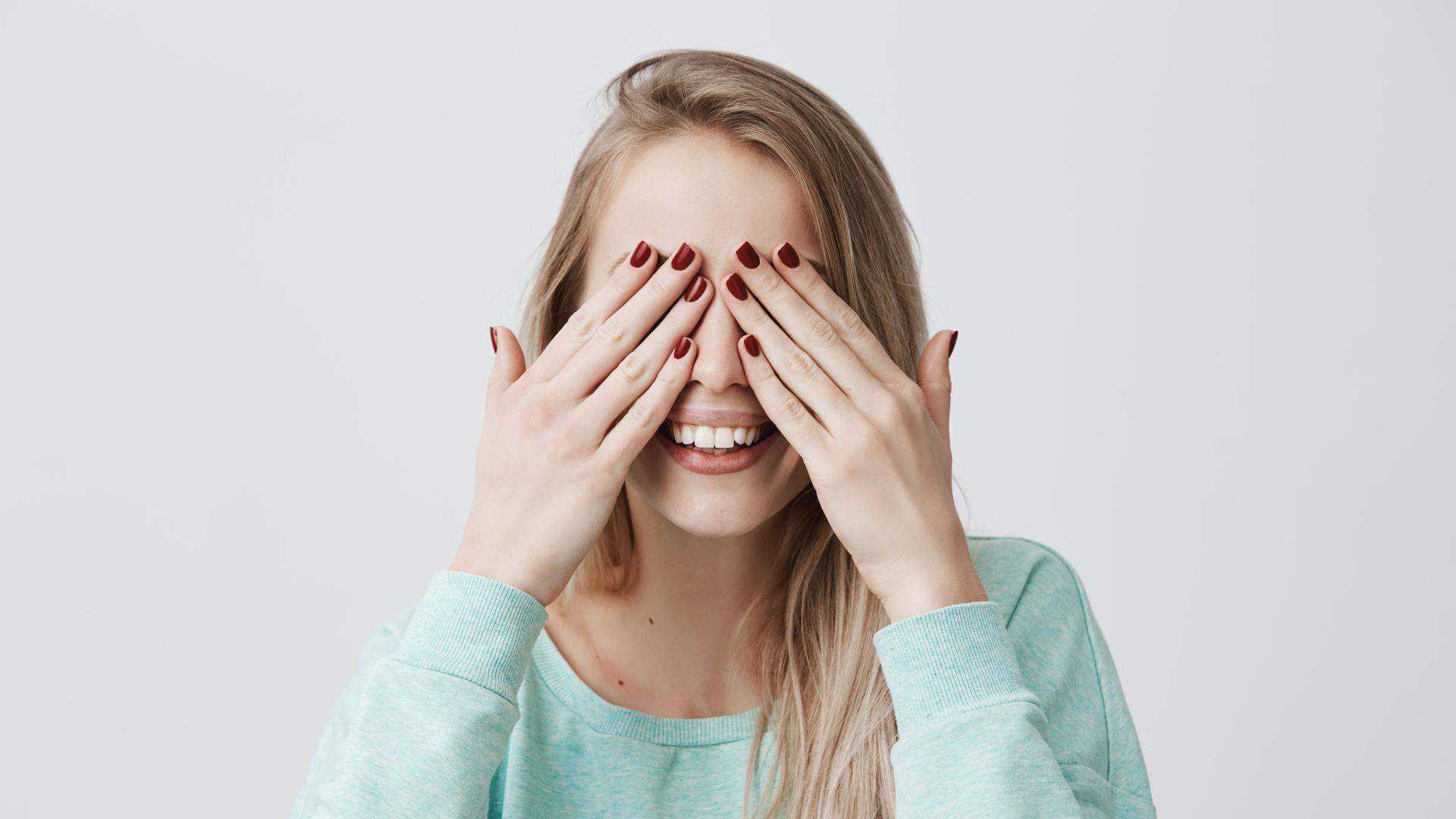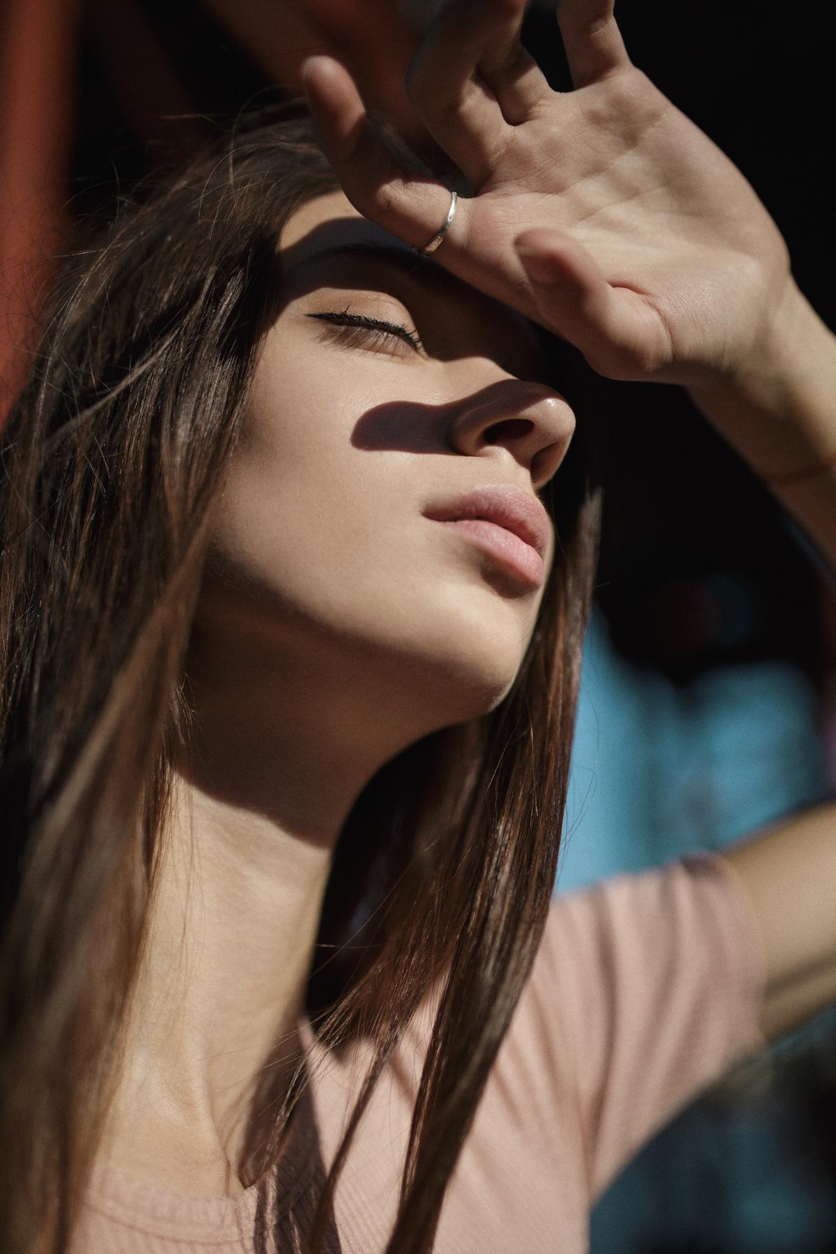 Девушка закрыла глаза Девушка прикрывает лицо Девушка закрыла глаза Закрыть глаза руками Портретная фотография Девушки