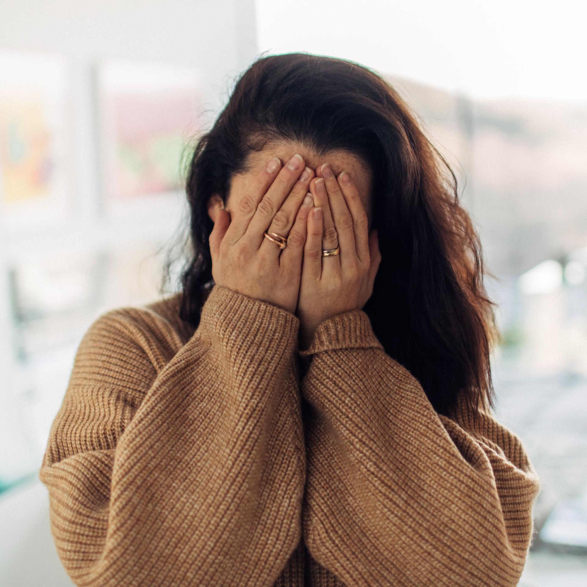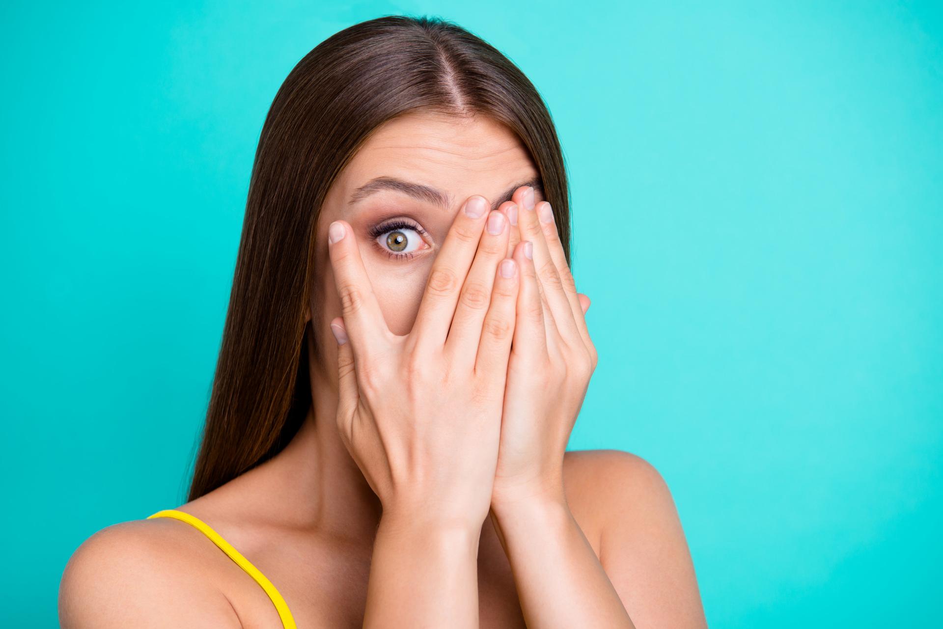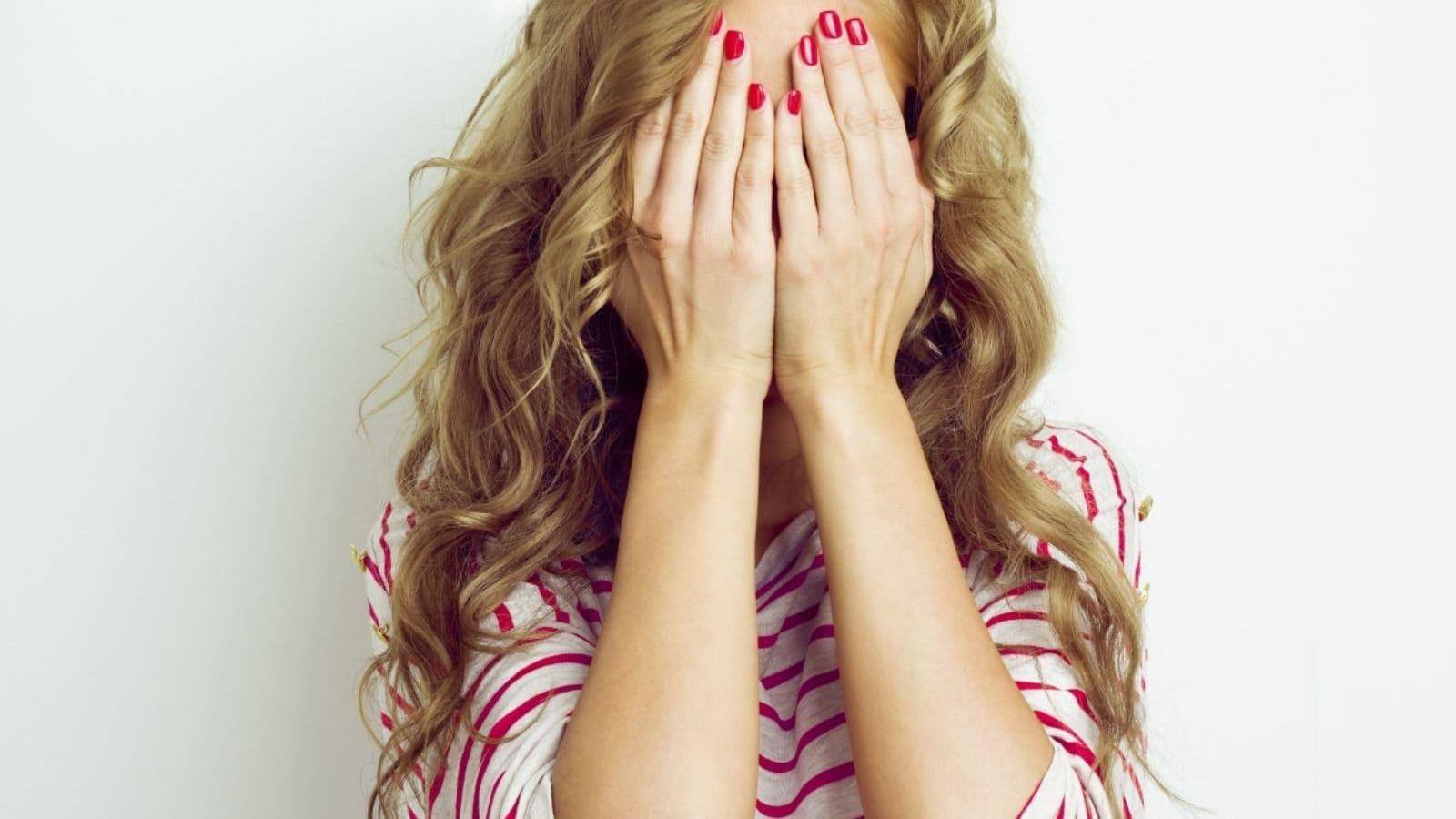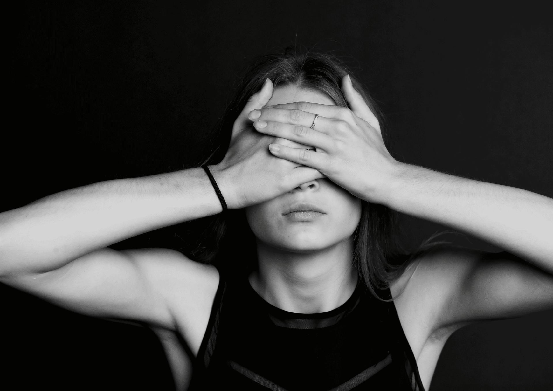 Девушка закрыла глаза Девушка прикрывает лицо Девушка закрыла глаза Закрыть глаза руками Портретная фотография Девушки