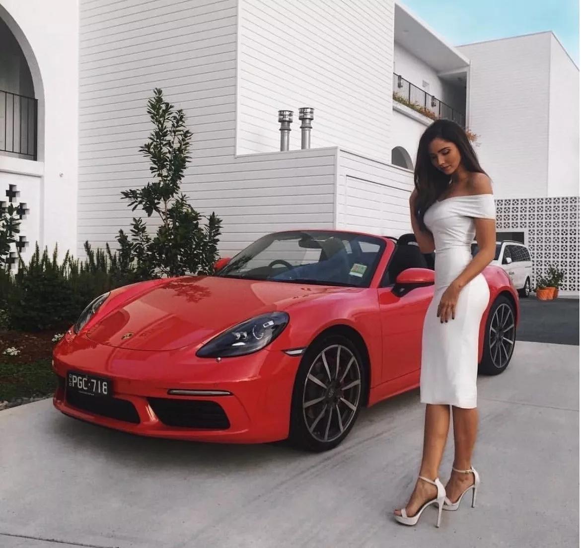 Девушка выходит из машины Джиджи хадид машина Ferrari laferrari Девушка на порше Роскошная женщина в автомобиле Девушки