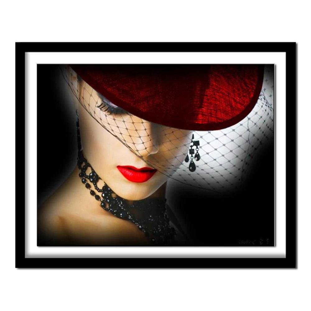 Девушка в шляпе с красными губами