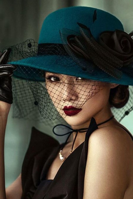 Девушки в шляпках с вуалью