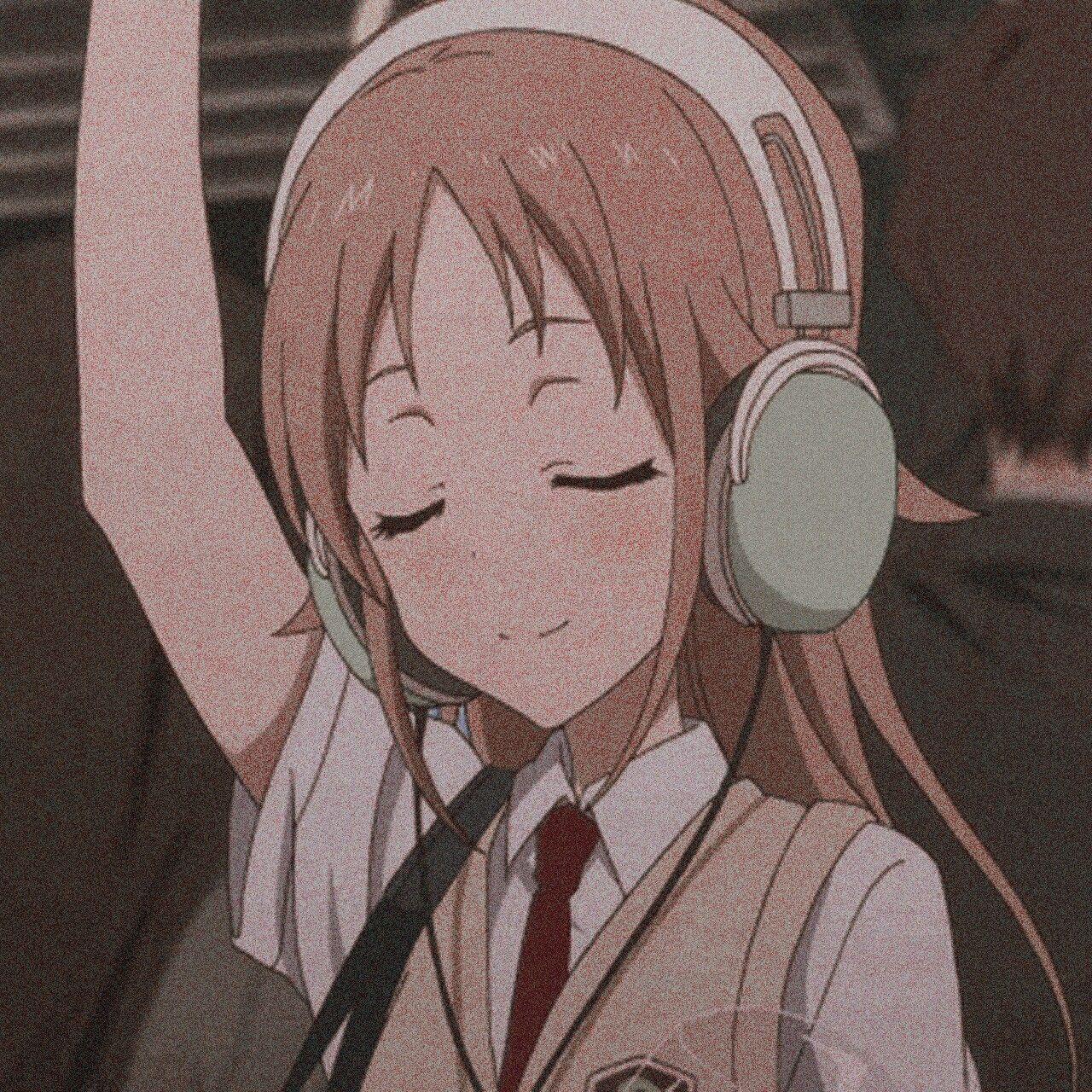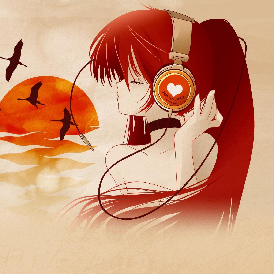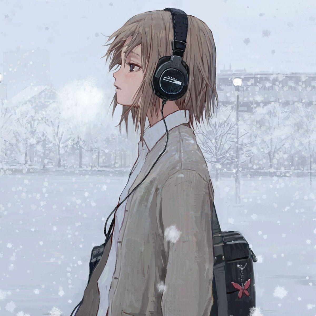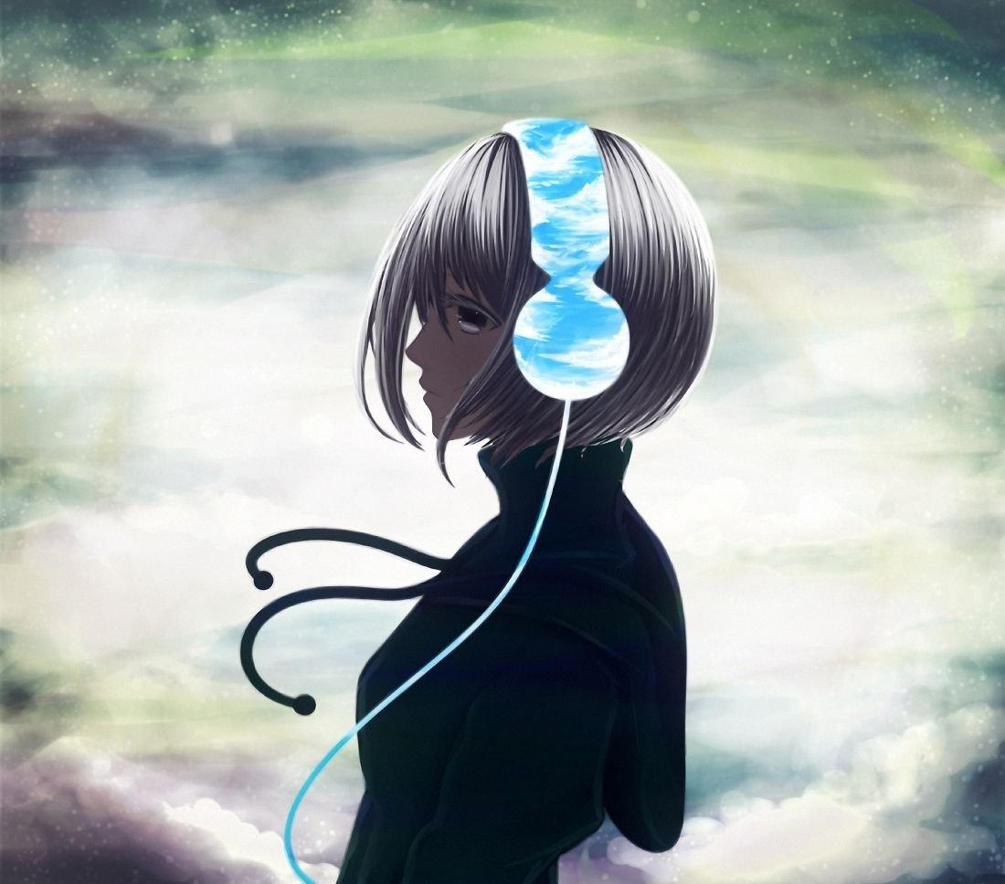 Аниме девушка в наушниках