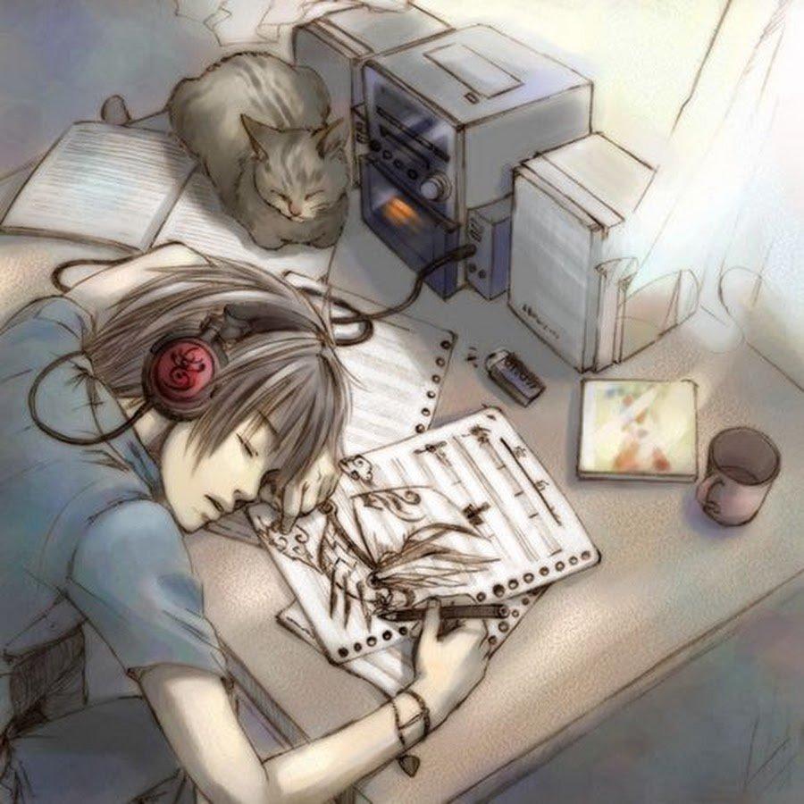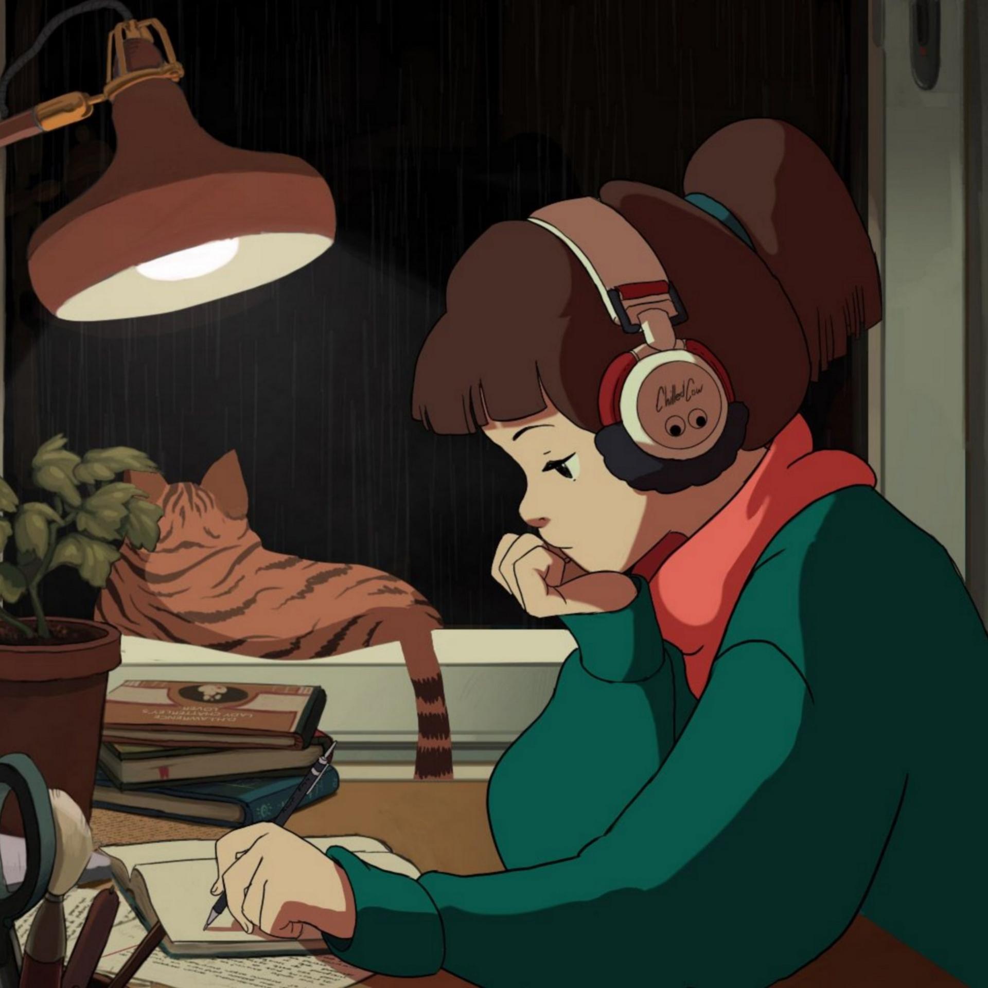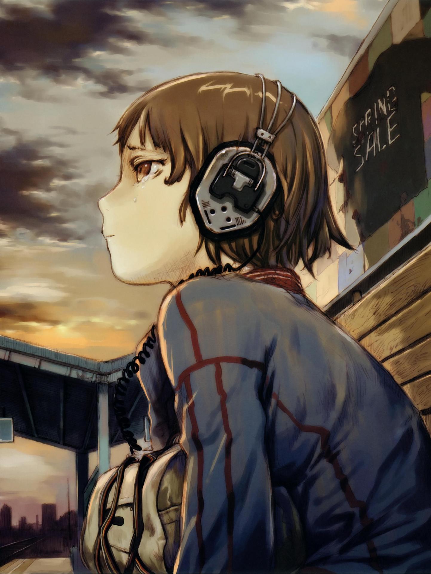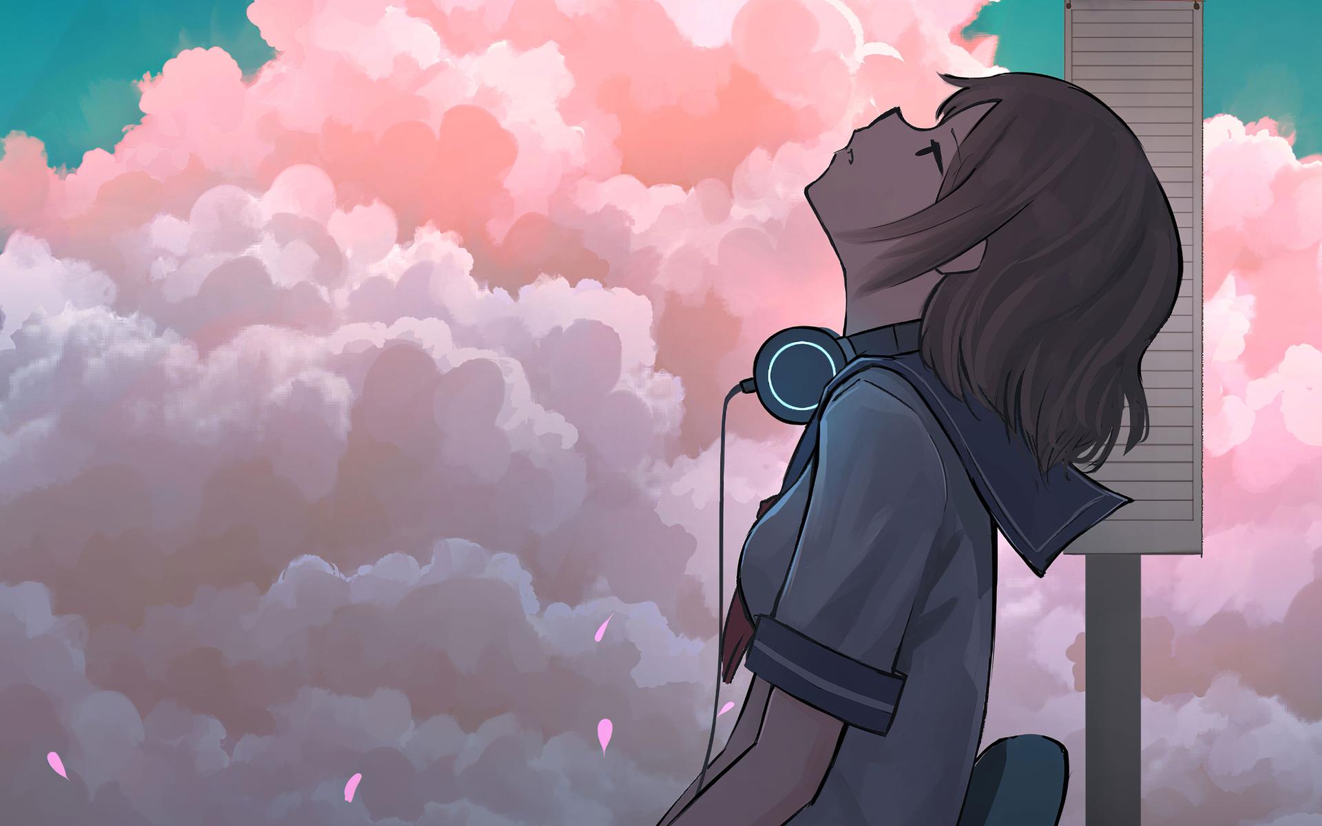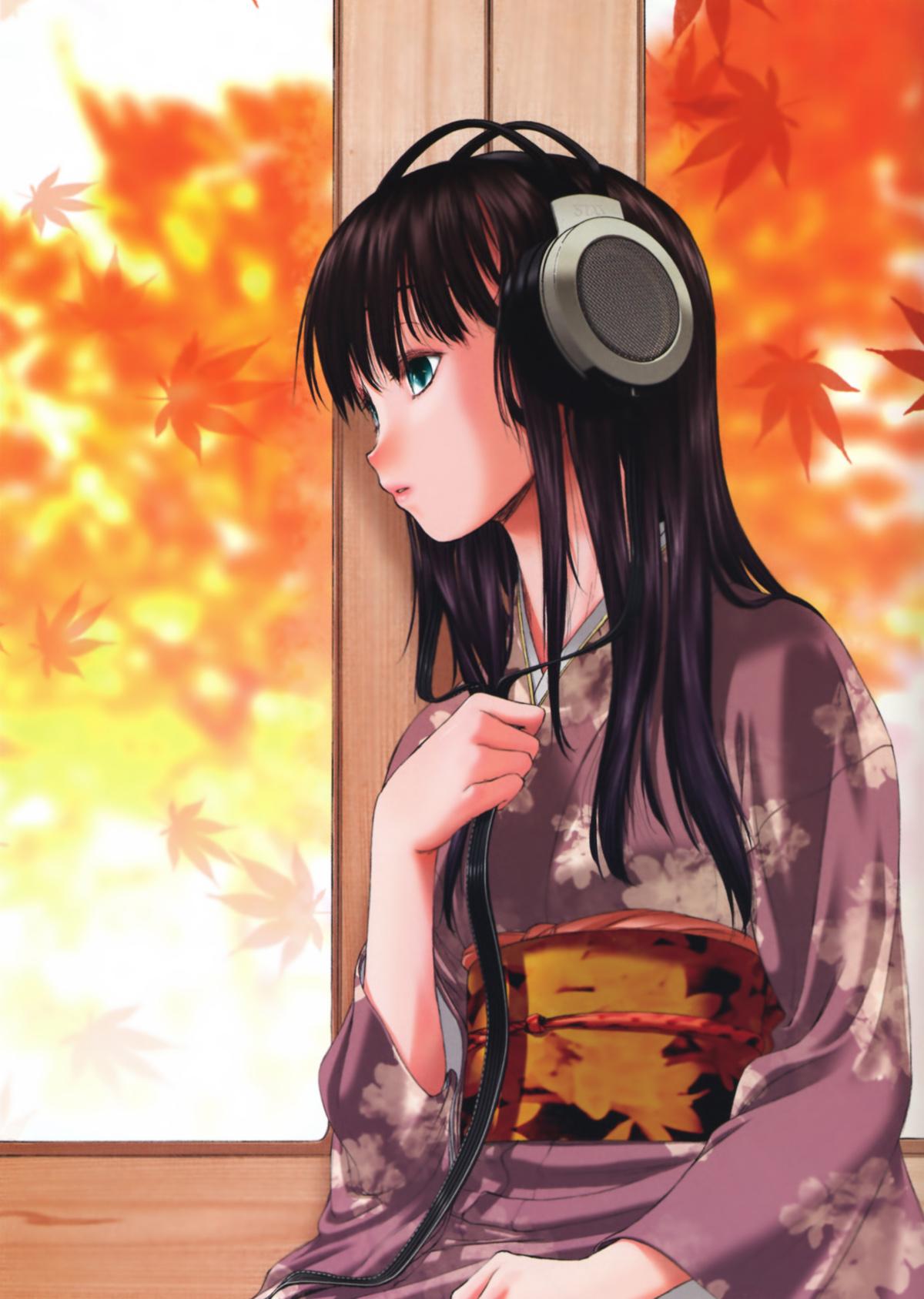 Аниме девушка в наушниках