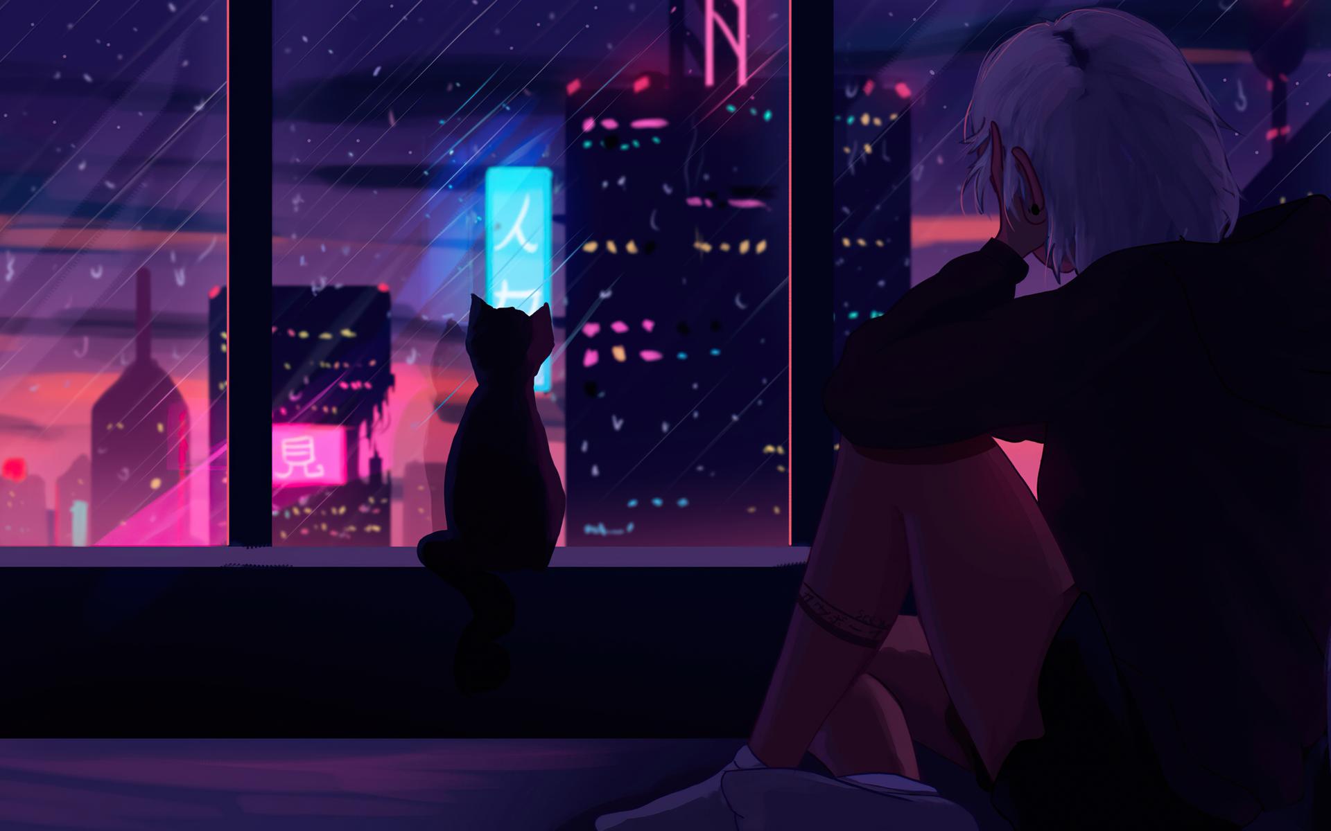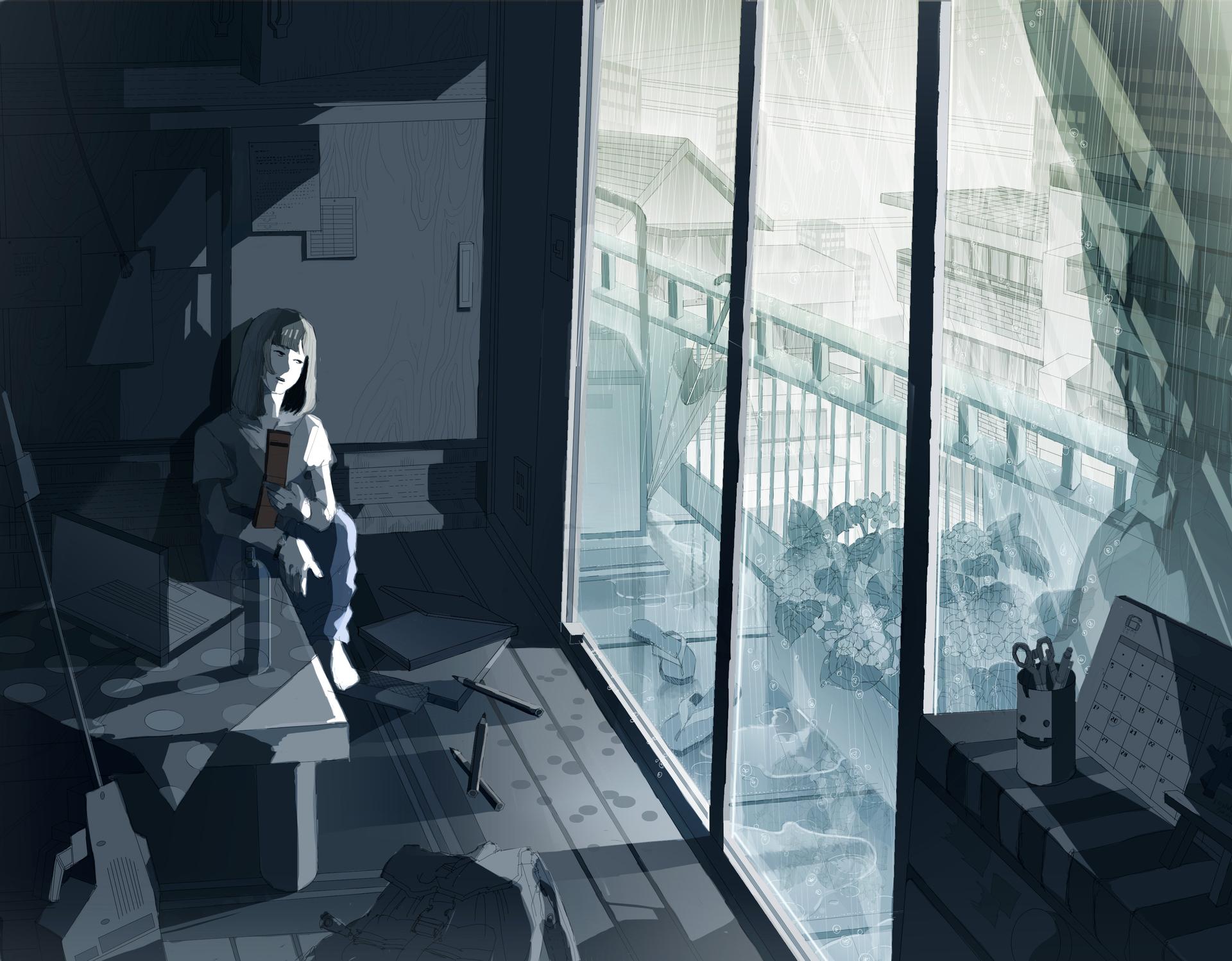 Девушка у окна дождь