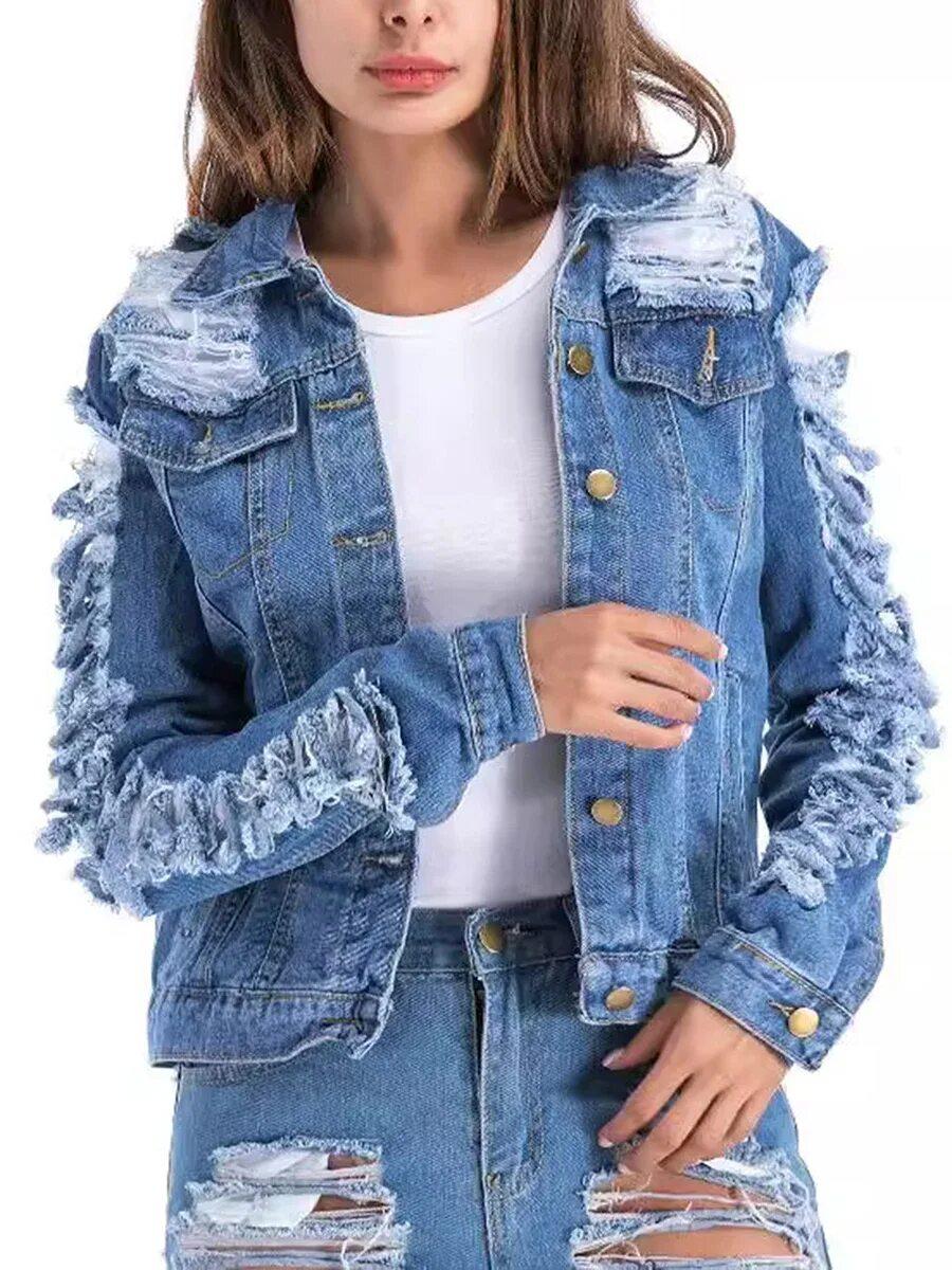 Девушки в джинсовках со спины
