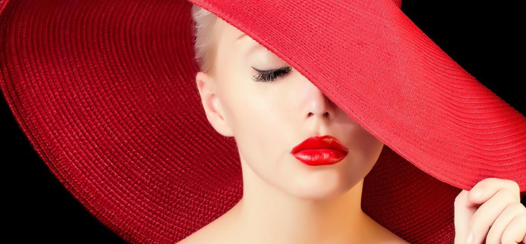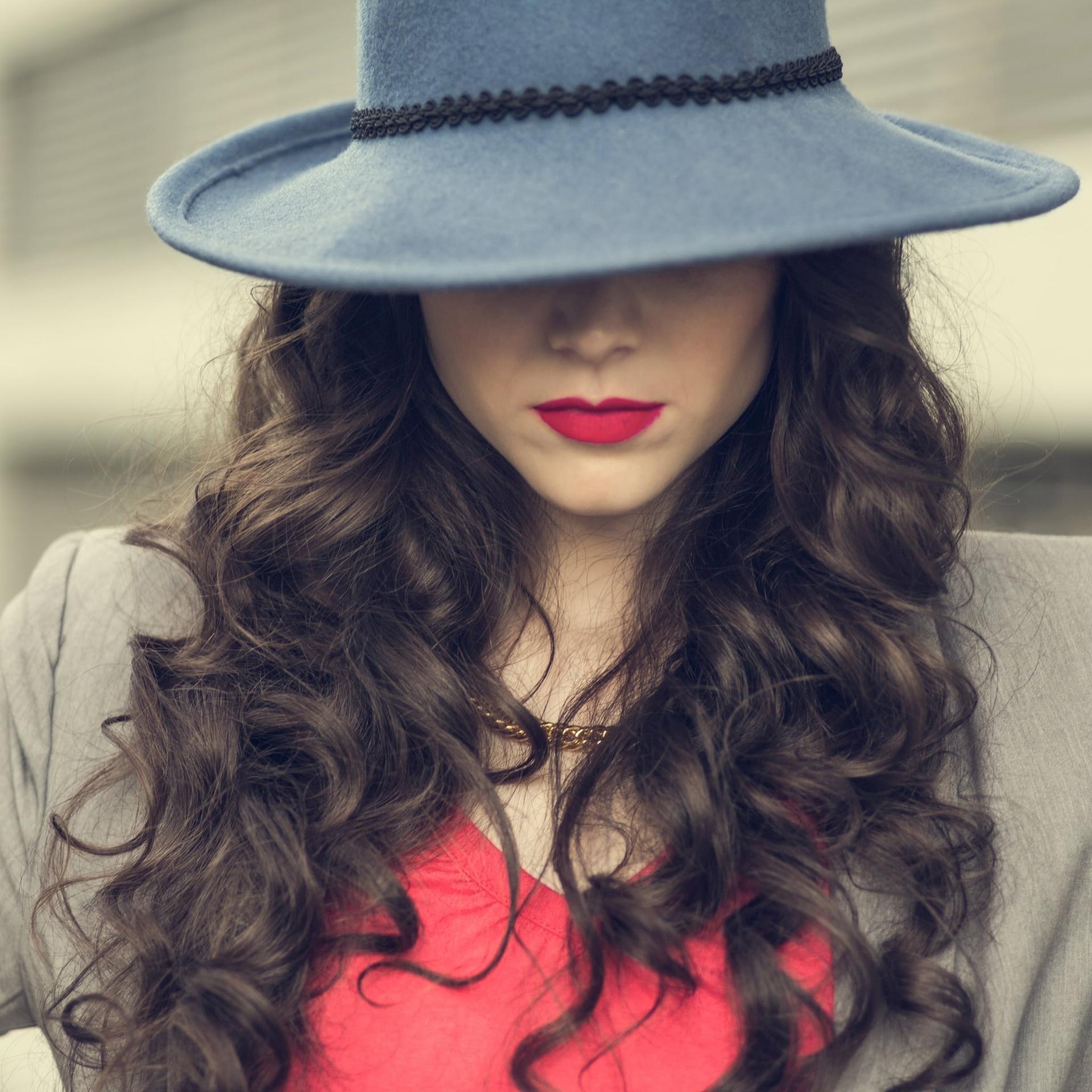 Девушка в шляпе с красными губами