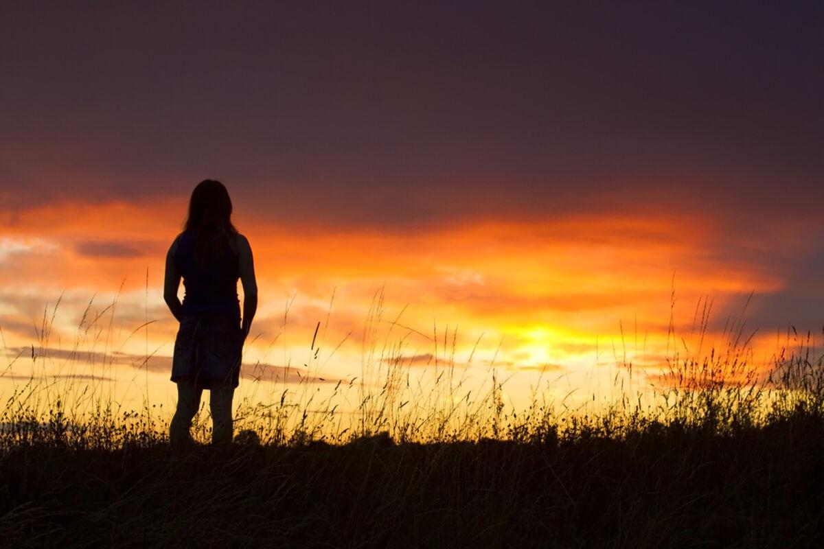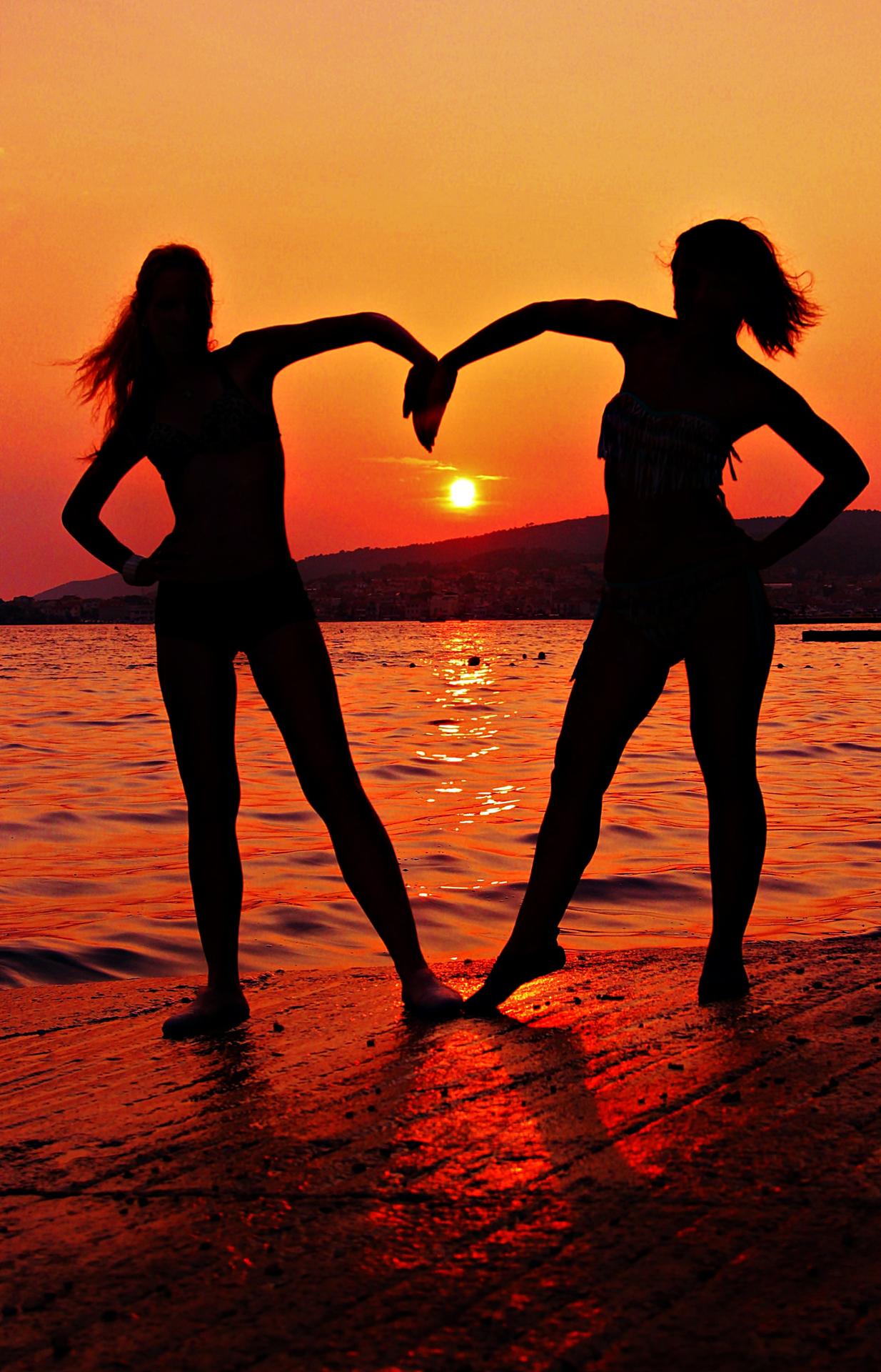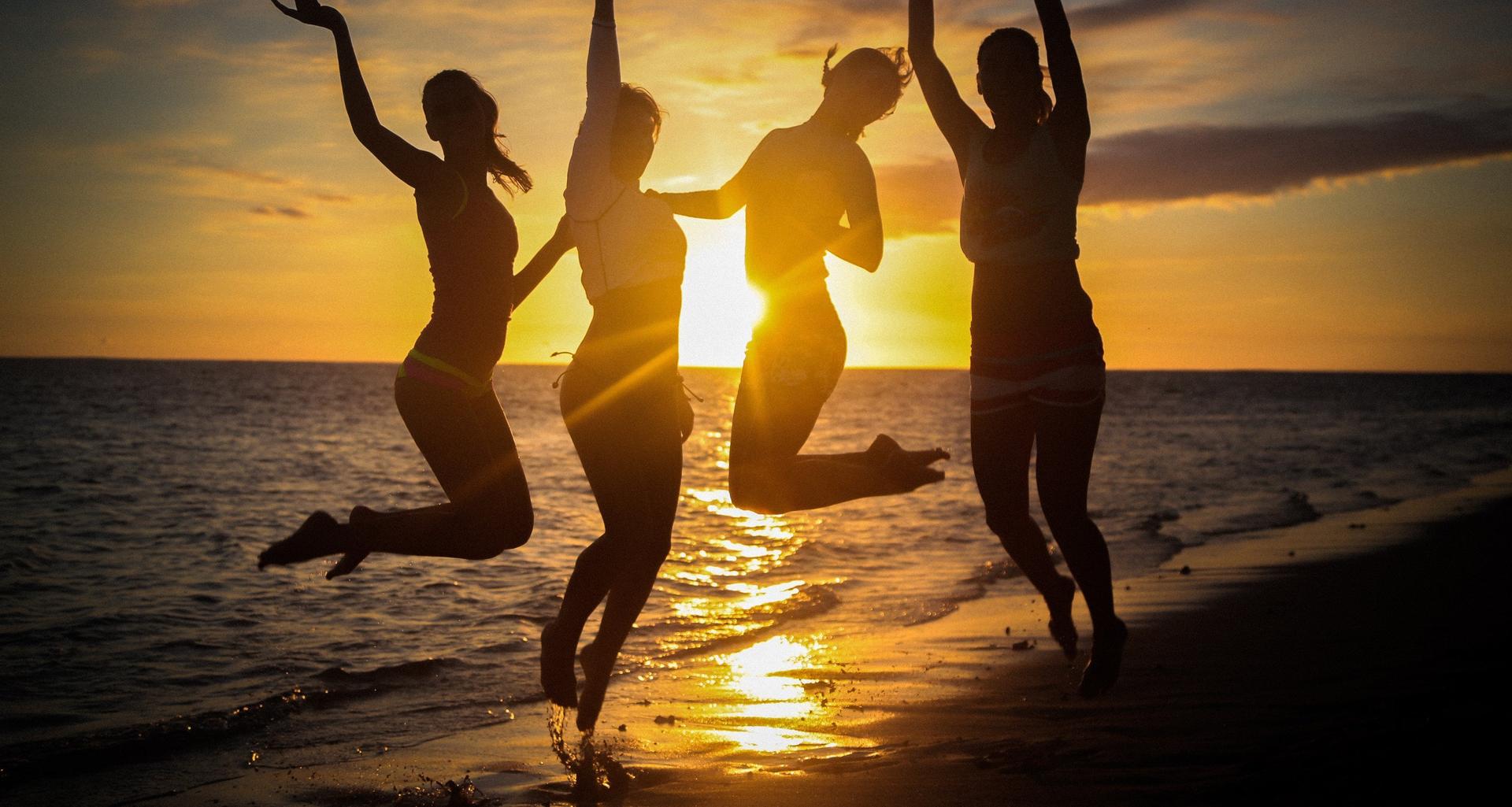Счастливые девушки на закате