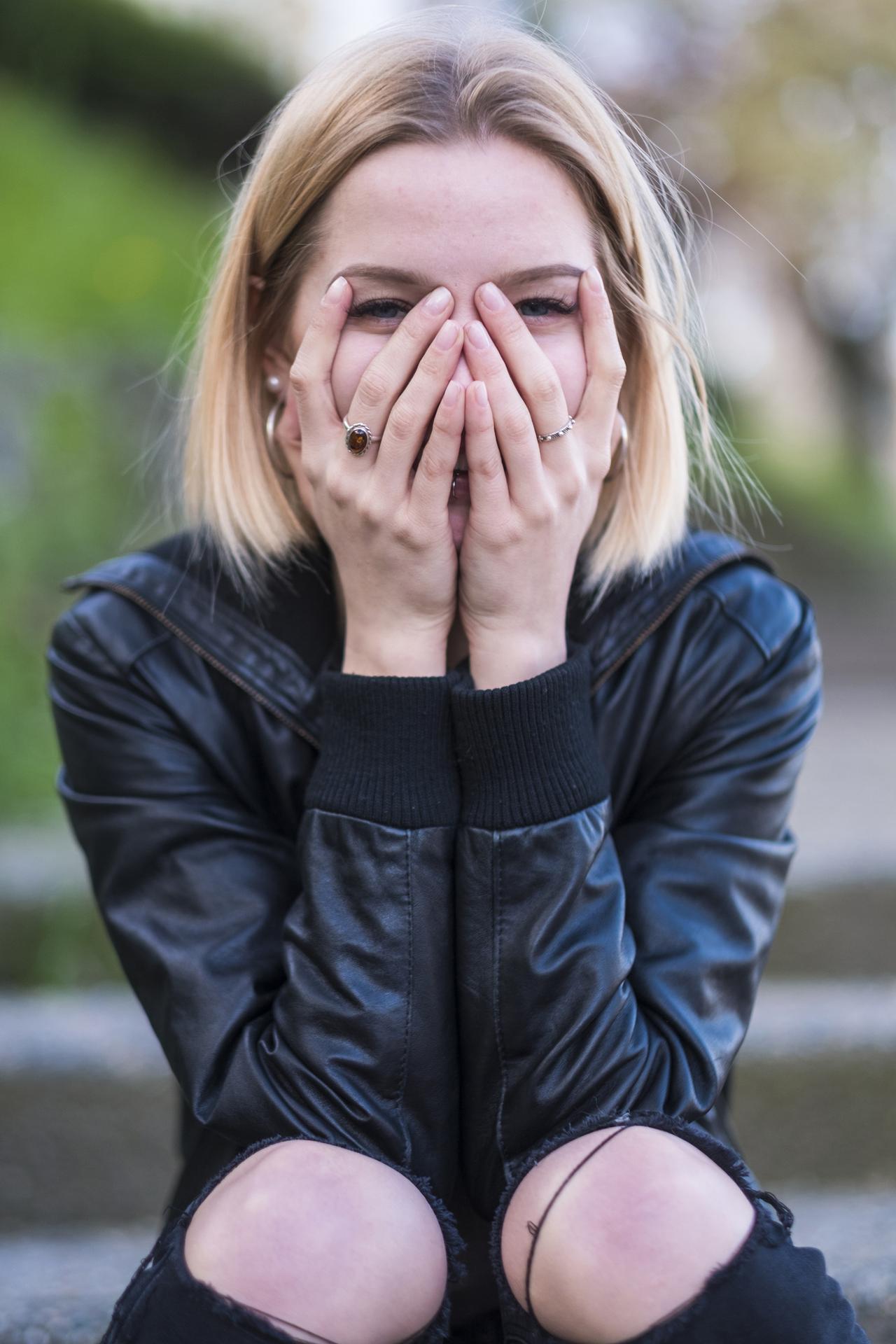 Девушки, прикрывающие лица руками
