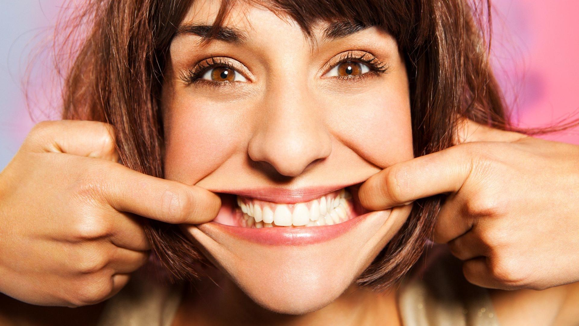 Девушки, показывающие зубы
