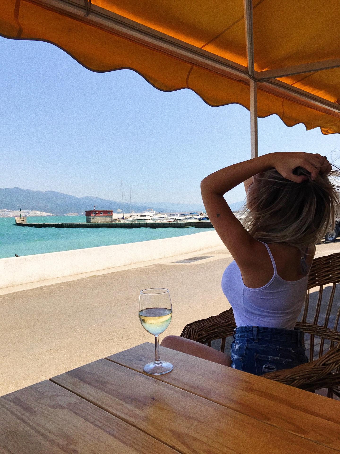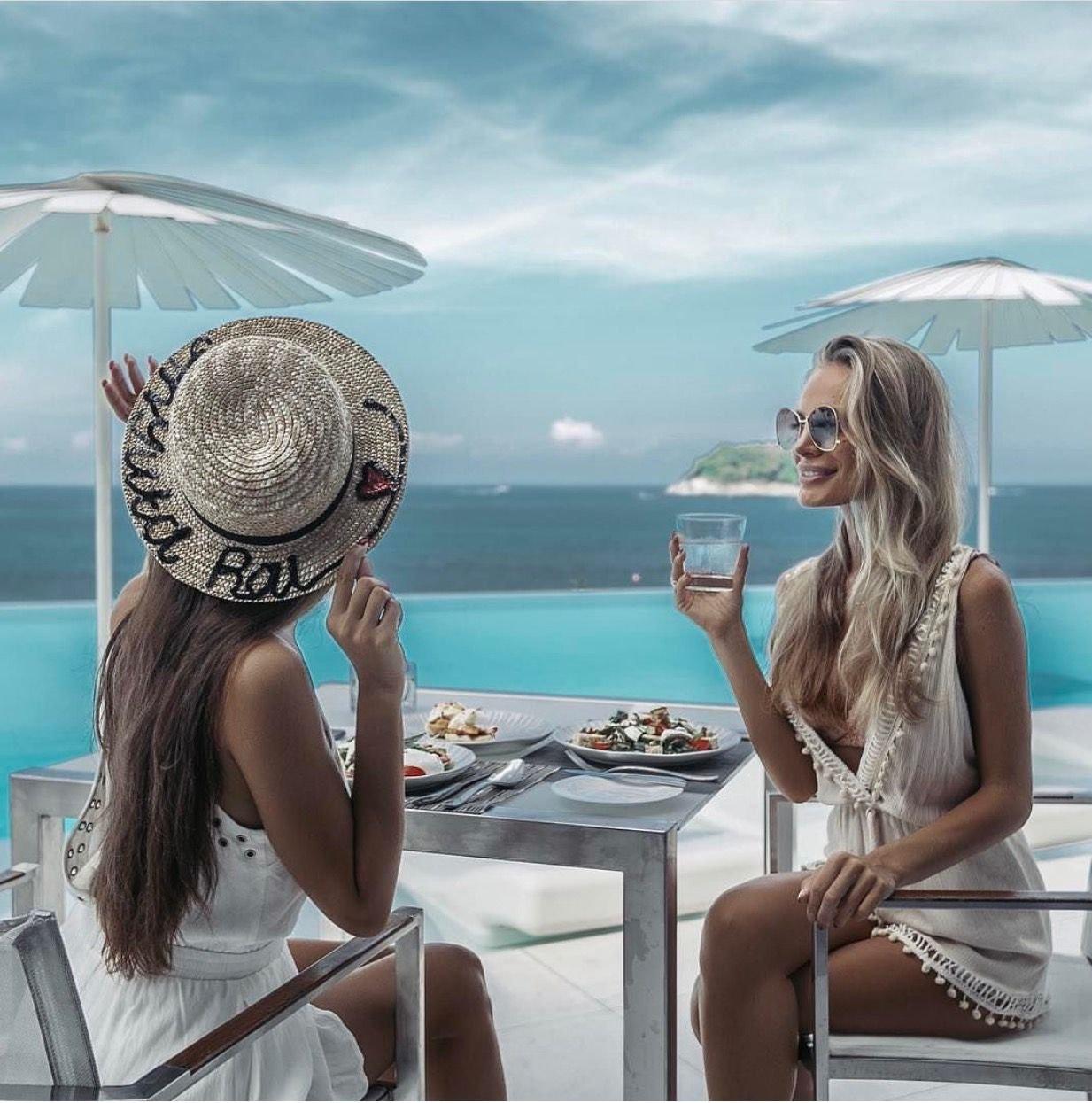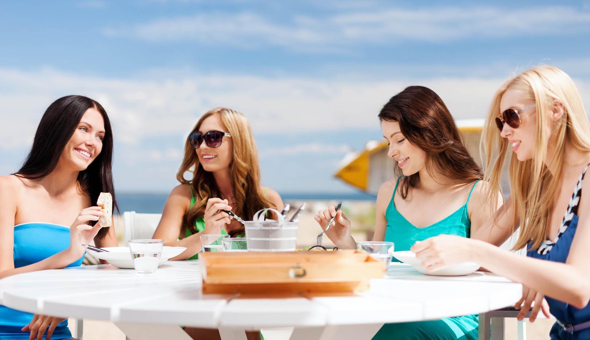 Девушки в кафе у моря