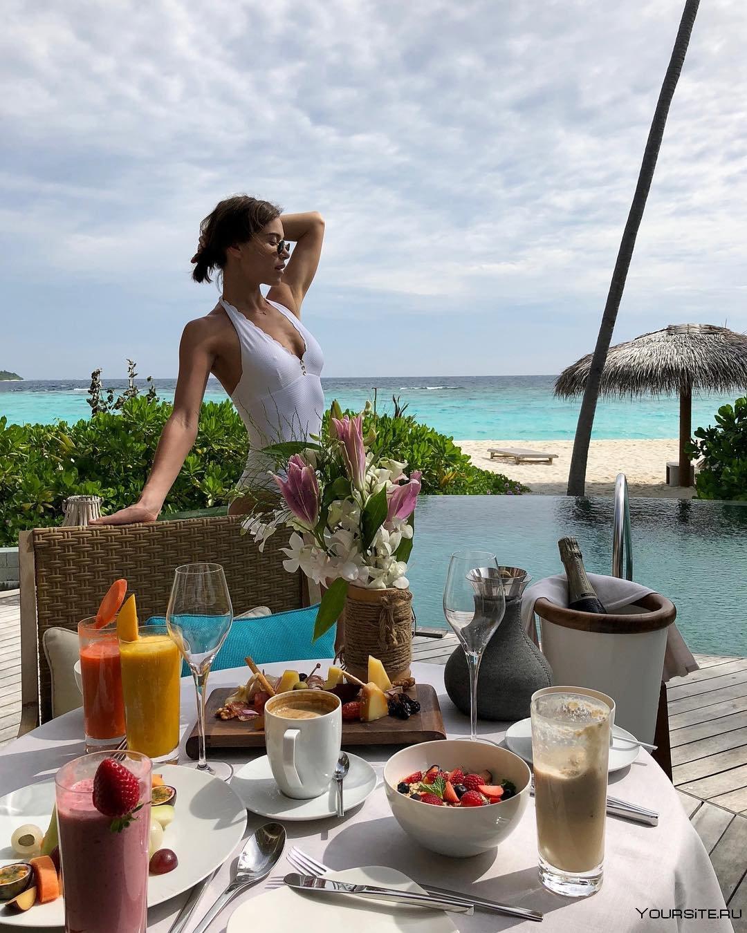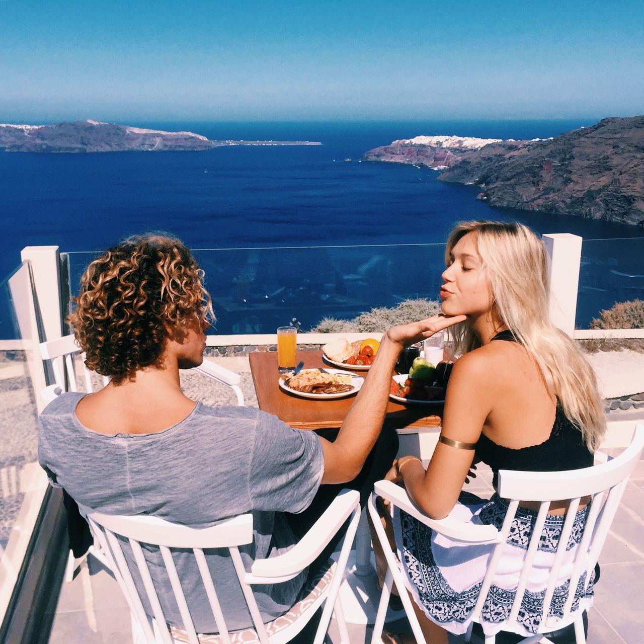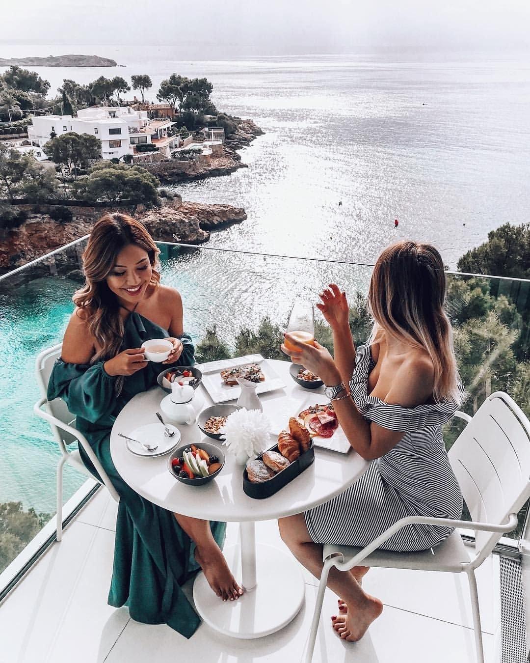 Девушки в кафе у моря