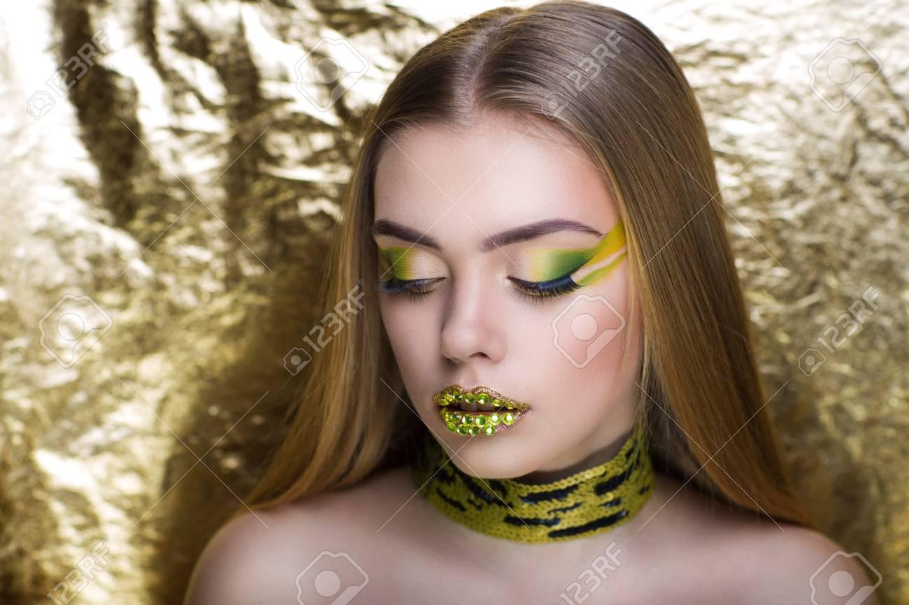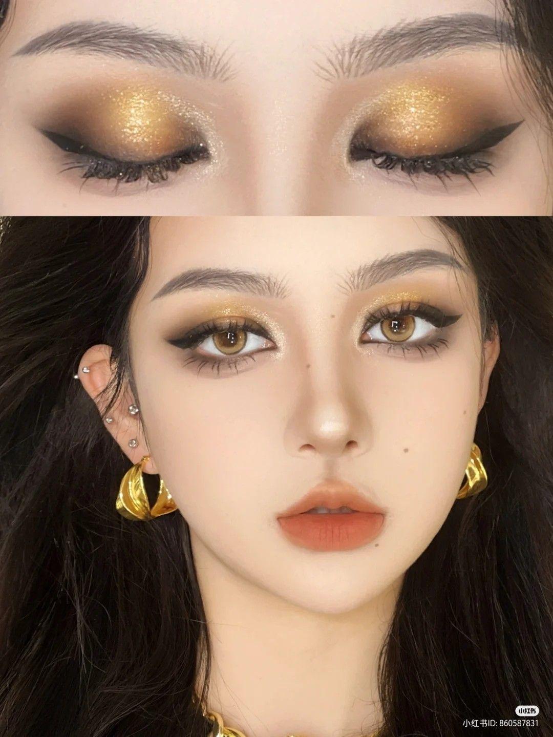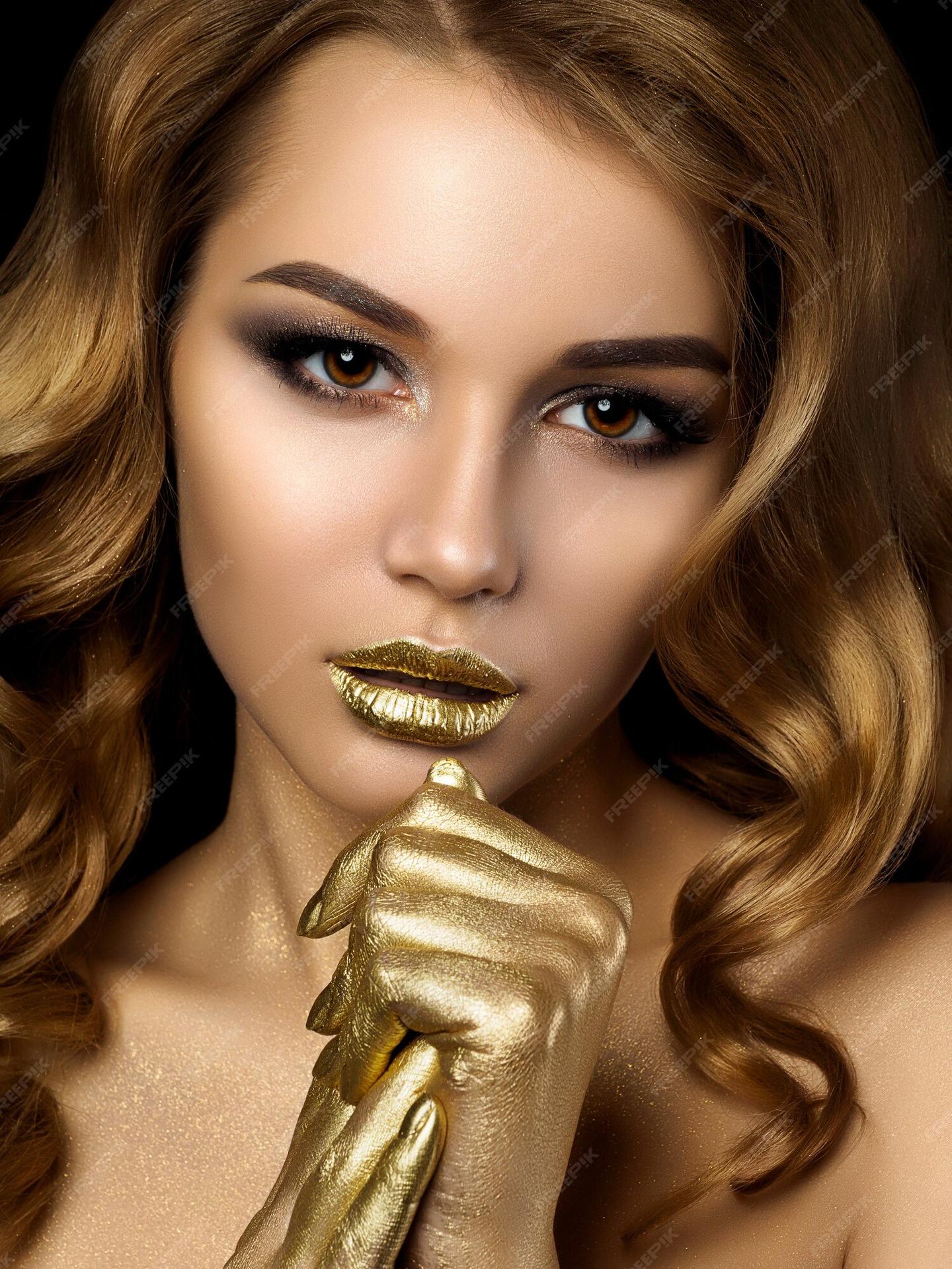 Девушки с золотым макияжем