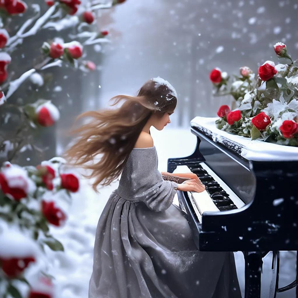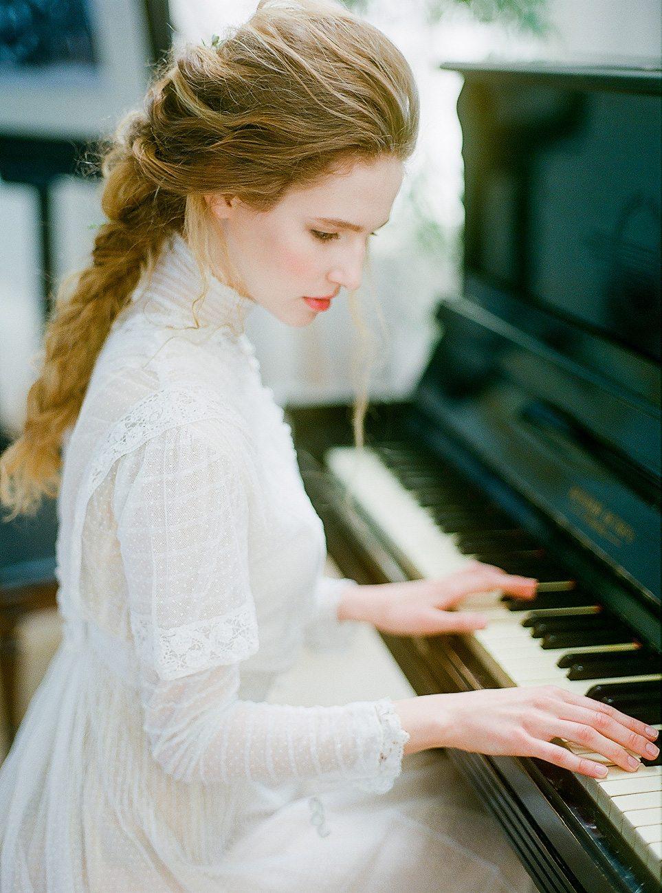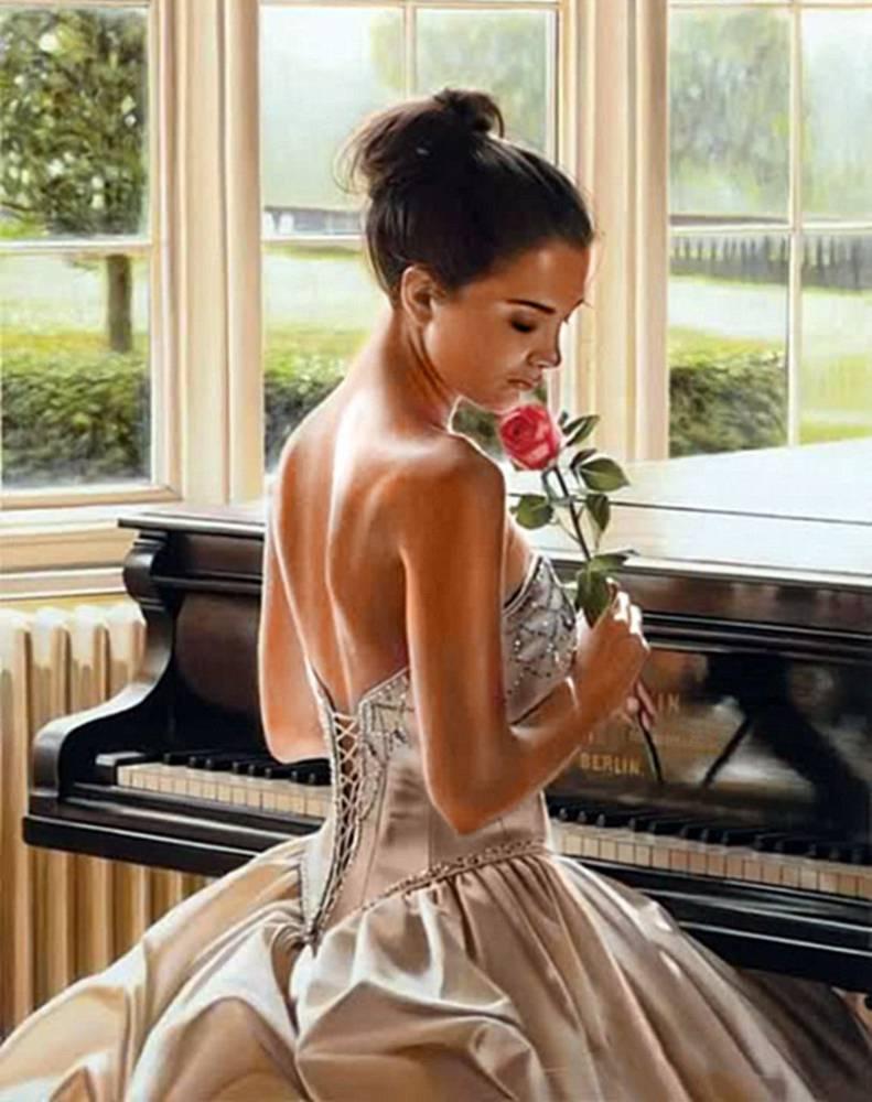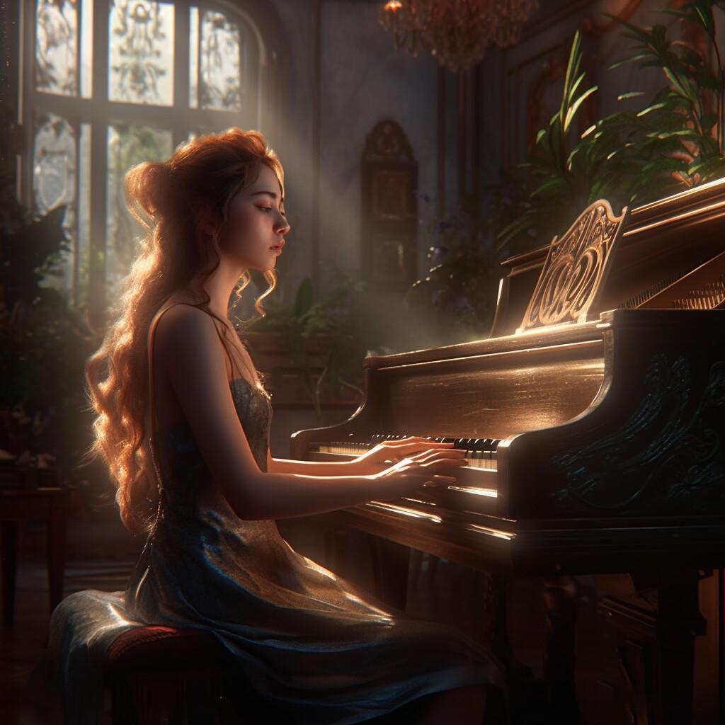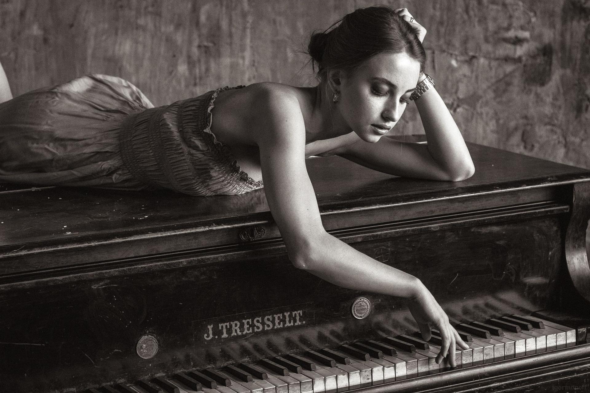 Музыкальная серия фотографий представляет девушек за роялями в различных эмоциональных состояниях. Модели в элегантных нарядах демонстрируют связь между музыкой и женственностью. Фотографии запечатлевают моменты игры, задумчивости и вдохновения. Черно-белые и цветные композиции передают атмосферу концертных залов и домашних музыкальных комнат. Акцент на руках, позах и выражении лиц. Освещение создает драматические тени и блики на поверхности инструментов. Некоторые работы включают ноты и музыкальные аксессуары. Коллекция показывает, как музыка может стать источником вдохновения для создания поэтичных образов.