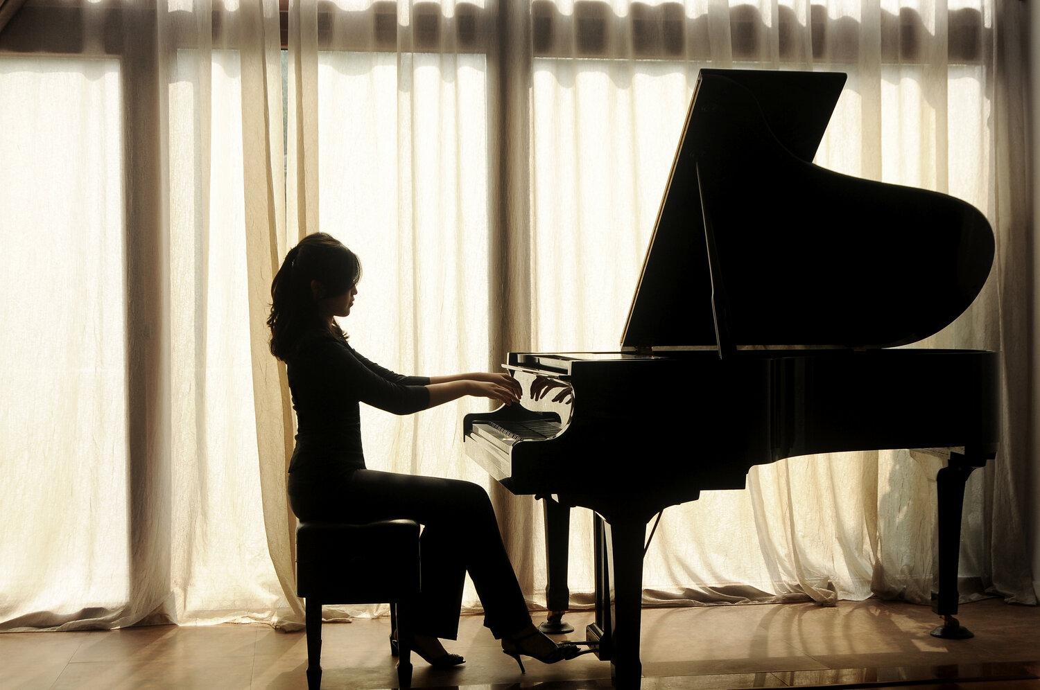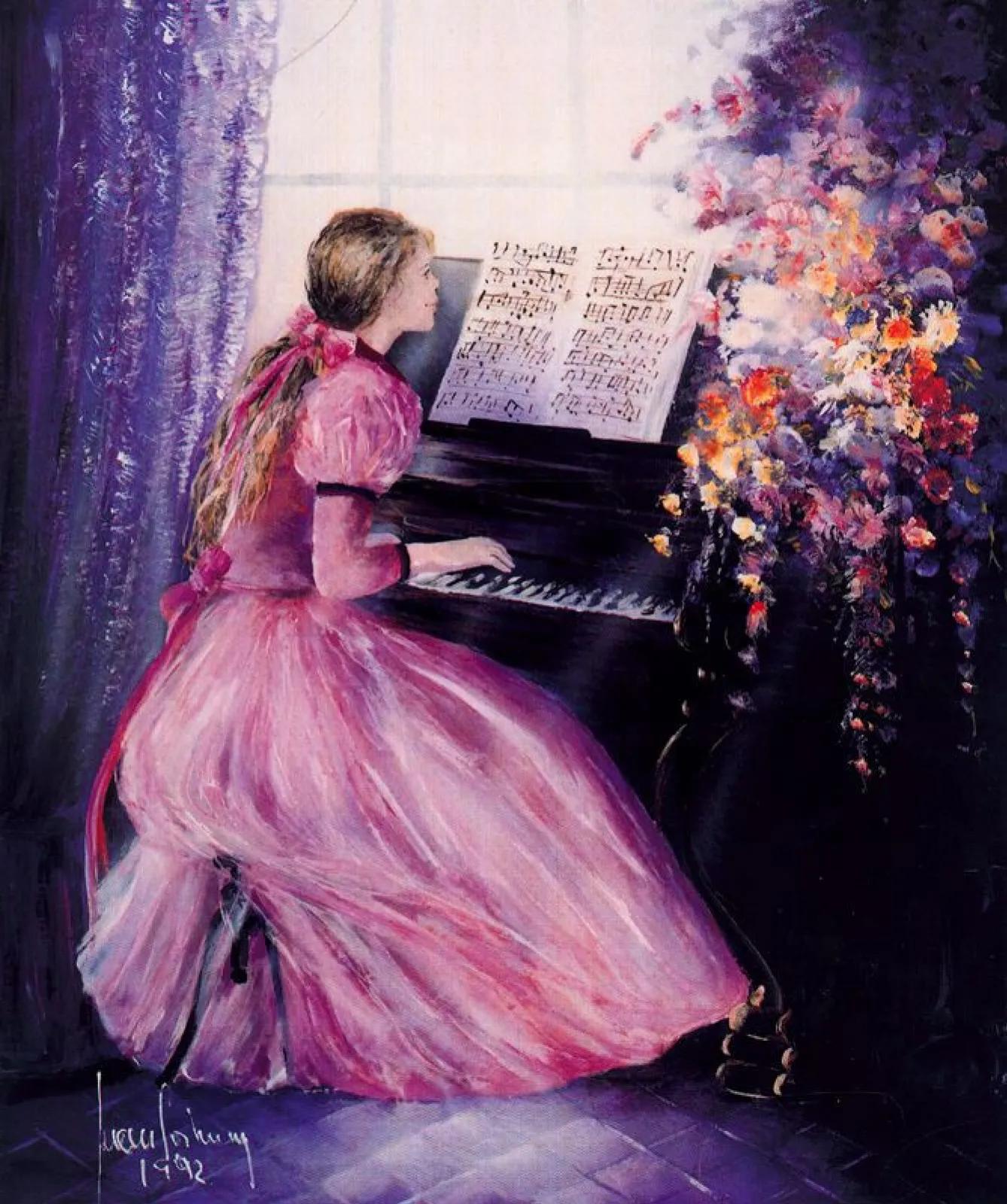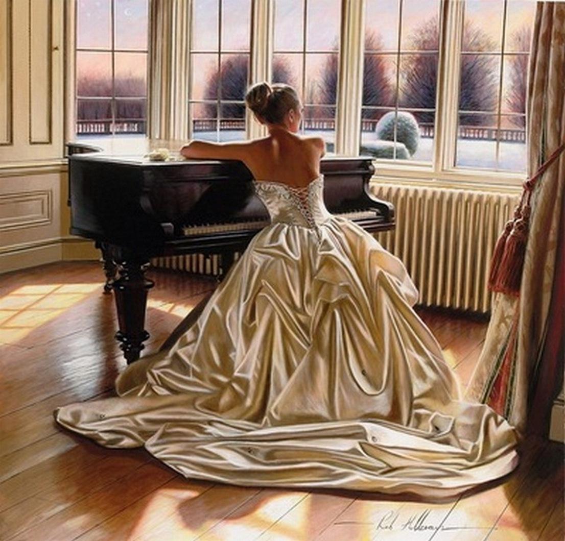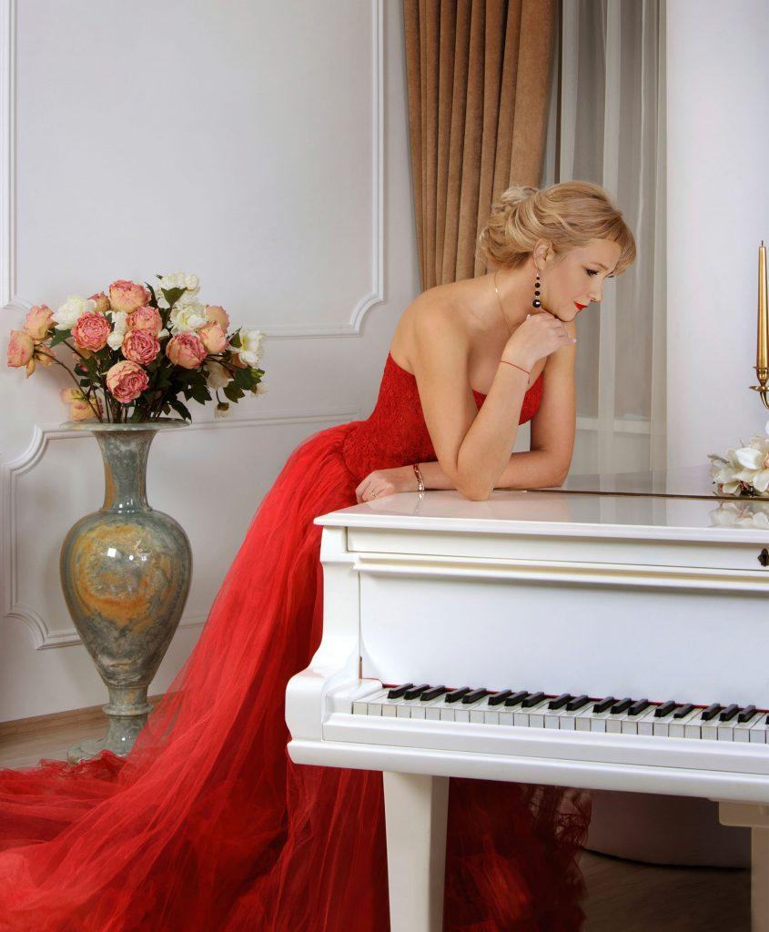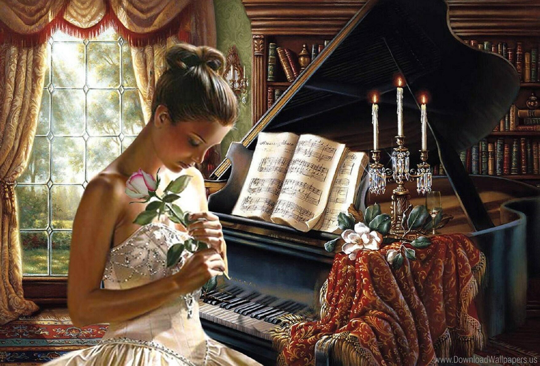 Музыкальная серия фотографий представляет девушек за роялями в различных эмоциональных состояниях. Модели в элегантных нарядах демонстрируют связь между музыкой и женственностью. Фотографии запечатлевают моменты игры, задумчивости и вдохновения. Черно-белые и цветные композиции передают атмосферу концертных залов и домашних музыкальных комнат. Акцент на руках, позах и выражении лиц. Освещение создает драматические тени и блики на поверхности инструментов. Некоторые работы включают ноты и музыкальные аксессуары. Коллекция показывает, как музыка может стать источником вдохновения для создания поэтичных образов.
