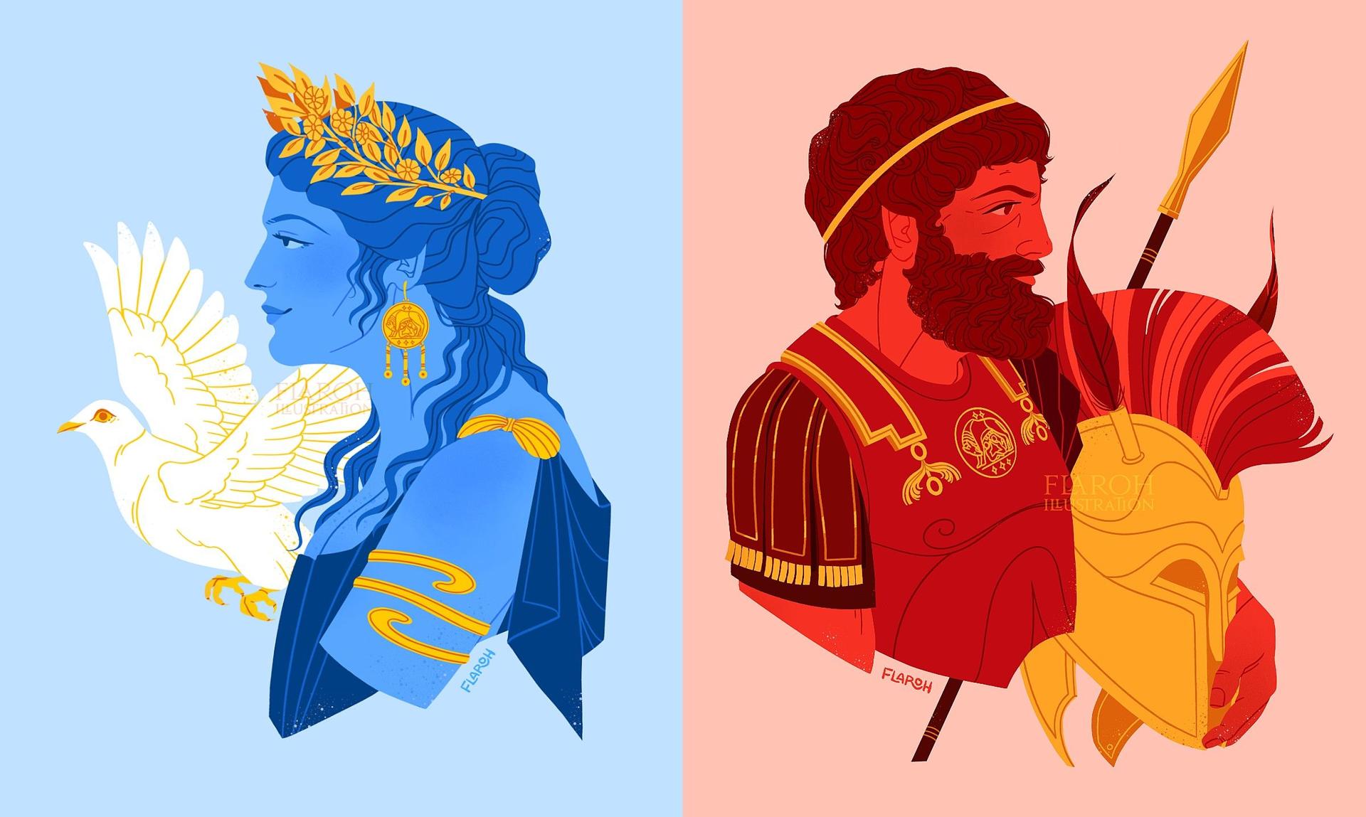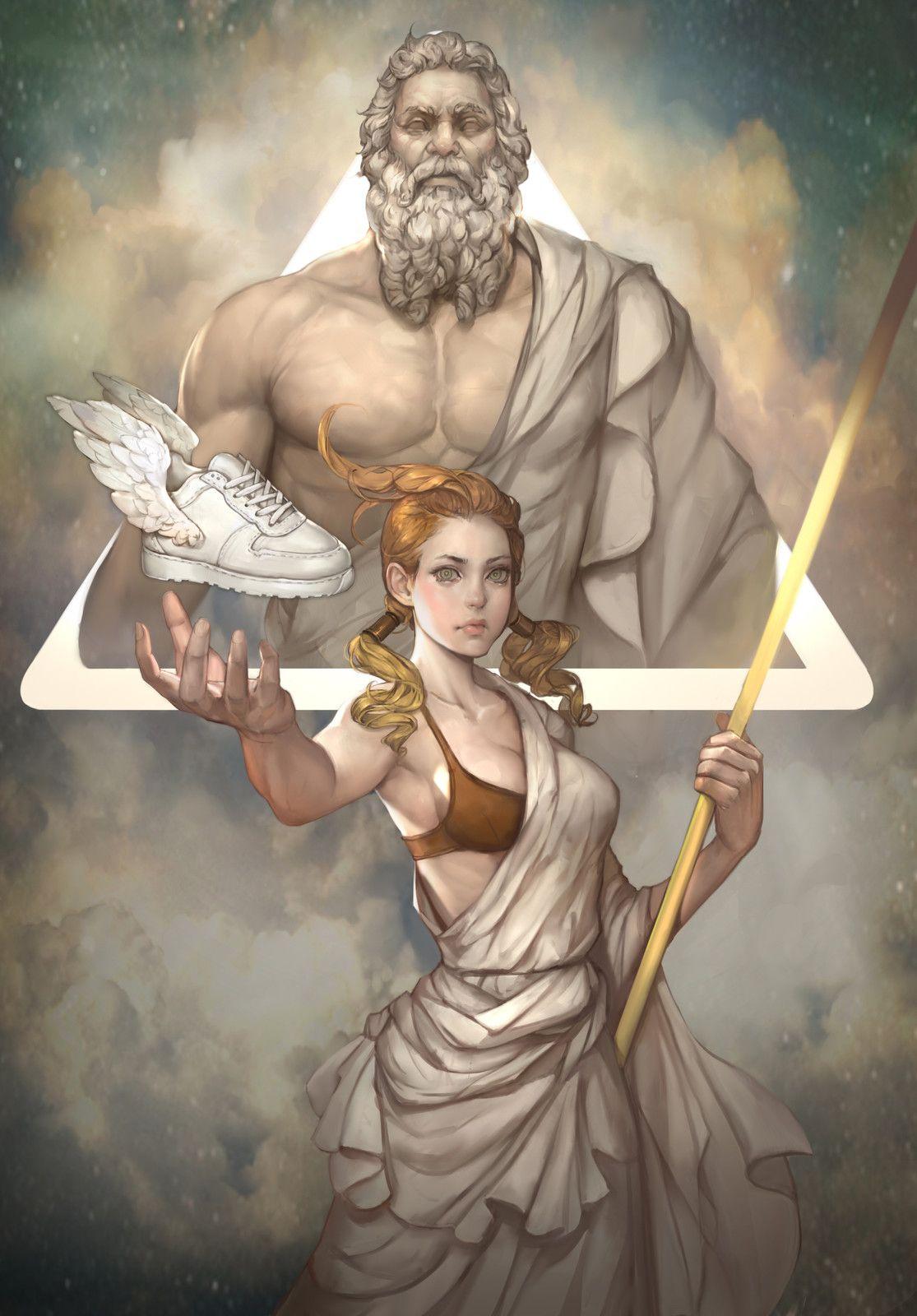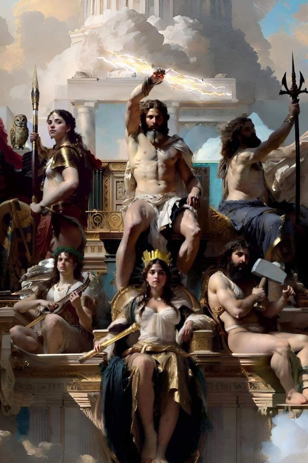 Величественная коллекция иллюстраций представляет греческих богов и героев в различных художественных интерпретациях. Художники воплощают классические образы Зевса, Афродиты, Ареса и других олимпийцев в современных стилях - от академической живописи до цифрового искусства. Каждая работа тщательно прорабатывает детали: одеяния из тонких тканей, атрибуты богов (молнии, трезубцы, лиры) и выразительные позы. Композиции варьируются от одиночных портретов до сложных сцен с множеством персонажей. Цветовая палитра вдохновлена античными фресками с преобладанием золотых, синих и белых тонов. Работы показывают богов в различных настроениях - от гневных до благосклонных. Коллекция демонстрирует актуальность древней мифологии в современном искусстве.