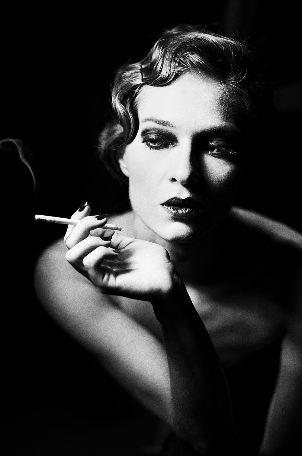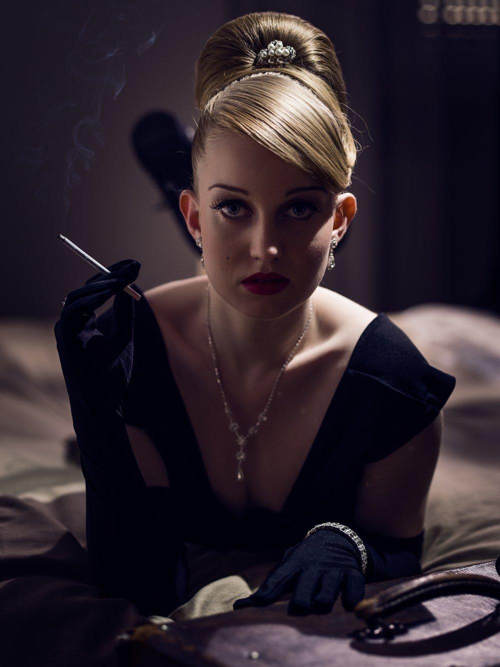 Ретро-серия фотографий воплощает эстетику нуар-фильмов с женщинами в главных ролях. Черно-белая палитра и драматическое освещение создают атмосферу таинственности и интриги. Модели в винтажных платьях, с сигаретами и характерными прическами предстают в образах femme fatale или невинных героинь. Фотографии сделаны в соответствующих локациях - от затемненных баров до пустынных улиц под дождем. Акцент на эмоциях, выраженных через мимику и позы. Некоторые композиции включают элементы сюжета, намекая на драматические истории. Коллекция сочетает уважение к классике с современными интерпретациями, показывая актуальность нуар-эстетики в сегодняшнем искусстве.
